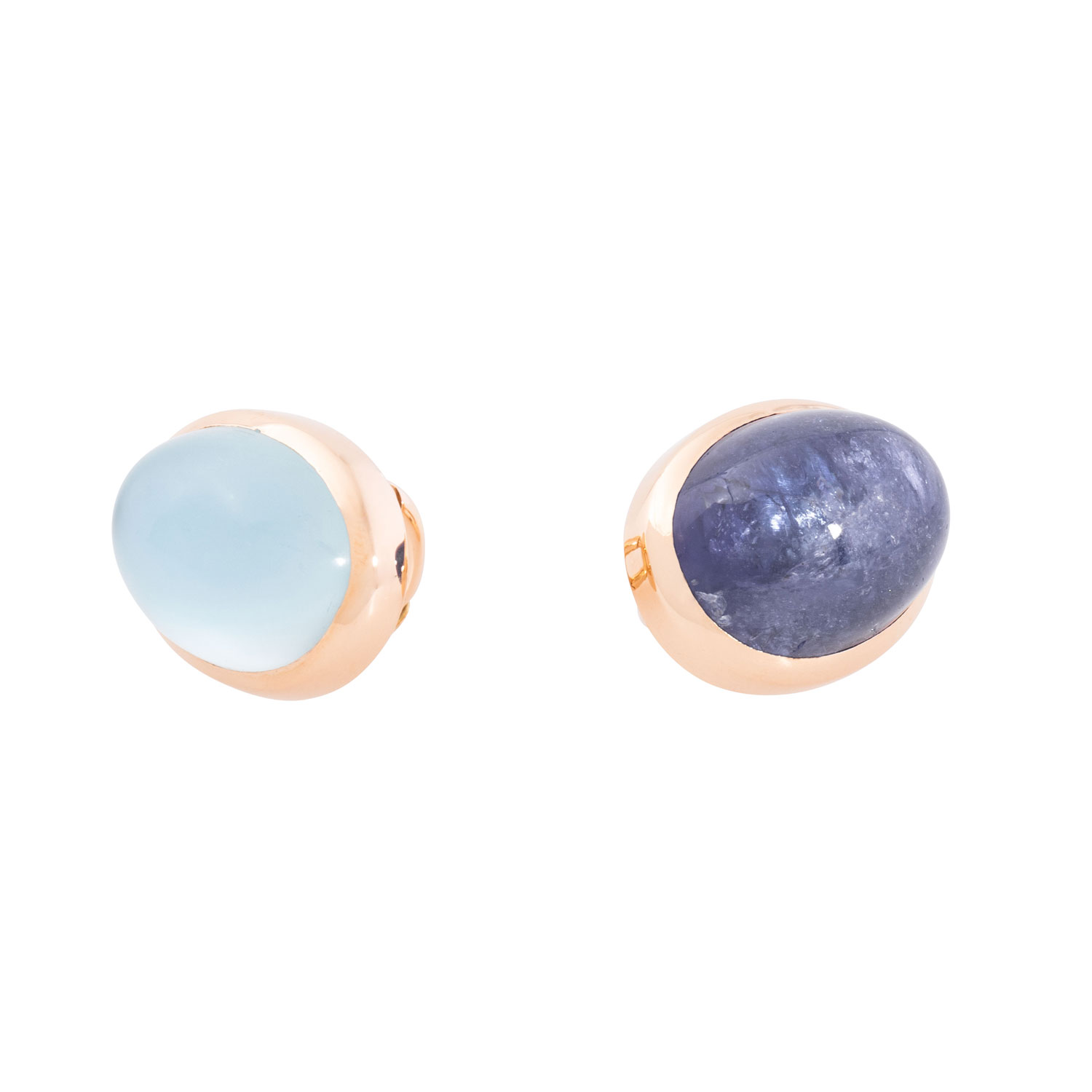 Set of 2 charms with oval blue topaz and tanzanite cabochons,