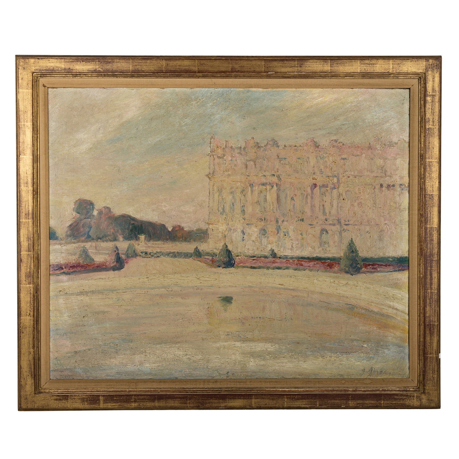 SEVEAU, GEORGES (French artist 19th/20th century), "Park von Versailles", view over the south parterre to the Corps de Logis, signed lower right, oil/canvas, hxw: approx. 73x90cm (88x104,5 cm with frame). Craquelure, paint loss and rubbing (stronger at upper margin), varnish yellowing. With frame (min. dam.).