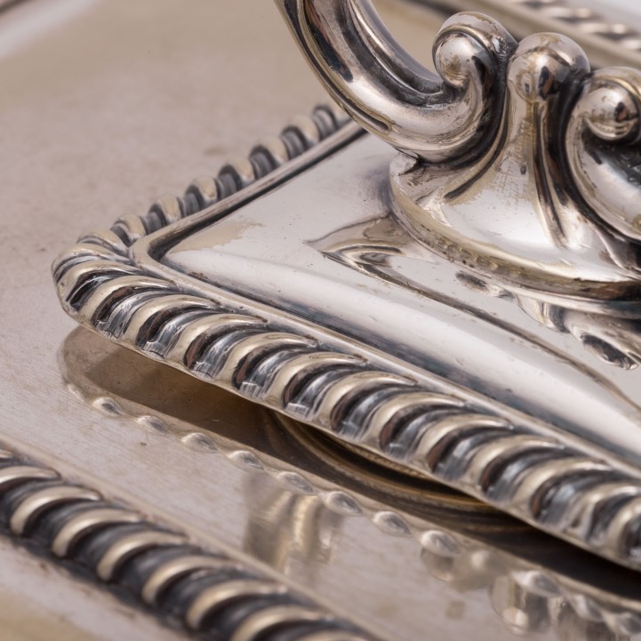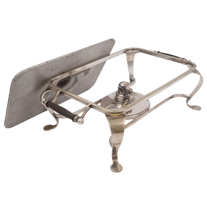 SHEFFIELD warming pot and rechaud, silver-plated, around 1900.