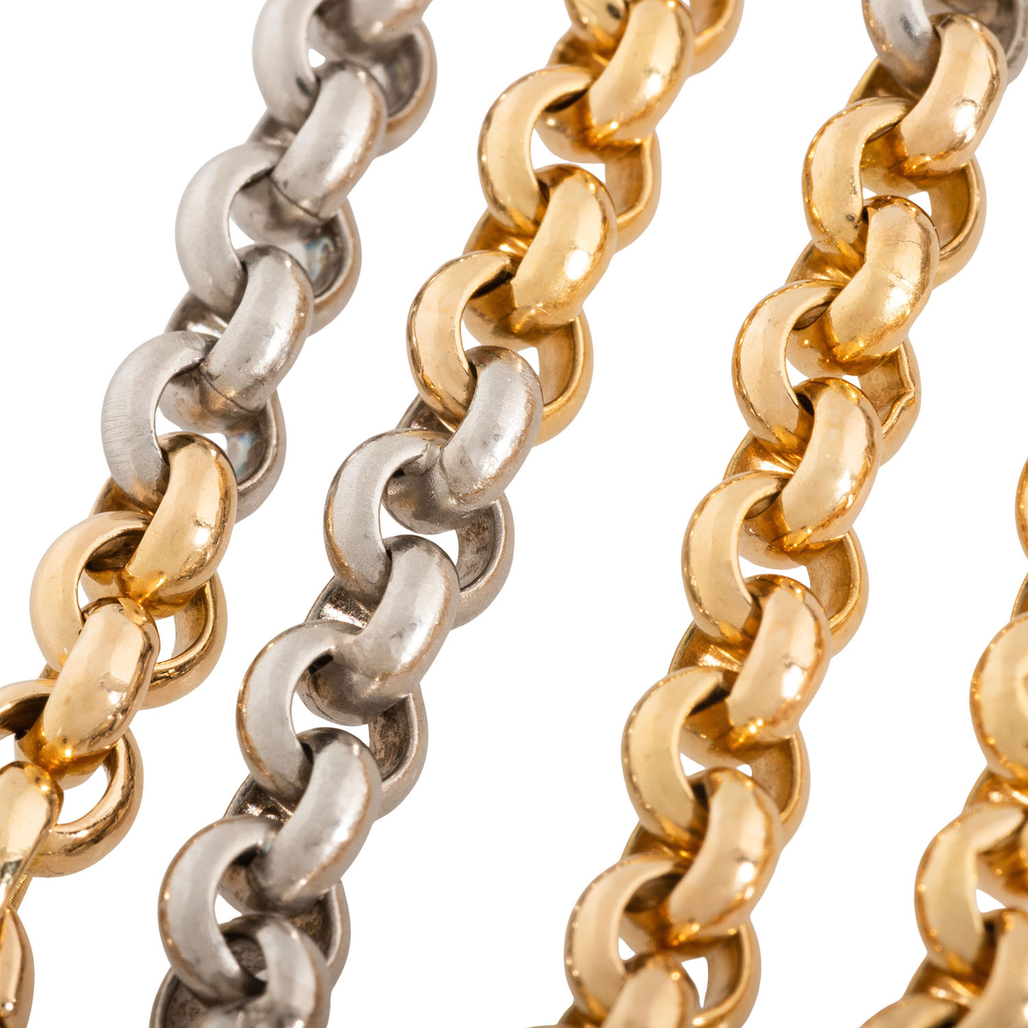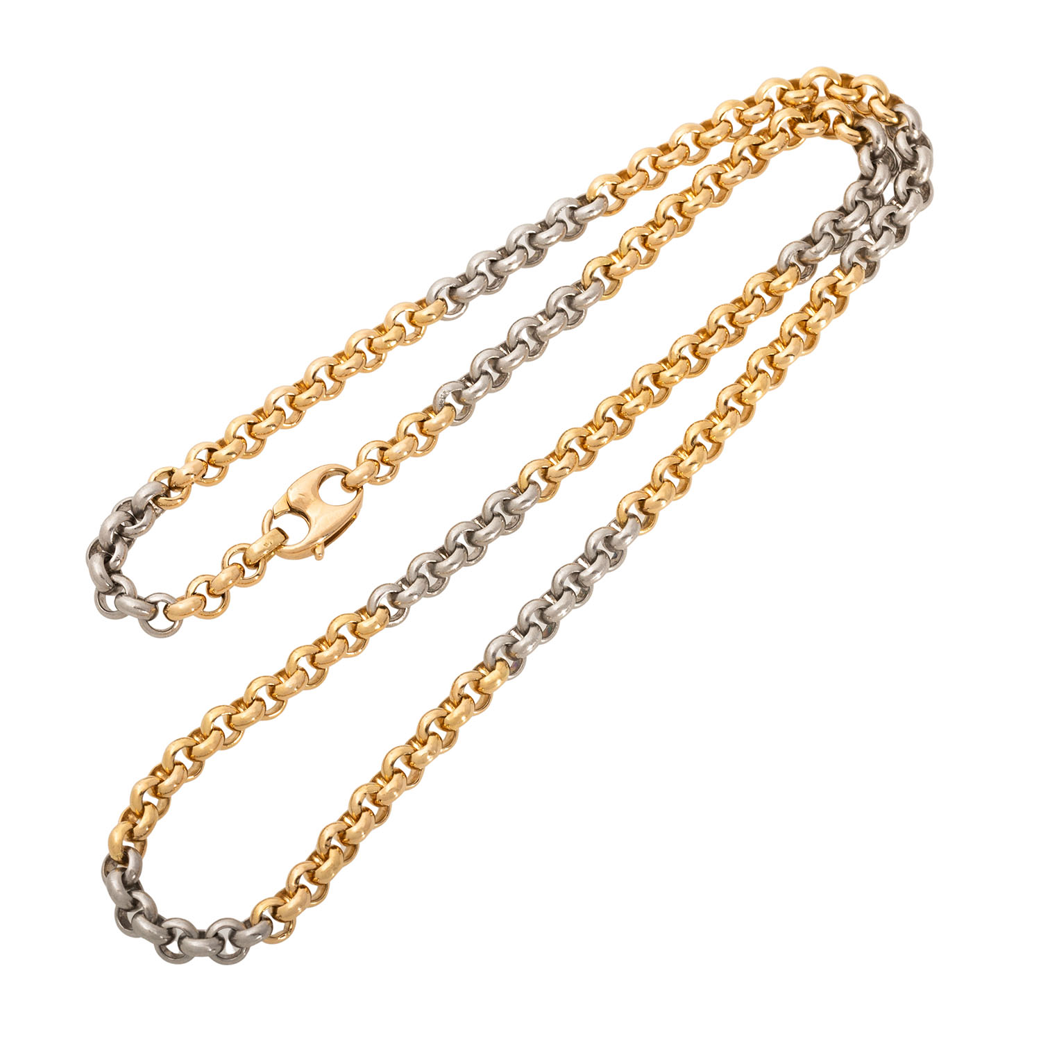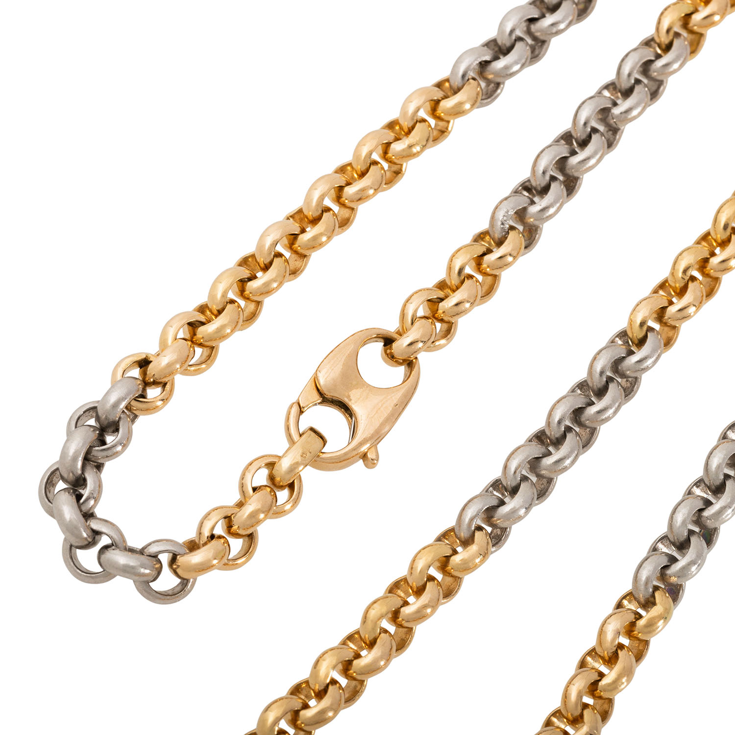Necklace, solid, W: 5 mm, two-coloured YG 18K and Pt 950 alternating, 59.4 g, L: 49 cm, g, lobster clasp, late 20th century, minimal signs of wear.