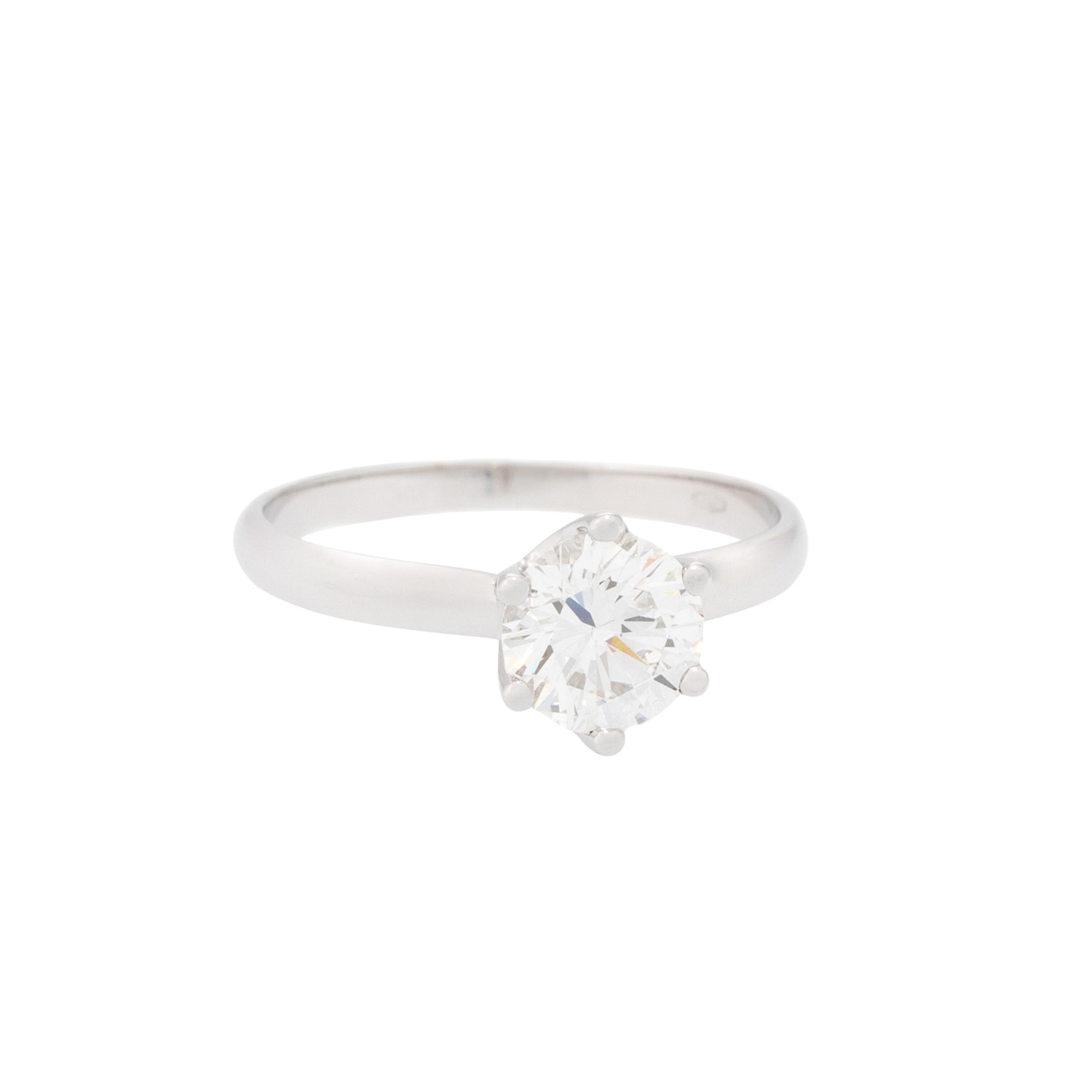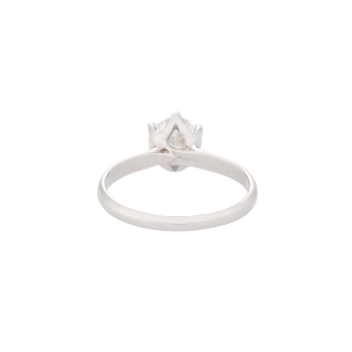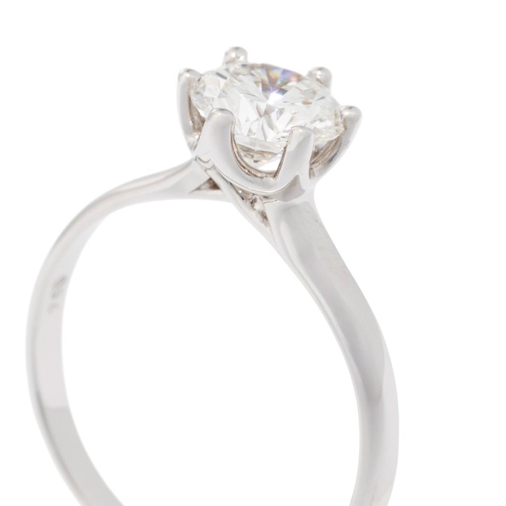 Solitaire Ring with brilliant-cut diamond, 1.06 ct, RW (G)/VS, WG 18 K, 2,5 g, ring size 53, 21st century, mint condition. Handcrafted work.