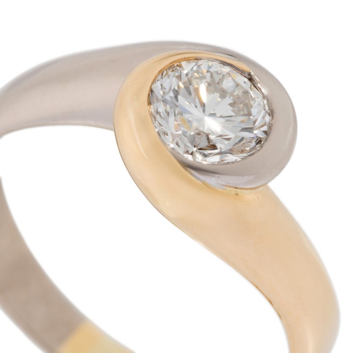Solitaire ring with brilliant-cut diamond ca. 1.0 ct, ca. WHITE-STW (H-I)/SI 1-2, 18K white and yellow gold, 7,9 g, ring size 60, 20th/21st century, signs of wear.