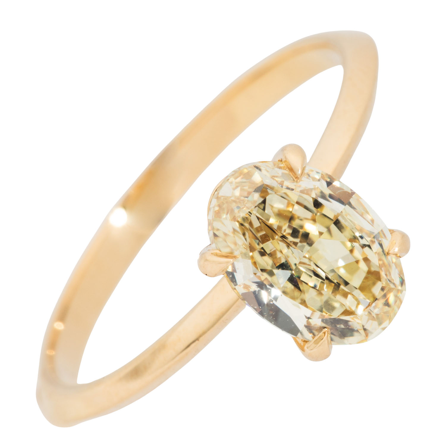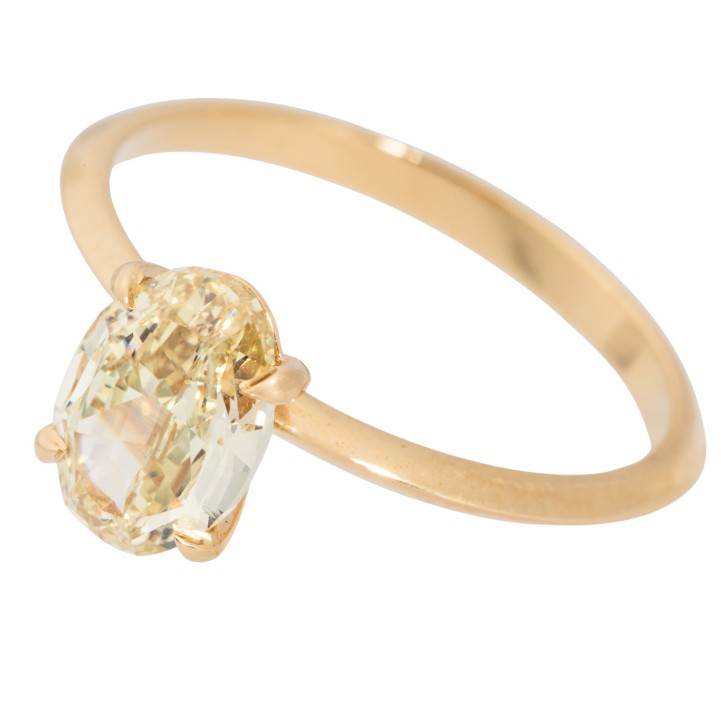 Solitaire ring with natural diamond, 1.51 ct, FANCY INTENSE YELLOW/VS1, oval cut, YG 18 K, 2.6 g, ring size 55, 21st century, mint condition. E.G.LABS certificate J50850602IL included.