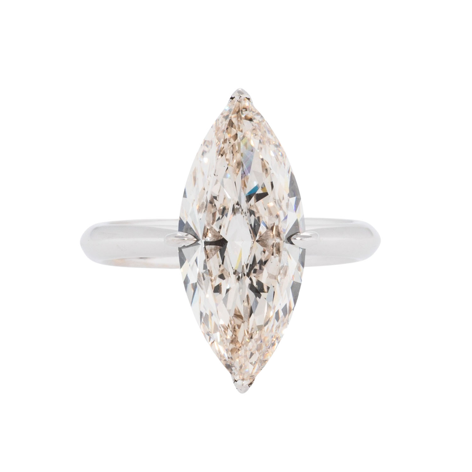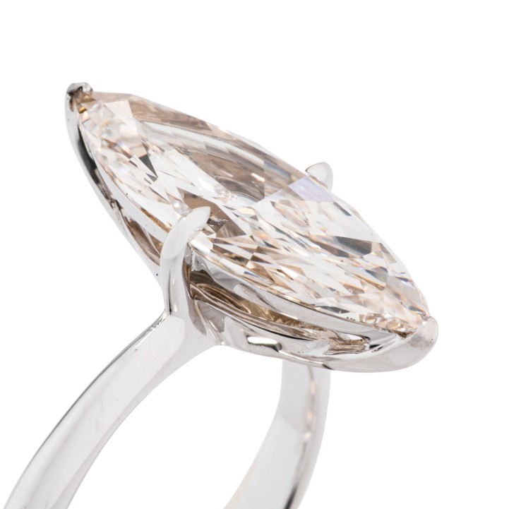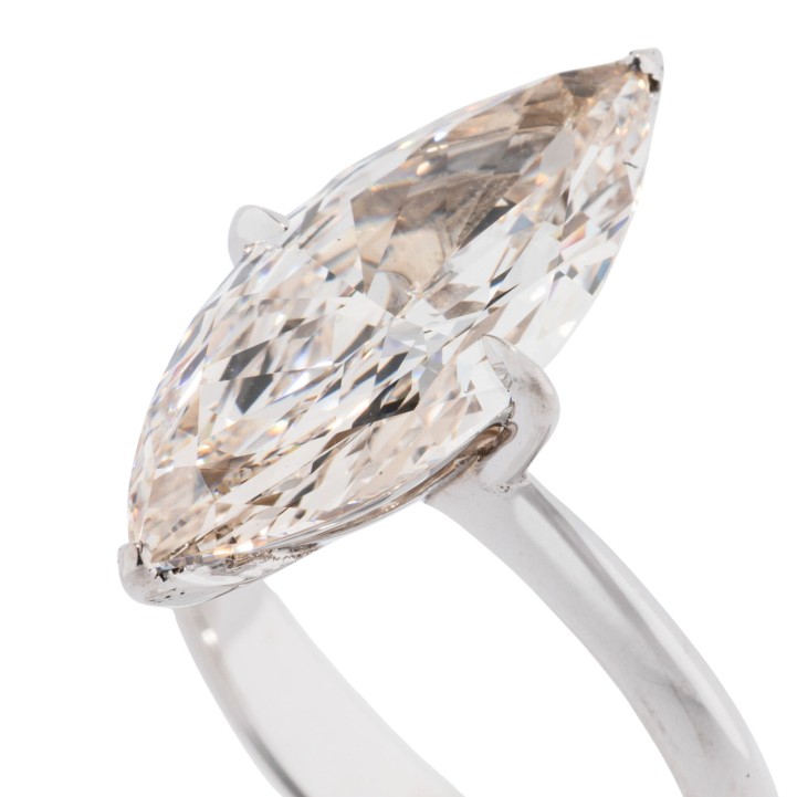 Solitaire Ring with Diamond, 5.03 ct, LGW (J)/VS2, Marquise Cut, WG 18 K, 6 g, ring size 55, 21st century, mint condition. HRD Certificate 200000052794 enclosed.