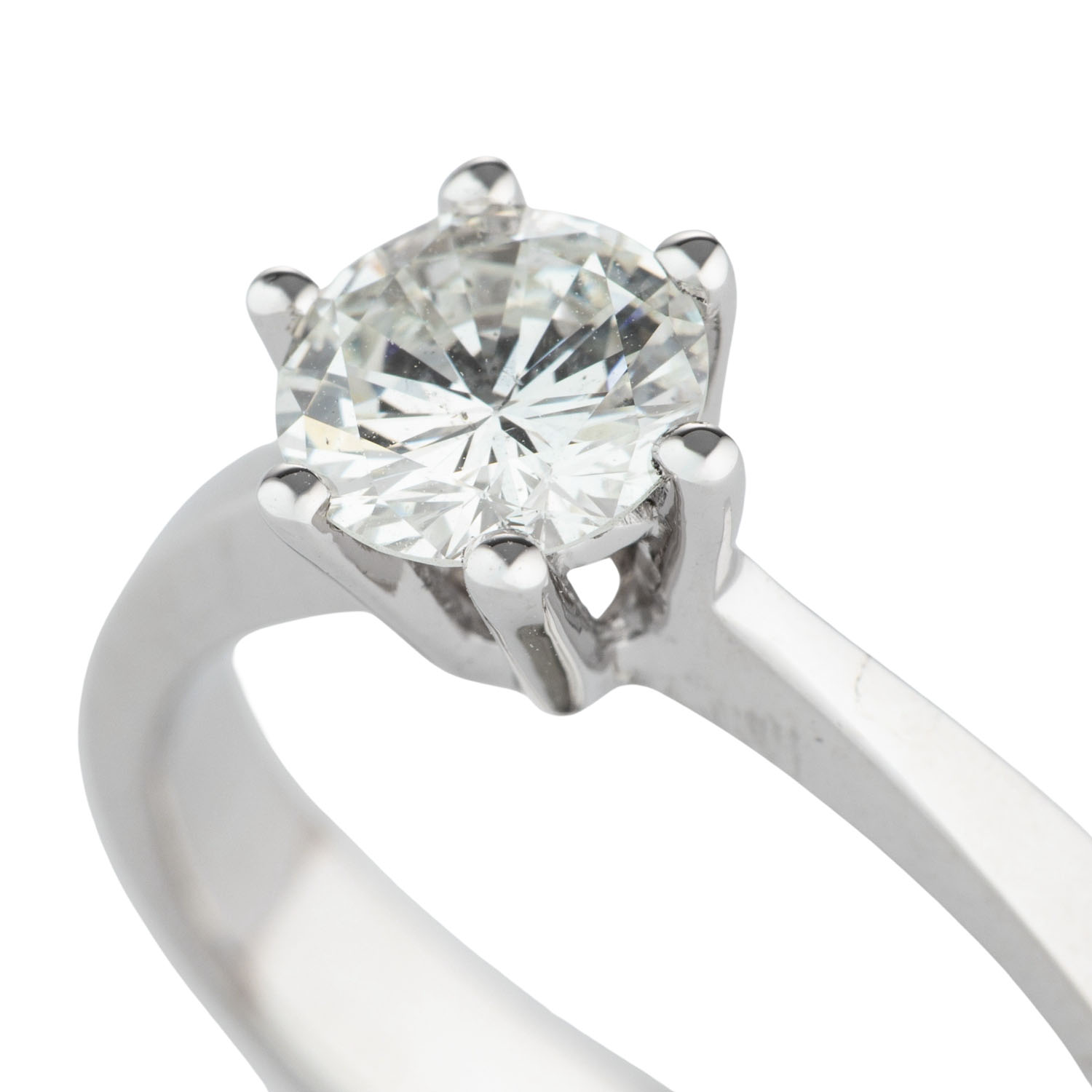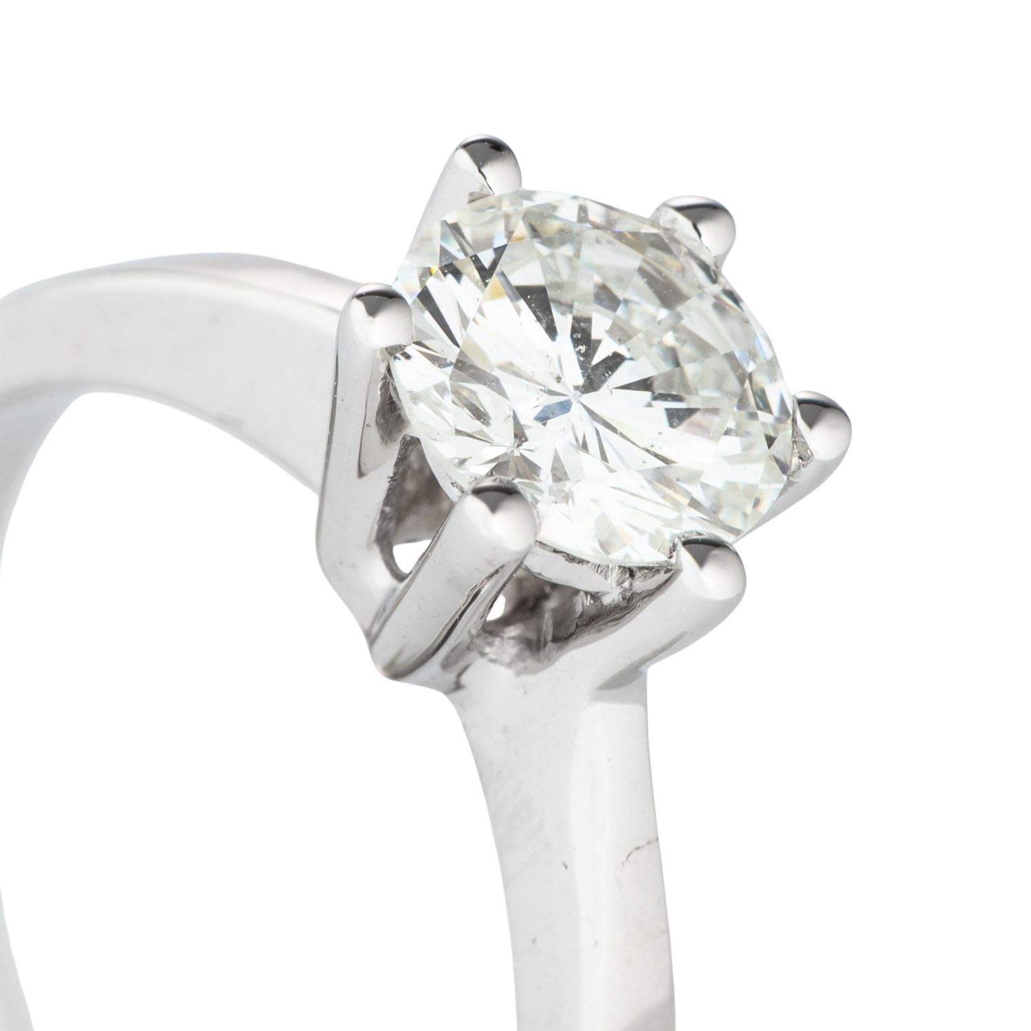 Solitaire Ring with brilliant-cut diamond 0.99 ct, WHITE (H)/SI1, WG 18K, 4.7 g, ring size 55, 21st century, mint condition. DPL certificate SB 876 from 02/2025 enclosed.