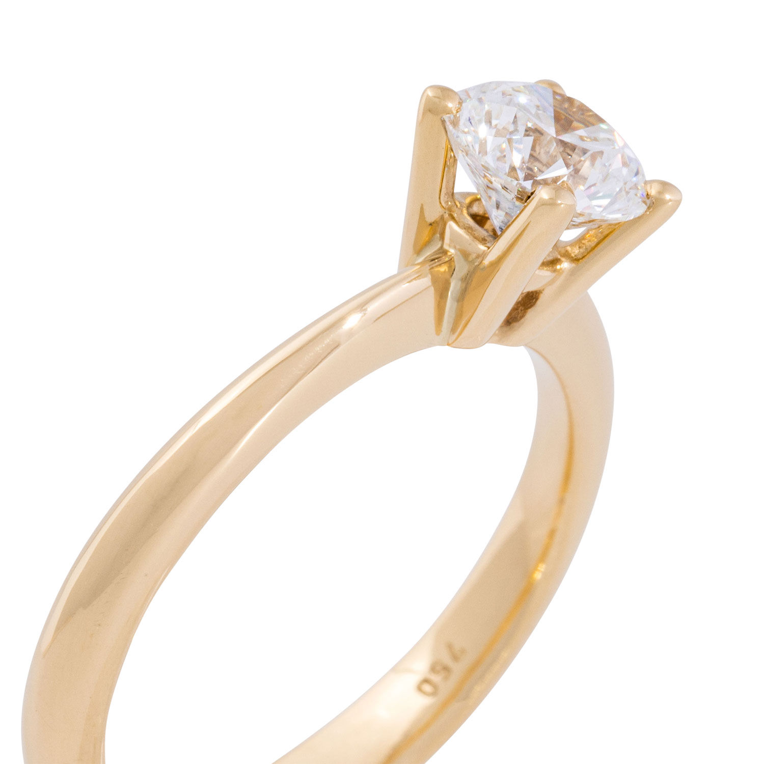 Solitaire Ring with brilliant-cut diamond 1.01 ct EW(D)/VVS 2, YG 18K, 4.6 g, ring size 53, 21st century, mint condition. DPL certificate no.: TZ 393 from 09/2023 enclosed.