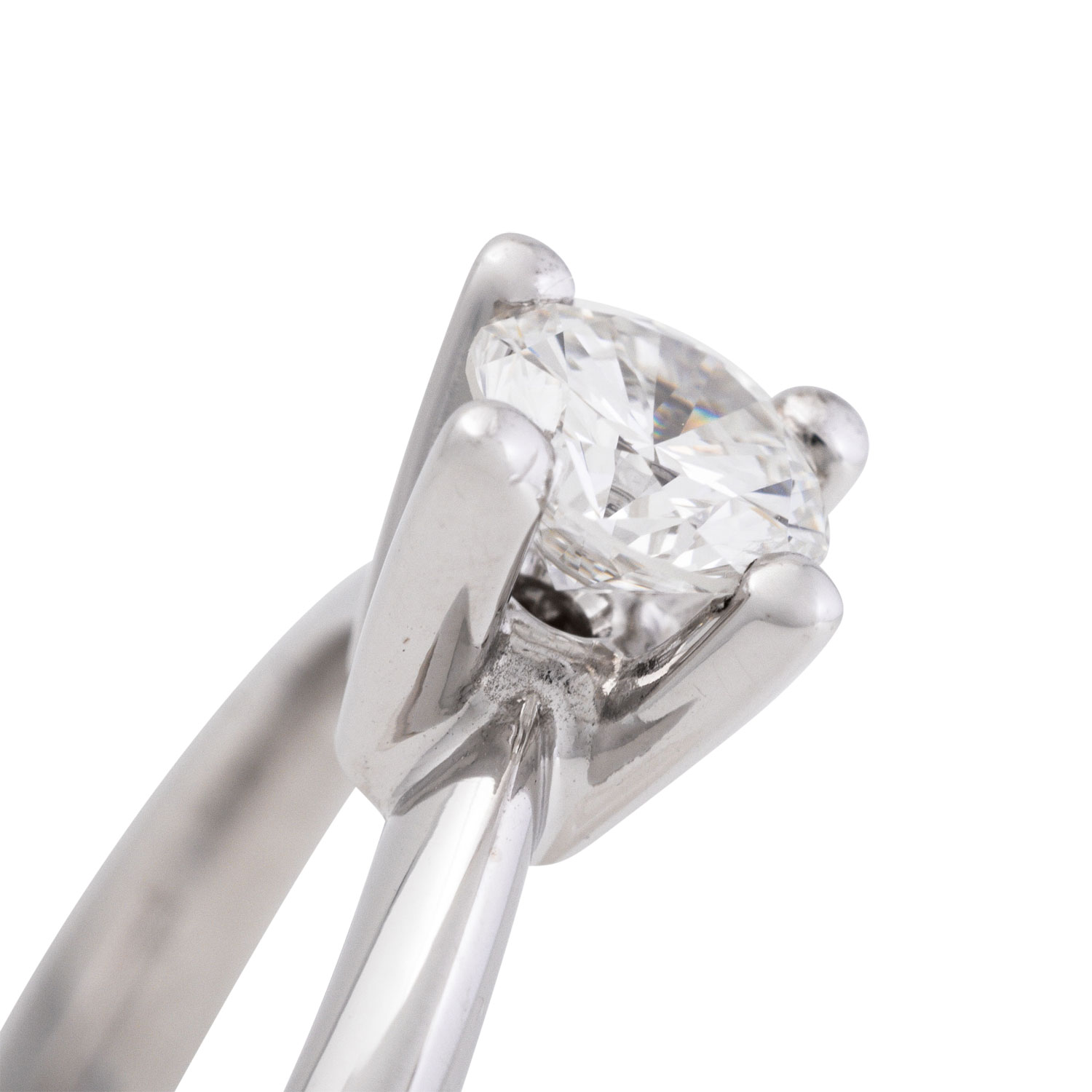 Solitaire Ring with brilliant-cut diamond ca. 0.55 ct, RW (G)/IF, WG 18K, 4.2 g, ring size 55, 21st century, mint condition. DPL certificate TZ 749 from 11/2023 is enclosed.