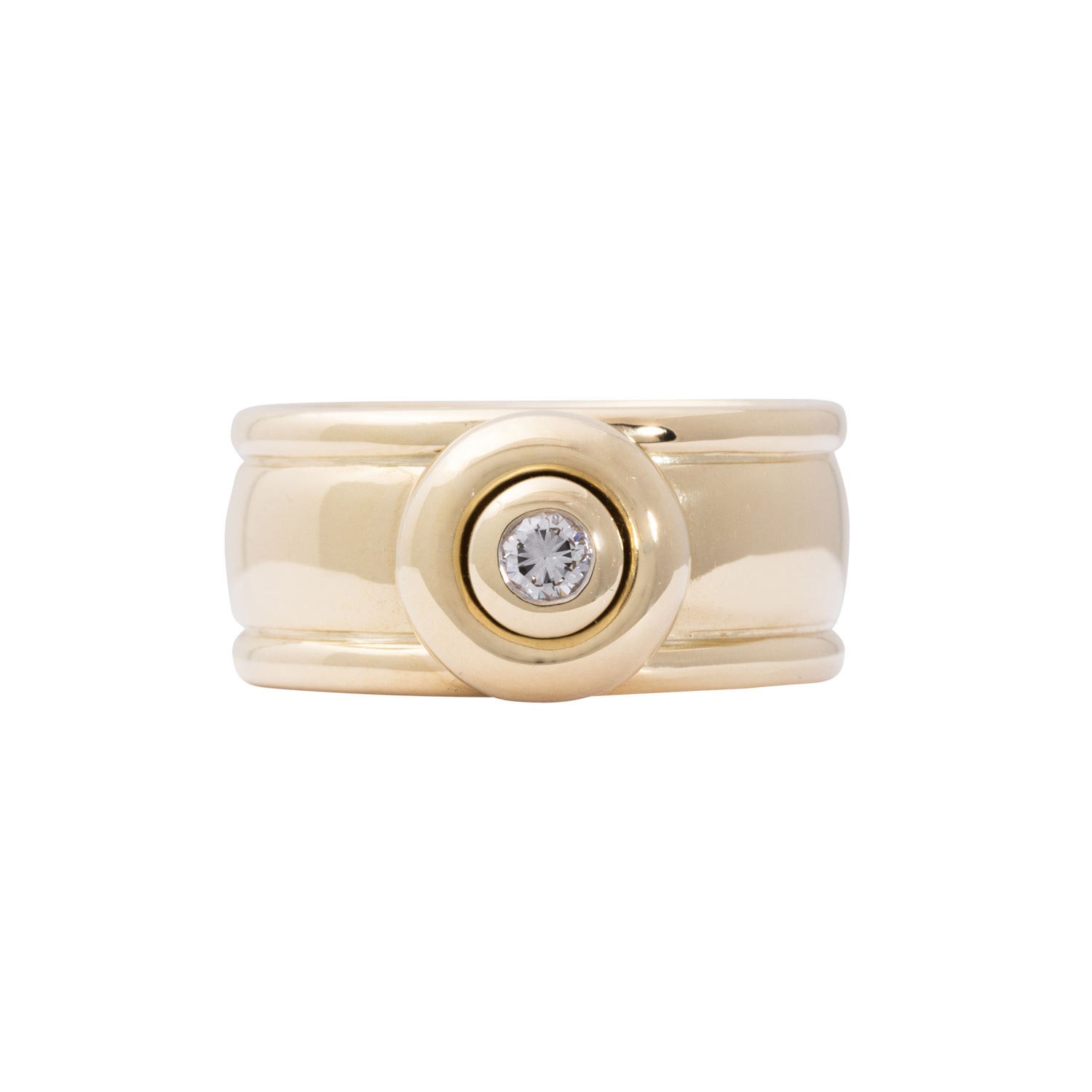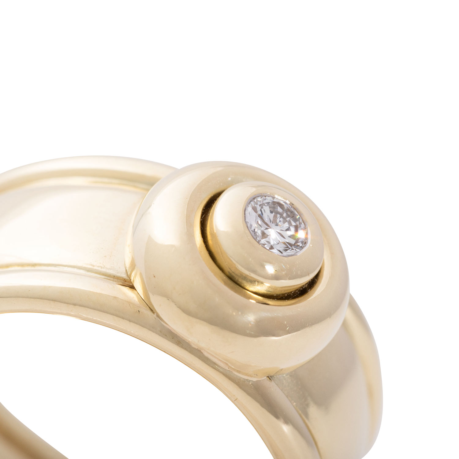 Ring with brillliant cut diamond, 0.10 ct (marked), WHITE (H)/VS, 14K yellow gold, 13.3 g, ring size 54, late 20th century, with signs of wear.