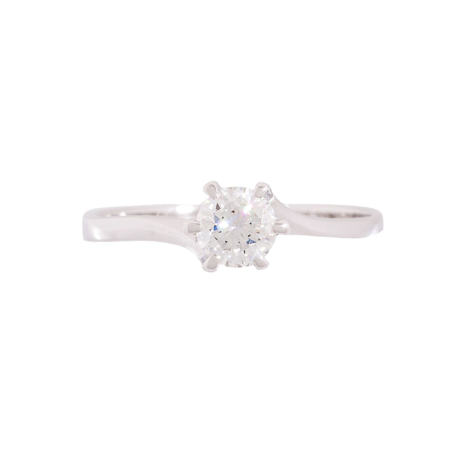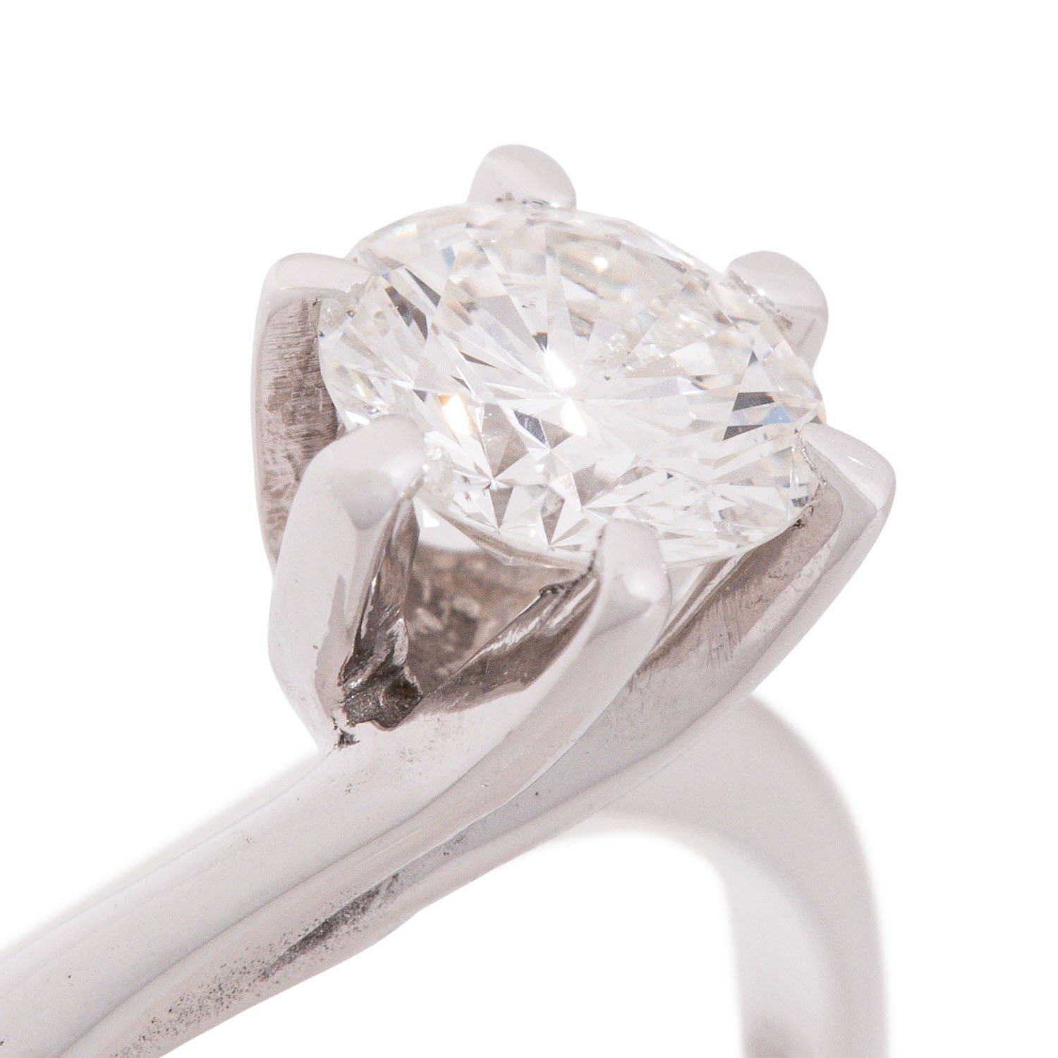 Solitaire ring with brillant-cut diamond, 0.55 ct, WHITE (H)/P, 14K white gold, 2.5 g, ring size: 58.5, W: approx. 2.1 - 6 mm, 20th/21st century, signs of wear. Stone chipped.