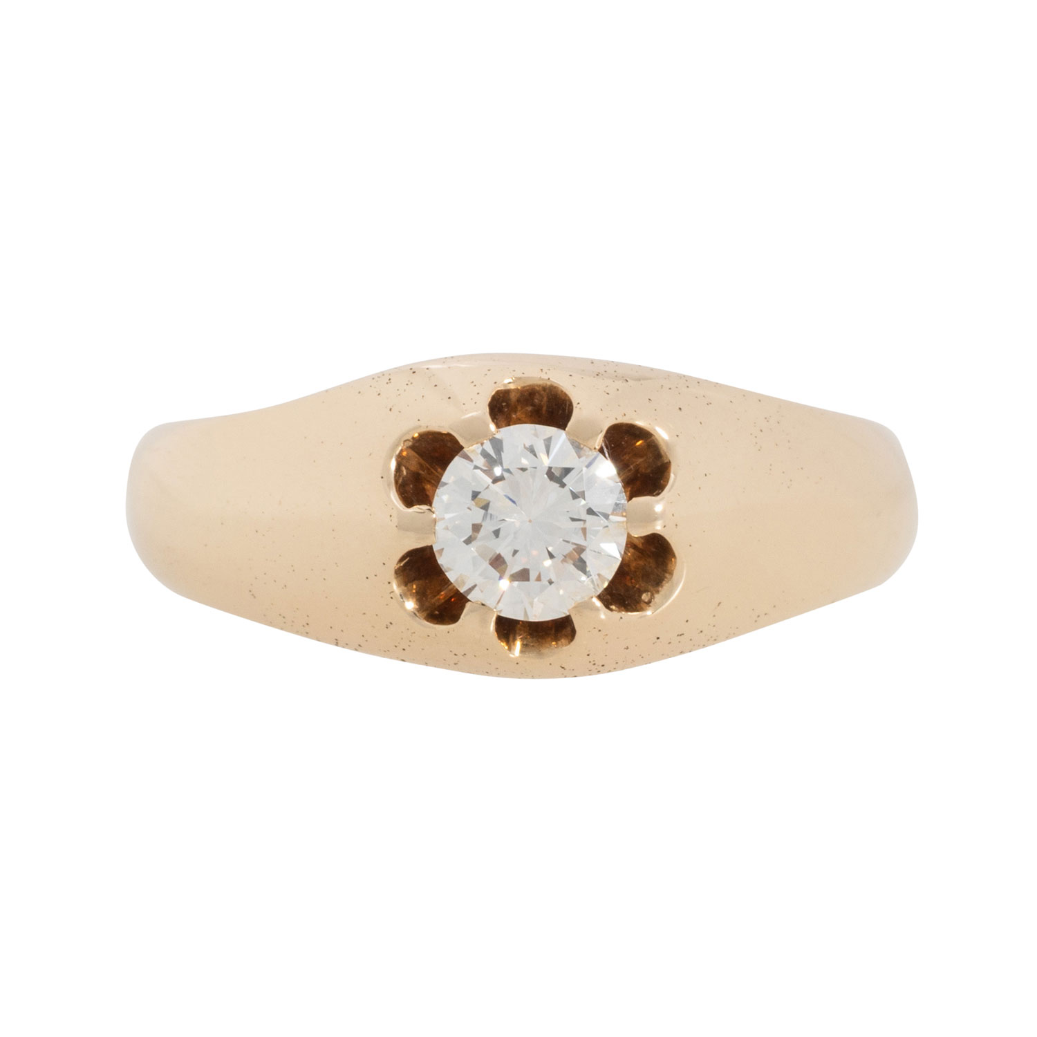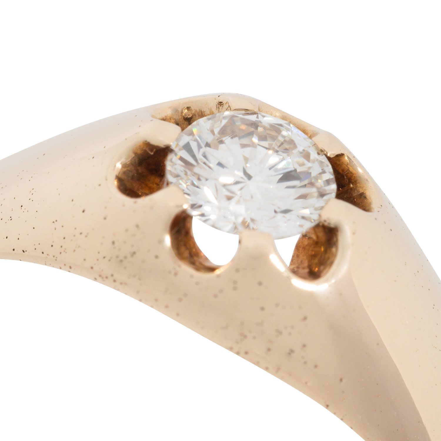 Solitaire ring with brilliant-cut diamond ca. 0.56 ct, ca. WHITE (H)/IF, replacement value ca. 4,000 €, 14K yellow gold, 5.8 g, ring size 62, 2nd half of 20th century, signs of wear, including diamond certificate (1991).