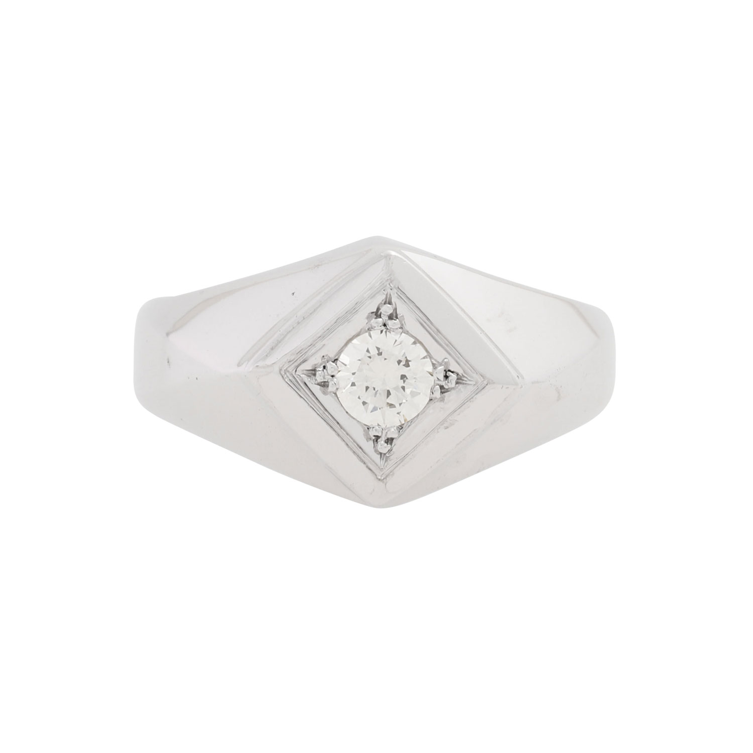 Solitaire ring with brilliant-cut diamond ca. 0.2 ct, ca. WHITE (H)/VVS, 14K white gold, 7.6 g, ring size 56, 2nd half of 20th century, good condition.