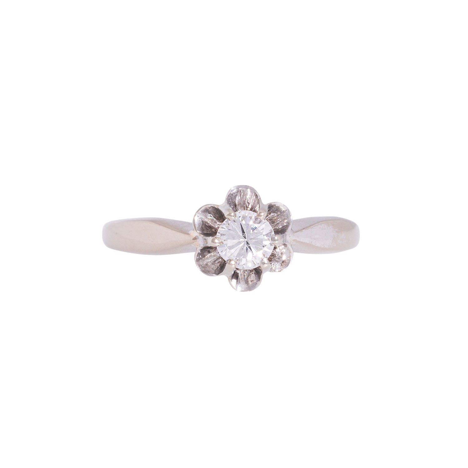 Solitaire ring with brilliant of c. 0.36 ct (engraved), c. WHITE (H)/SI2, WG 14K, 2.8 g, RW: 59, 20th/21st, signs of wear, hallmarked 585.