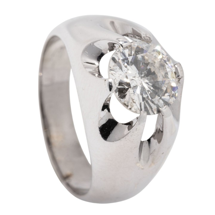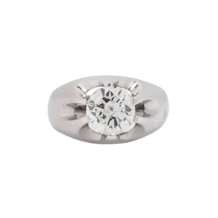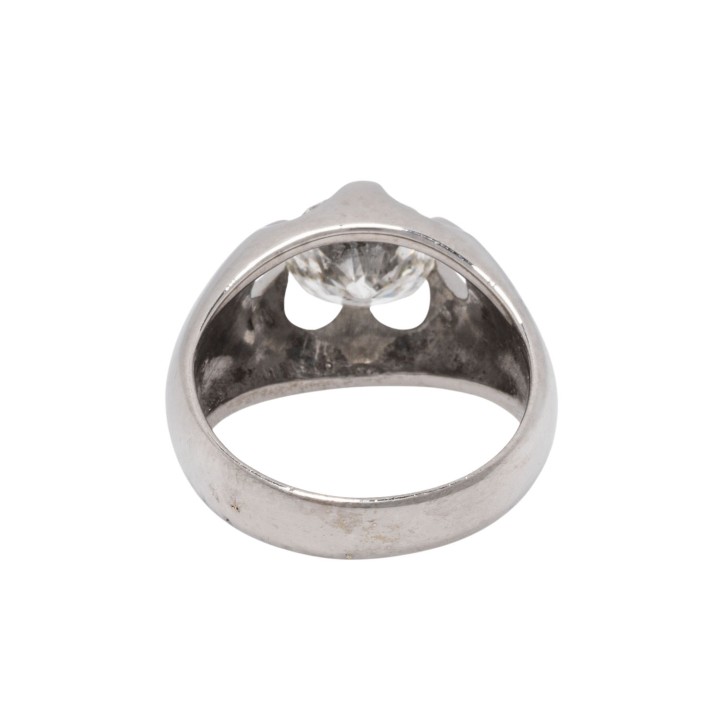 Solitaire ring with brilliant-cut diamond ca. 2.07 ct, ca. RW (F-G)/I1, 14K white gold, 7.8 g, ring size 54, 2nd half of 20th century, signs of wear.