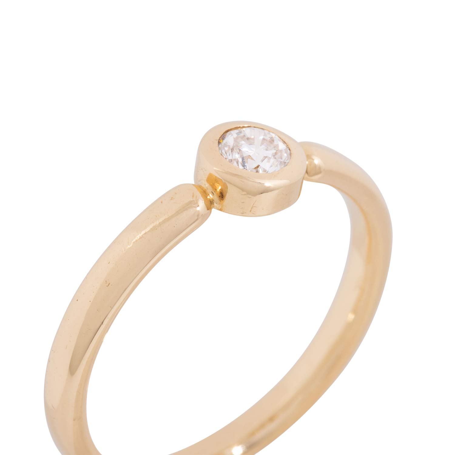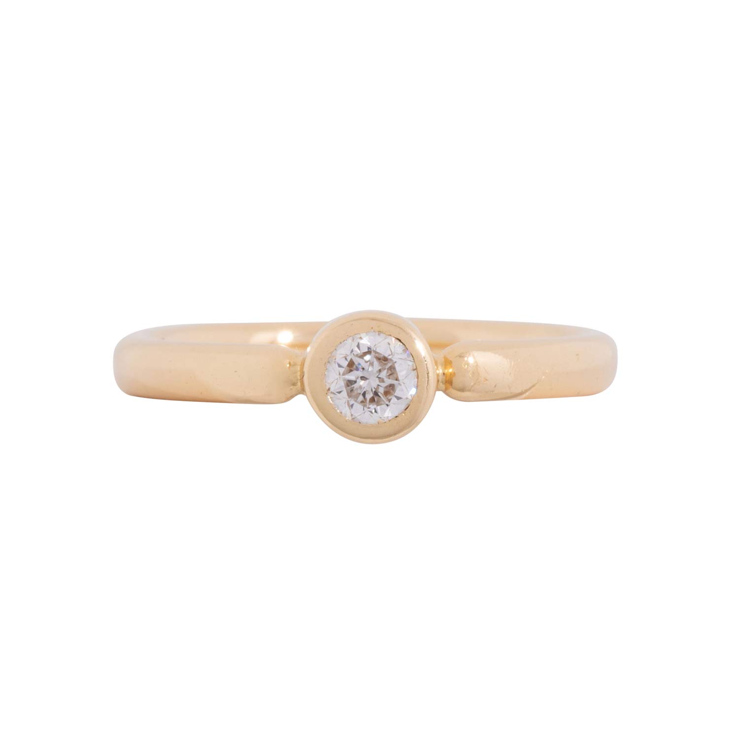 Solitaire ring with brilliant cut diamond ca. 0,20 ct., RW (F-G)/SI2, 18K yellow gold, 3.8 g, ring size: 57, late 20th century, minor signs of wear.