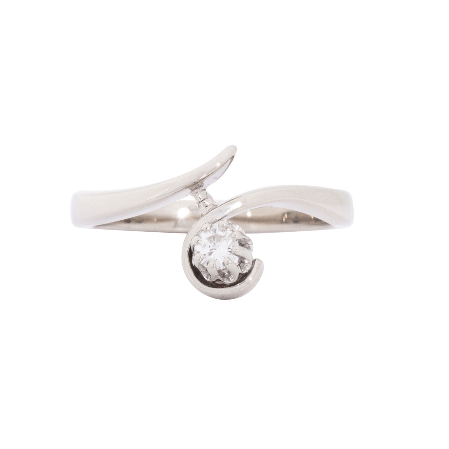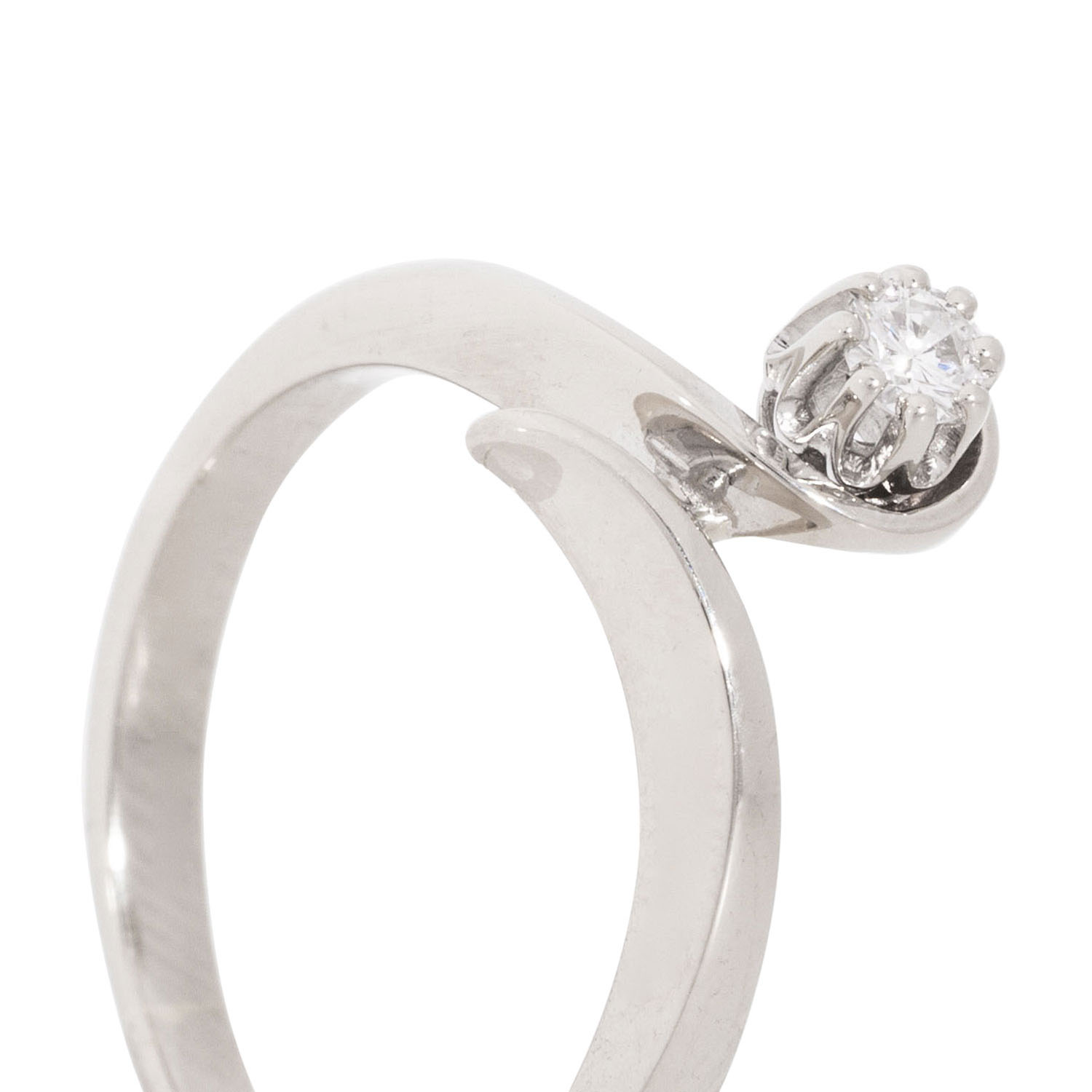 Solitaire ring with brilliant-cut diamond ca. 0.08 ct, ca. WHITE (H)/VS, 18K white gold, 3 g, ring size: 49, W: ca. 2.2 - 10 mm, 21st century, minimal signs of wear.