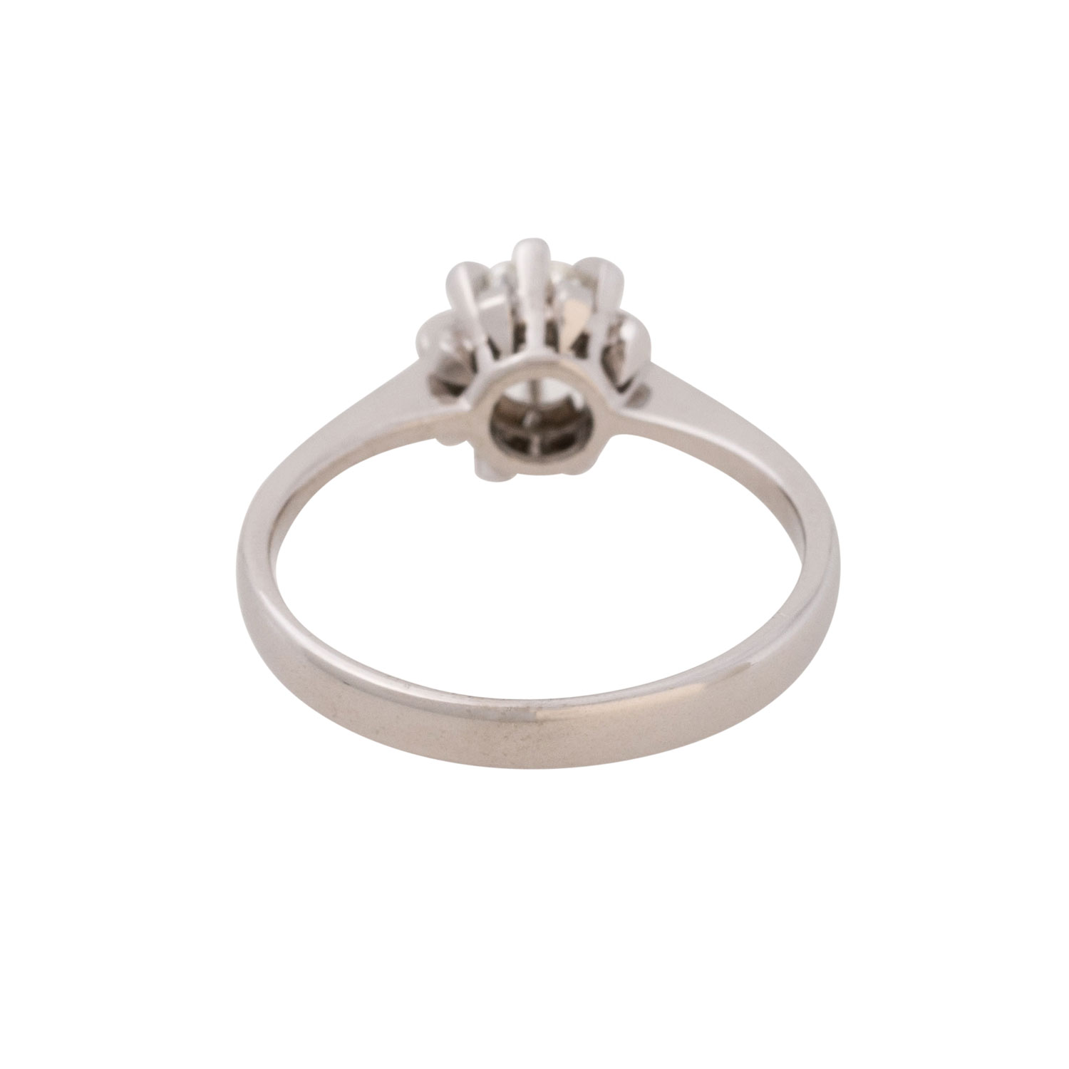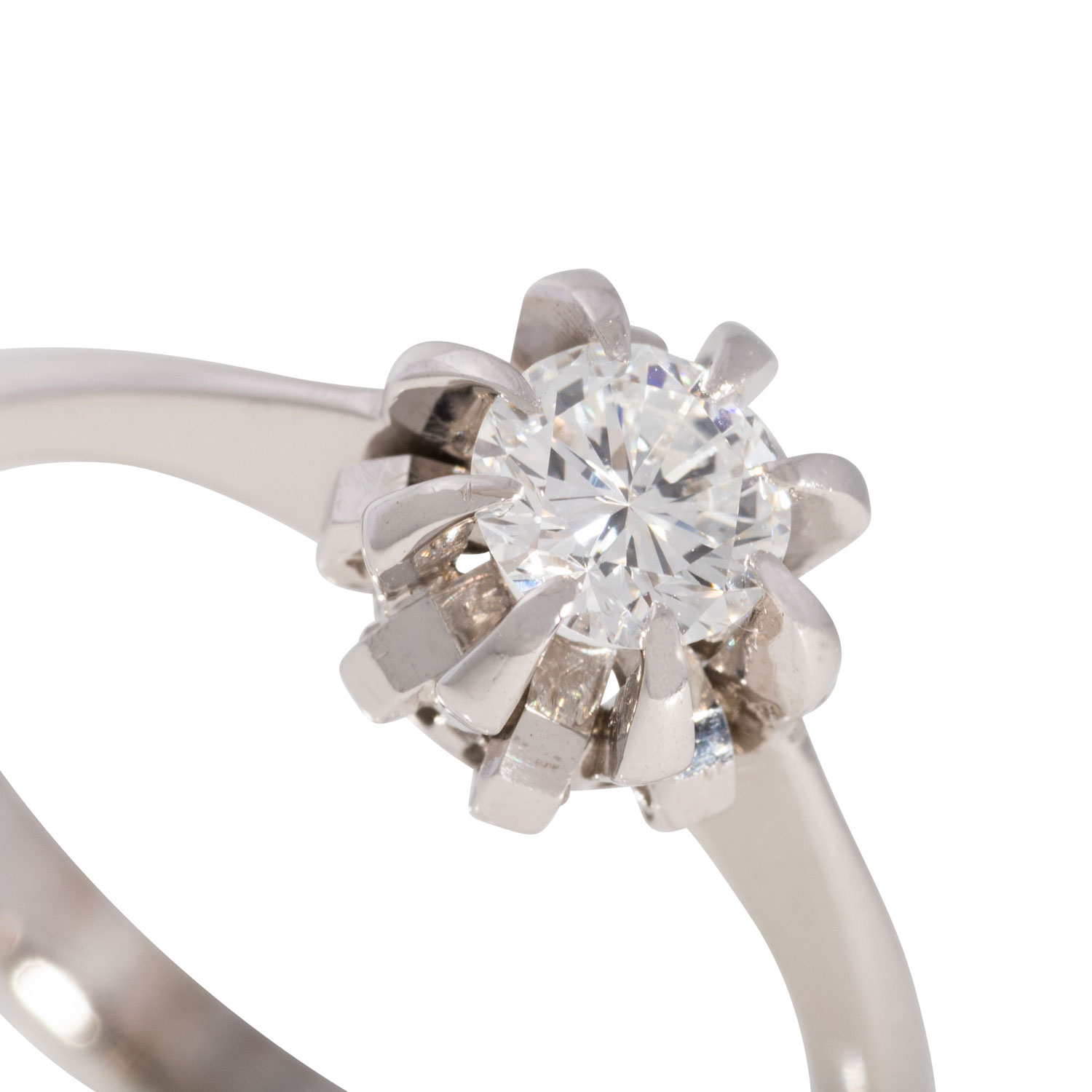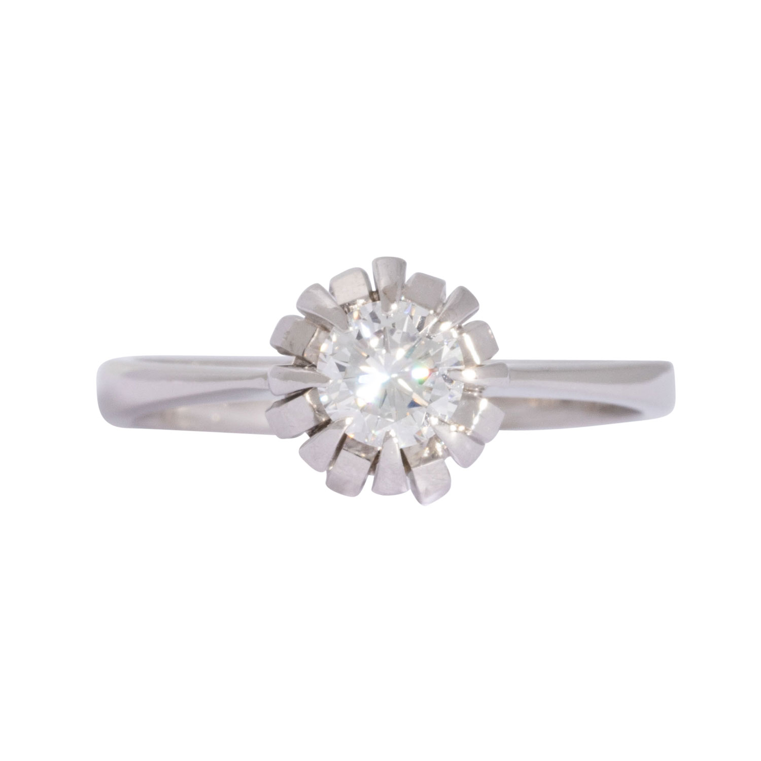 Solitaire ring with brilliant-cut diamond ca. 0.43 ct, ca. RW (F-G)/VVS, 18K white gold, 3.1 g, ring size: 54, W: ca. 2.5 - 7.8 mm, 2nd half of the 20th century, minor signs of wear, with Italian hallmarks.