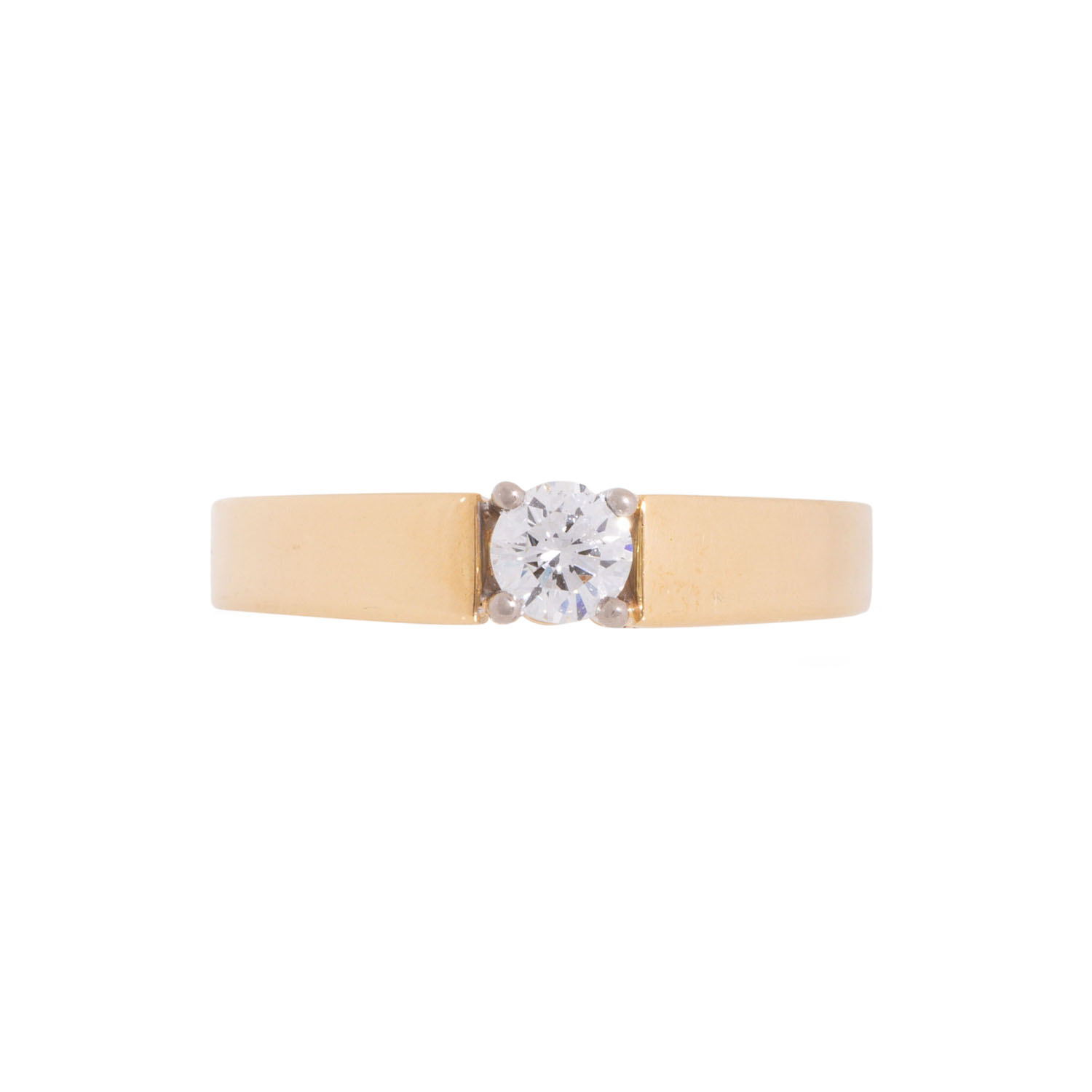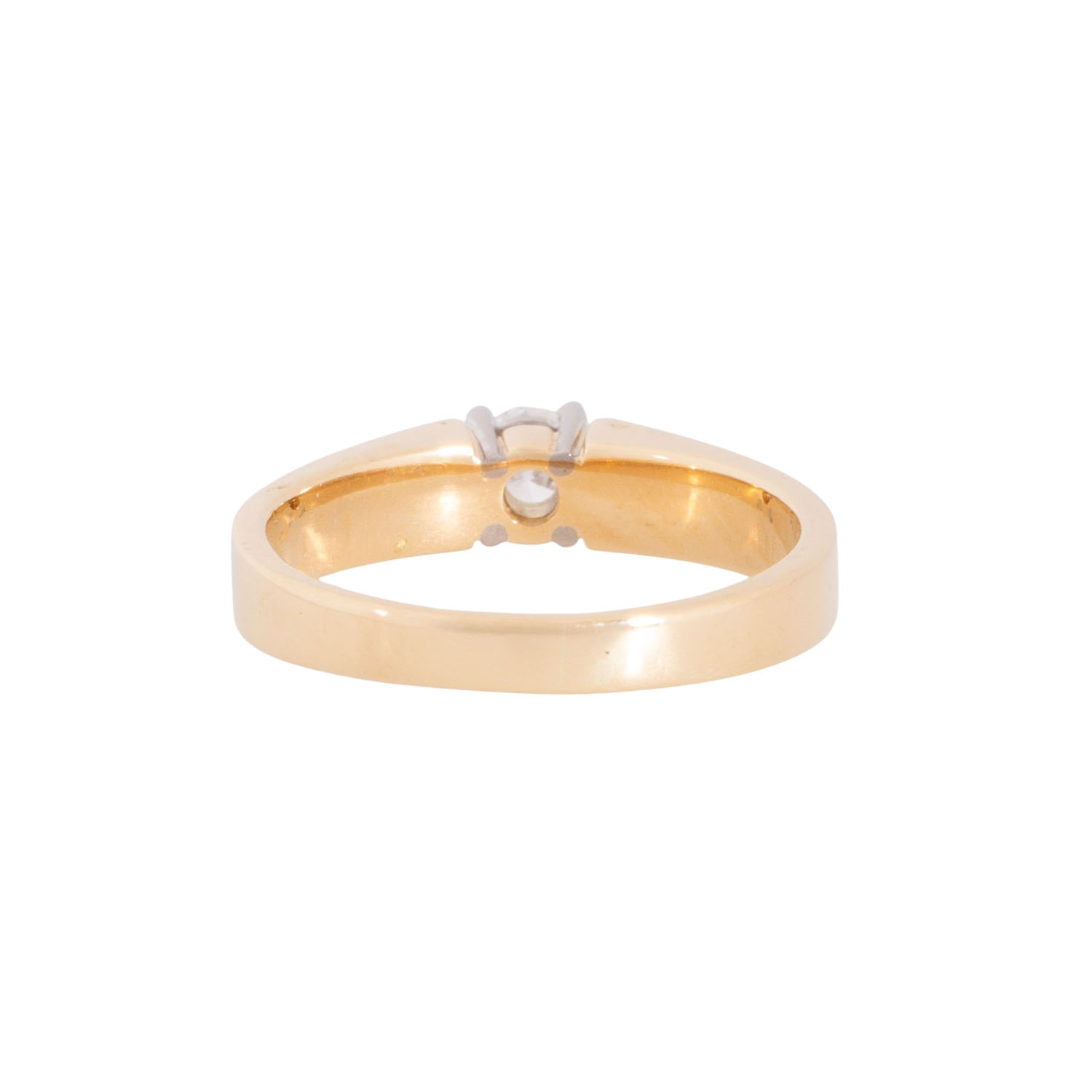 Solitaire ring with brilliant-cut diamond, approx. 0.23 ct, RW (F-G)/VS, 18K yellow gold/white gold, 4.5 g, ring size: 52, W: approx. 2.5 - 4 mm, 21st century, minimal signs of wear, with hallmark.