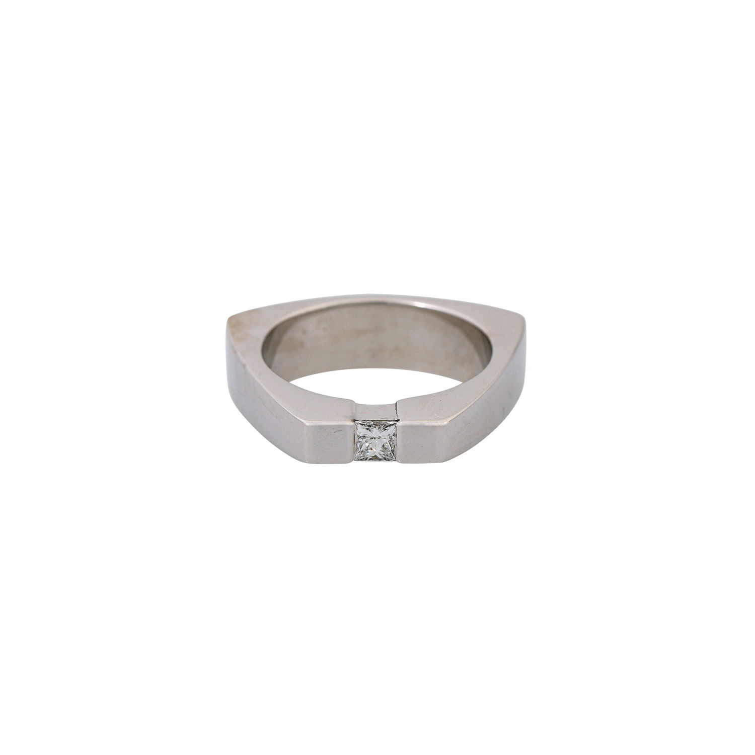 Solitaire ring with princess-cut diamond ca. 0.15 ct, ca. WHITE (H)/P1, 18K WG, 9.9 g, ring size: 51, 1960th, minor signs of wear.
