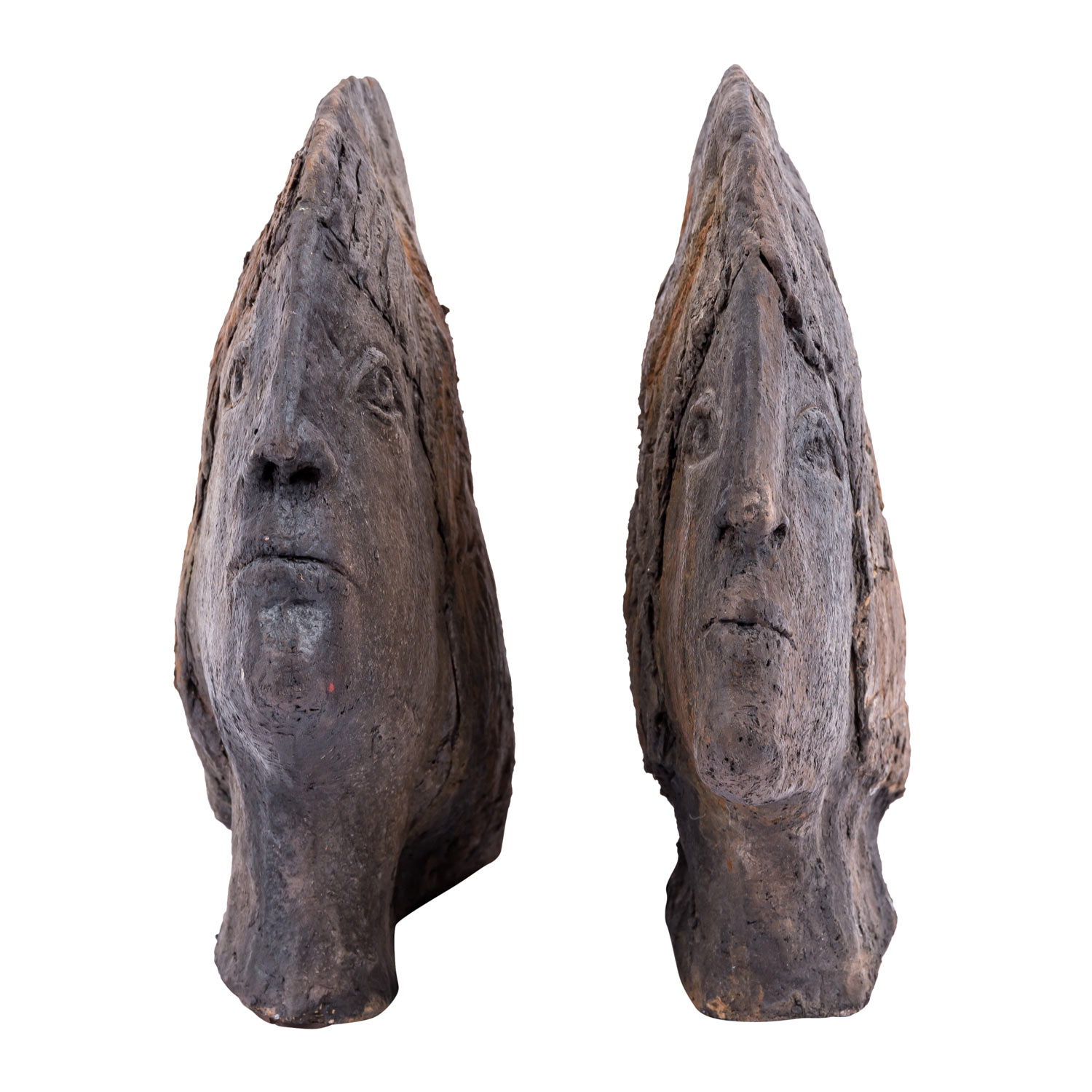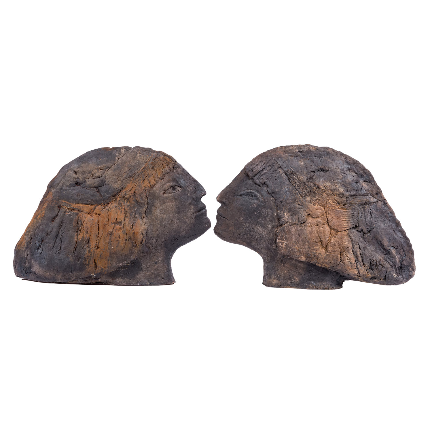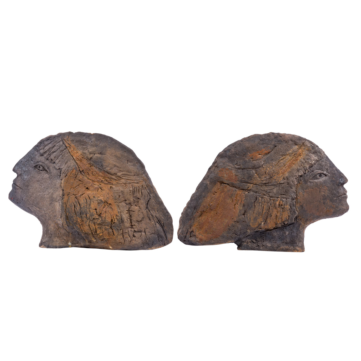 SPUHLER, MARGOT (1942), Pair of girls' heads, terracotta, modelled and fired, each monogrammed 'MS', HxL: approx. 24x35 cm. Signs of age and wear, few chips.