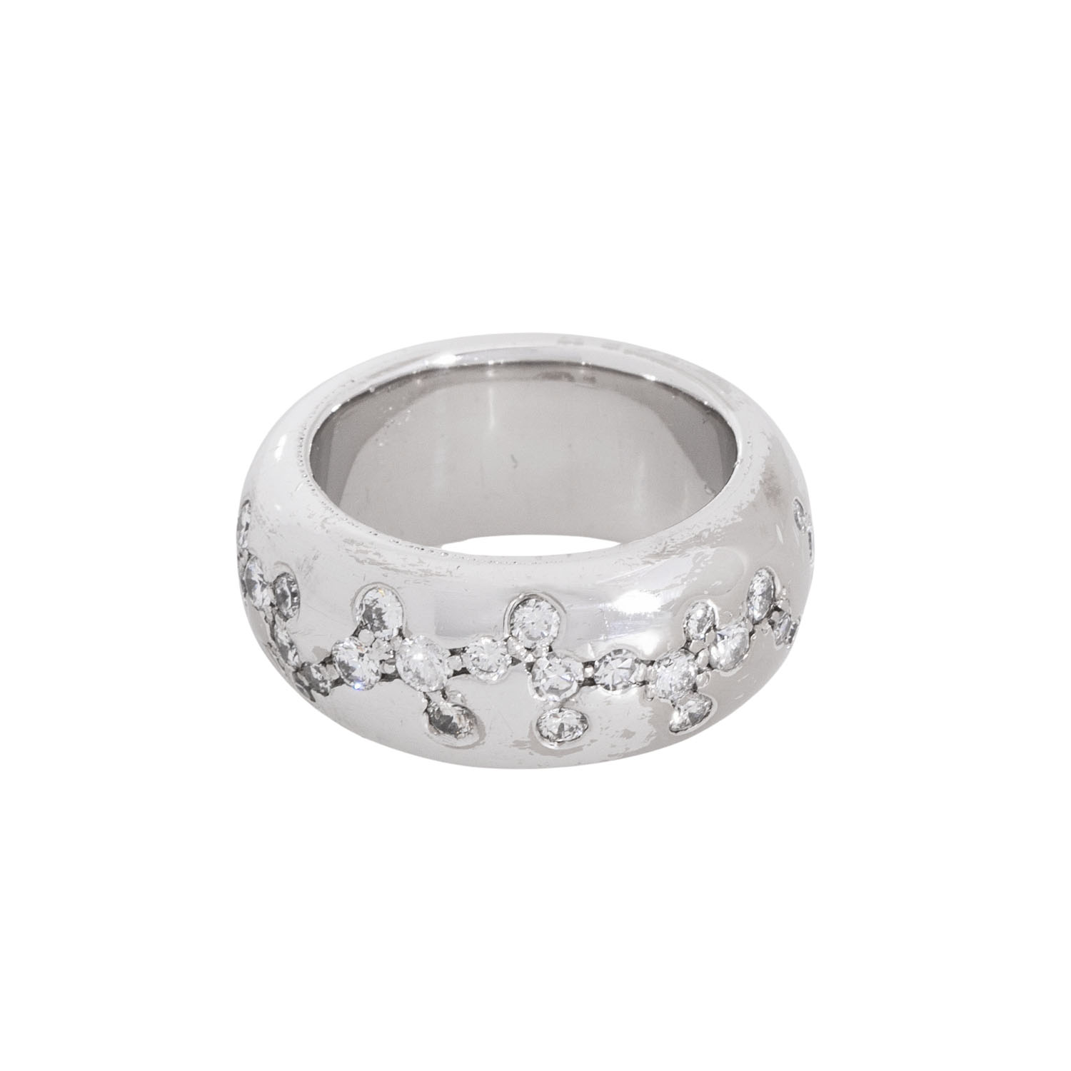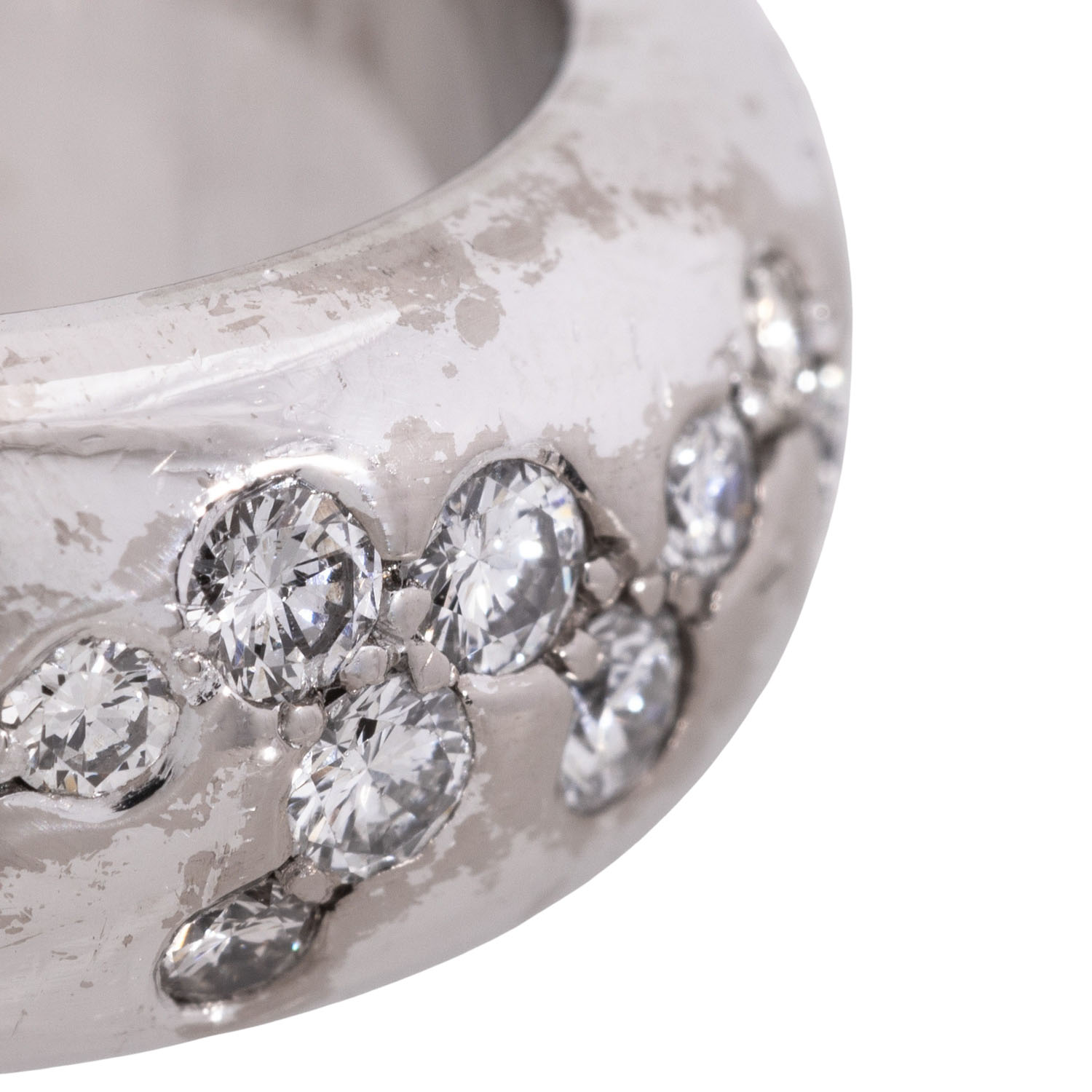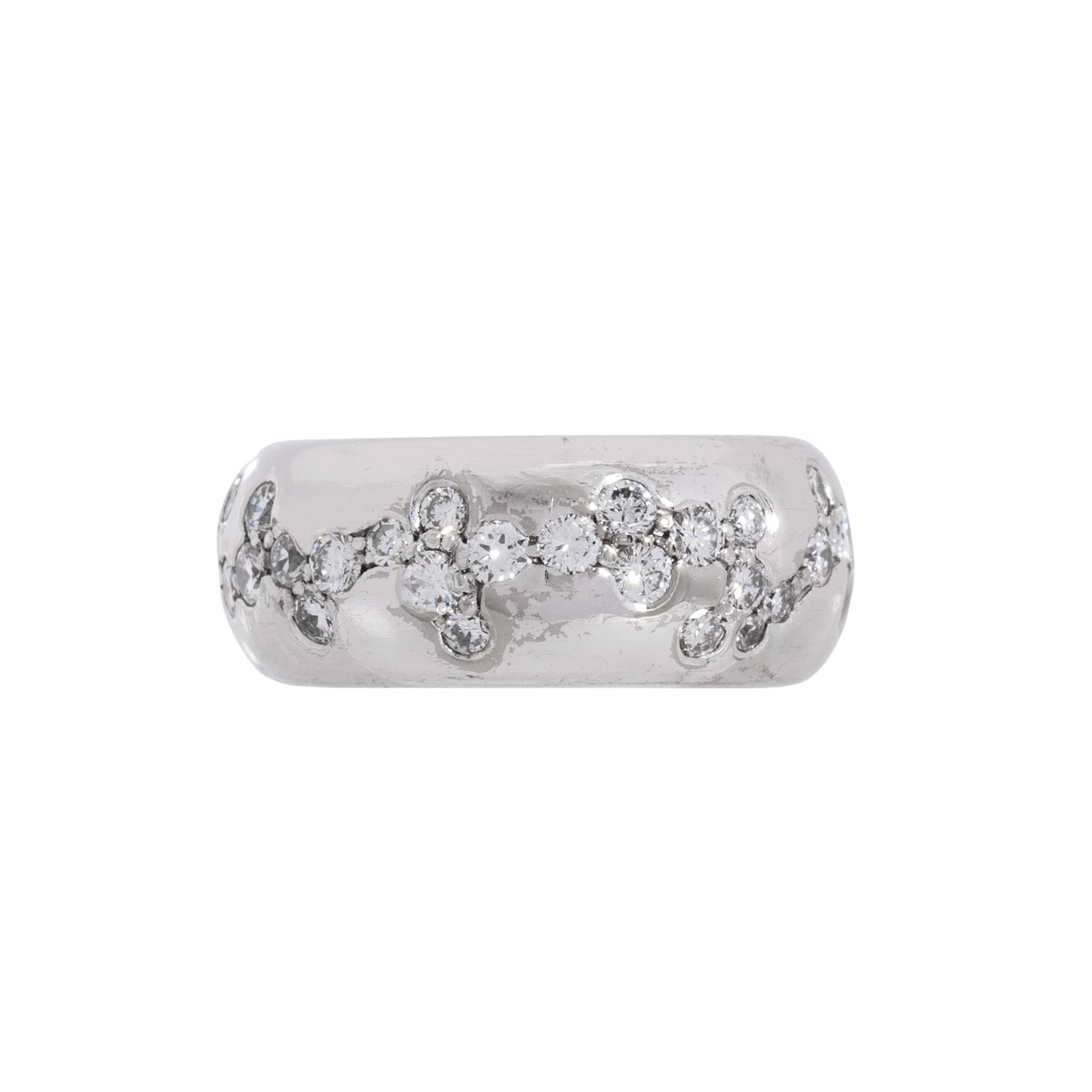 Band ring 'Starry Sky' with 42 brilliant-cut and 9 single-cut diamonds, total. approx. 1.12 ct, WHITE (H)/SI-P, pavé set, 18K white gold, 14.8 g, ring size: 50, W: approx. 9.1 mm, 21st century, minor signs of wear, with hallmark, 1 stone chipped.