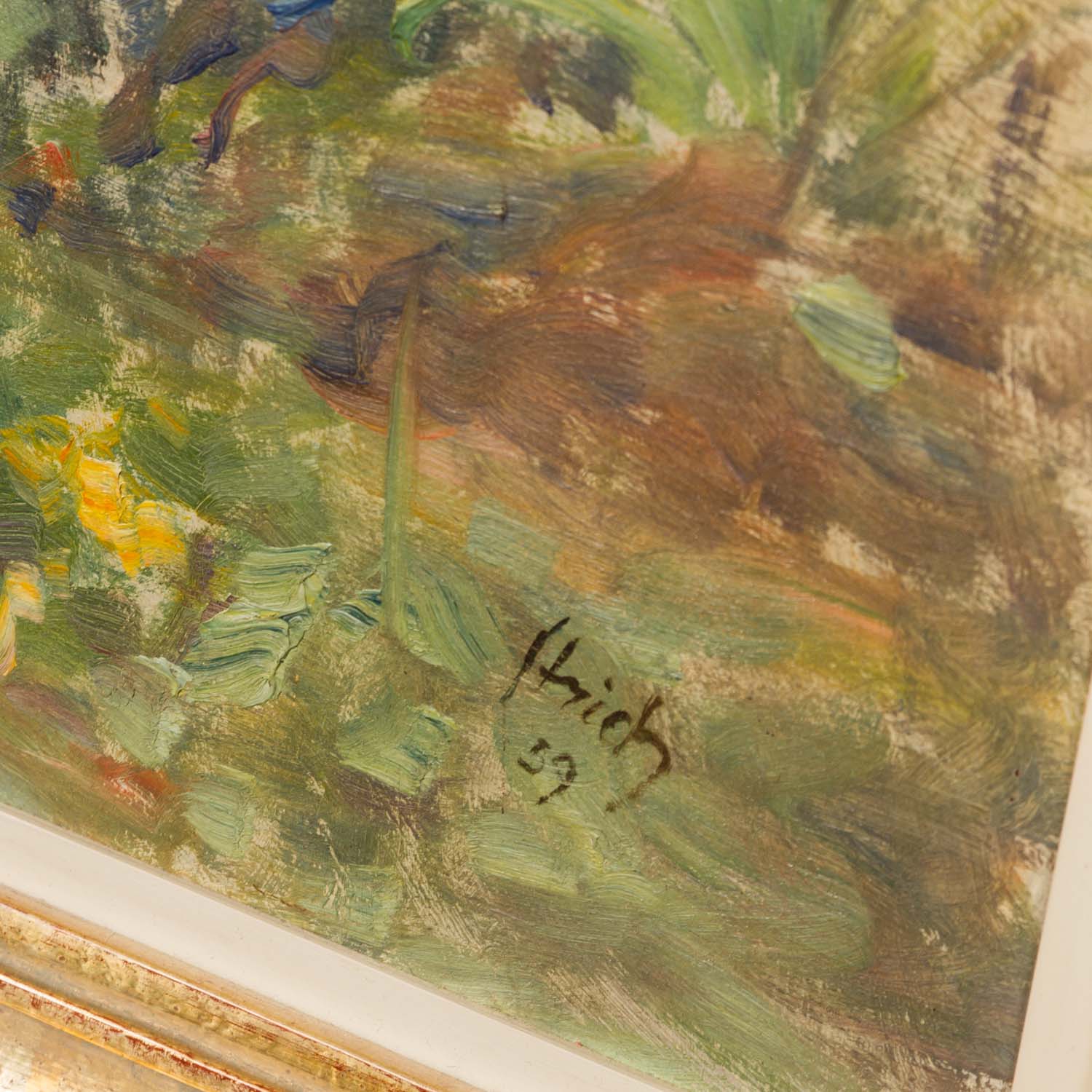 STRICH-CHAPELL, WALTER (1877-1960), “Flowers in the garden”, signed 'Strich' and dated '(19)59' lower right, oil/canvas, HxW 53x63 cm (63x72 cm with frame). Signs of age and wear, paint partially rubbed, craquelure. With frame (edges partially damaged).