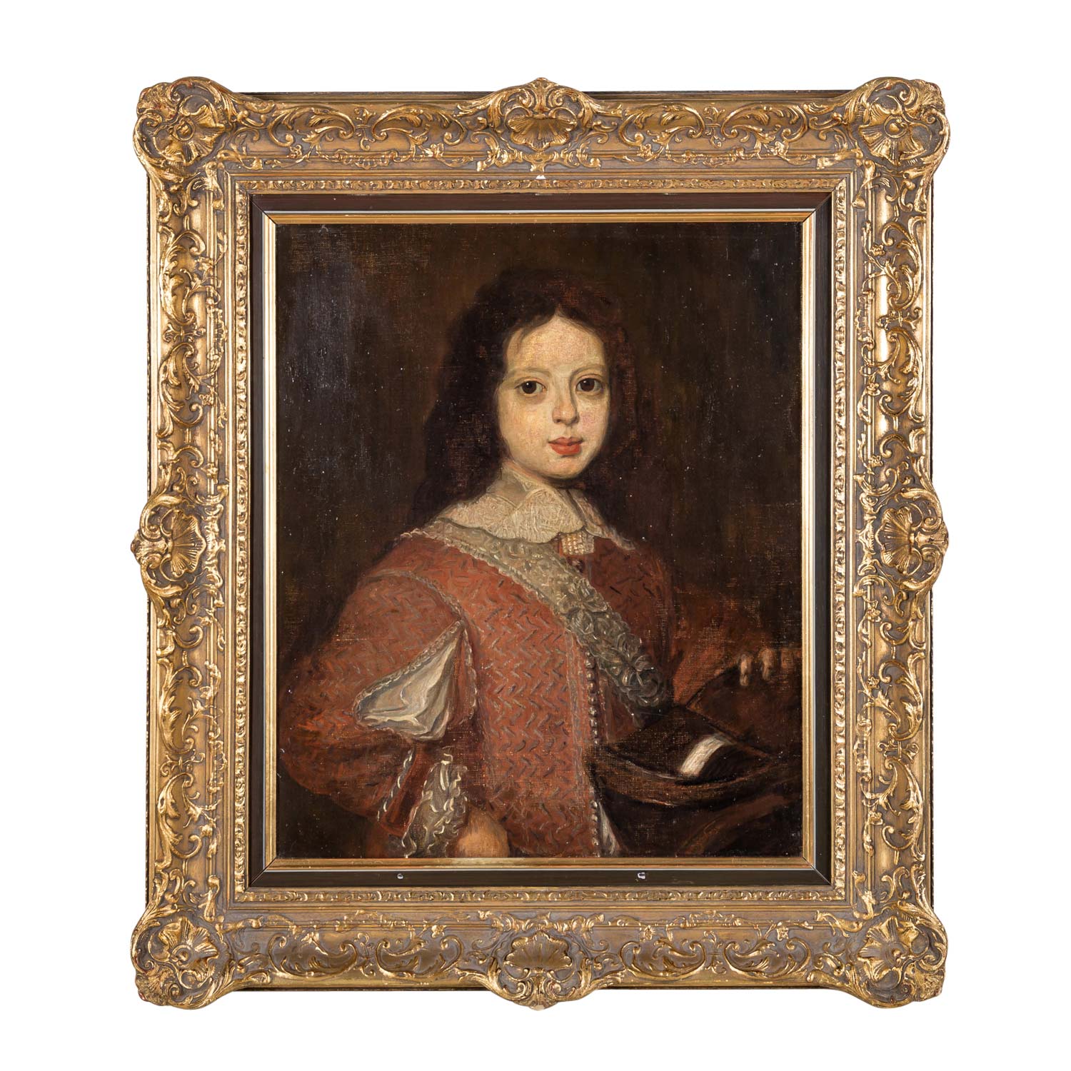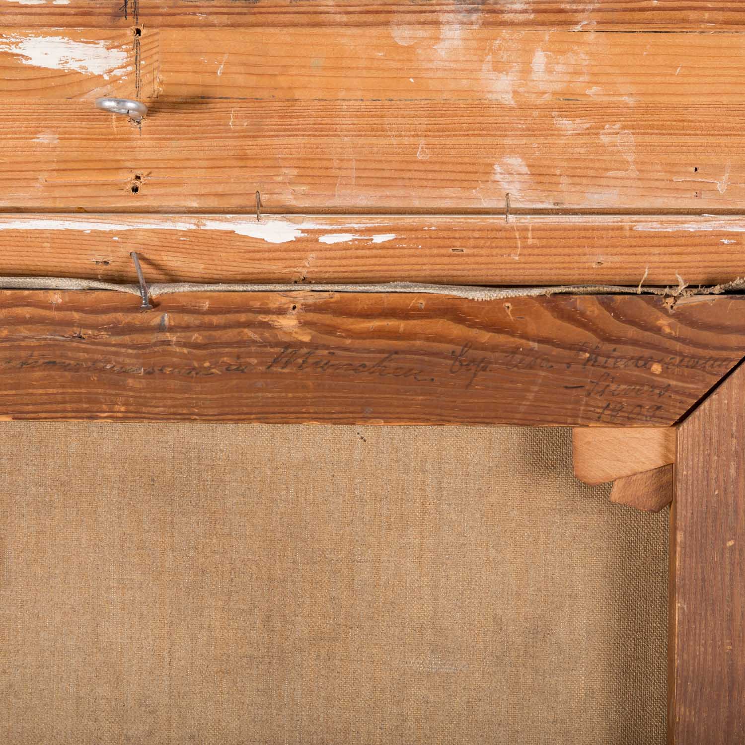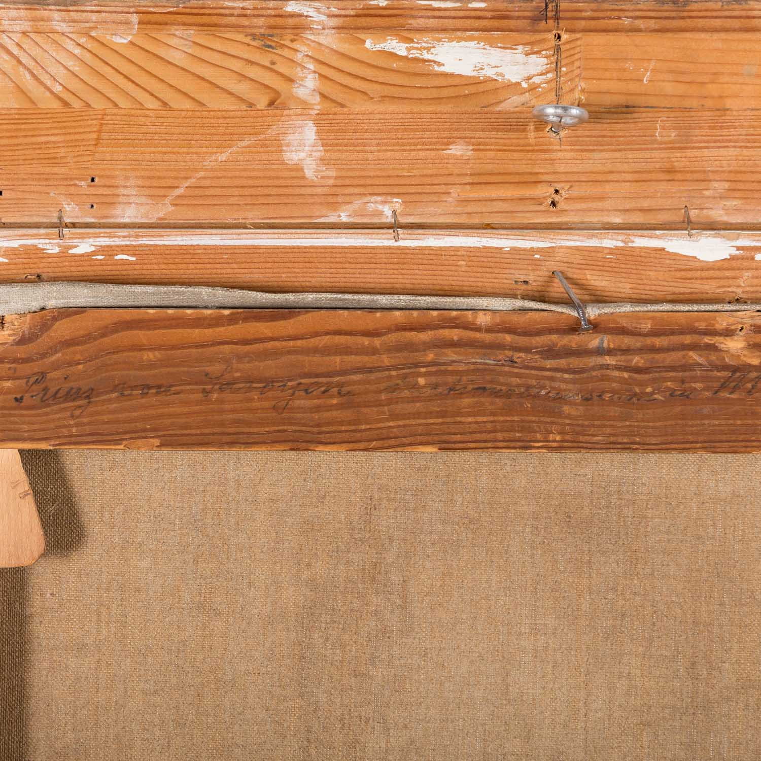 STRIENEMANN-SIEVERT, ELSA (or Sievers, painter 19th/20th century), 'Portrait of a prince', half portrait standing at a desk, oil/canvas, HxW: approx. 60x50 cm (85x75 cm with frame). Signs of age and rubbing, restored, a few small paint chips. With frame. VERSO handwritten title on stretcher, part. indistinctly inscribed and dated 'Prinz von Savoyen ... Munich, Cop. Elsa Strienemann-Sievert, 1909' or Schienemann-Sievers?.