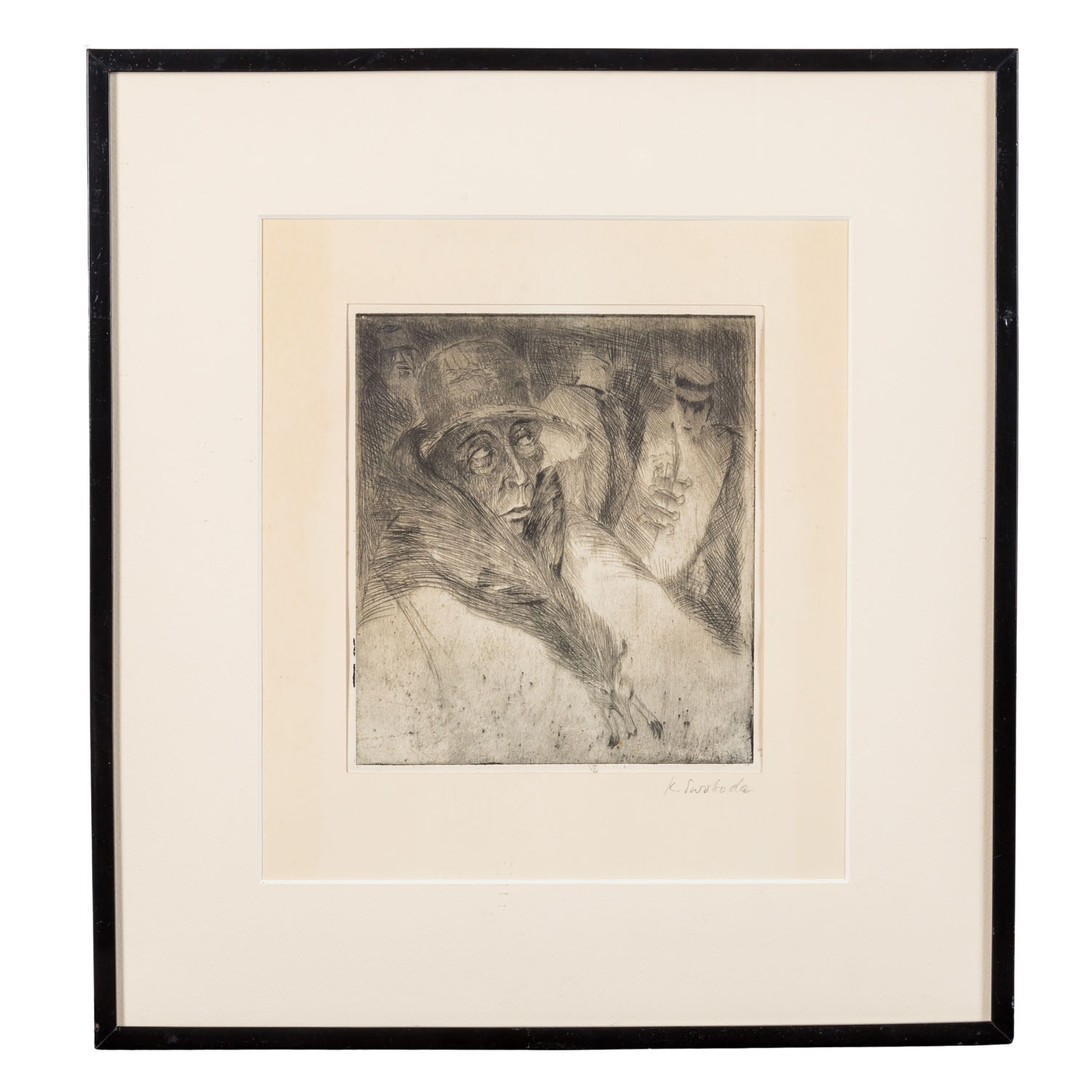 Lithograph, sig. ‘K.Swoboda’, hxw: 17,5/15,5 cm. Frame, HxW: 40/37 cm.