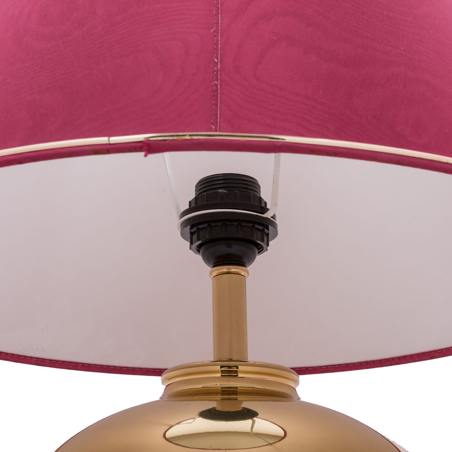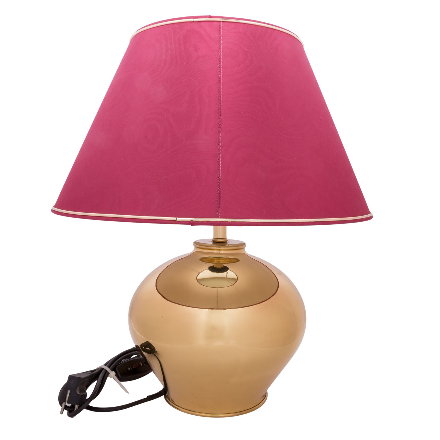 Table lamp. Vase-shaped lamp base with reflective gold finish. Lampshade covered with wine-red, textured fabric, h: 51 cm. Hardly any signs of use.