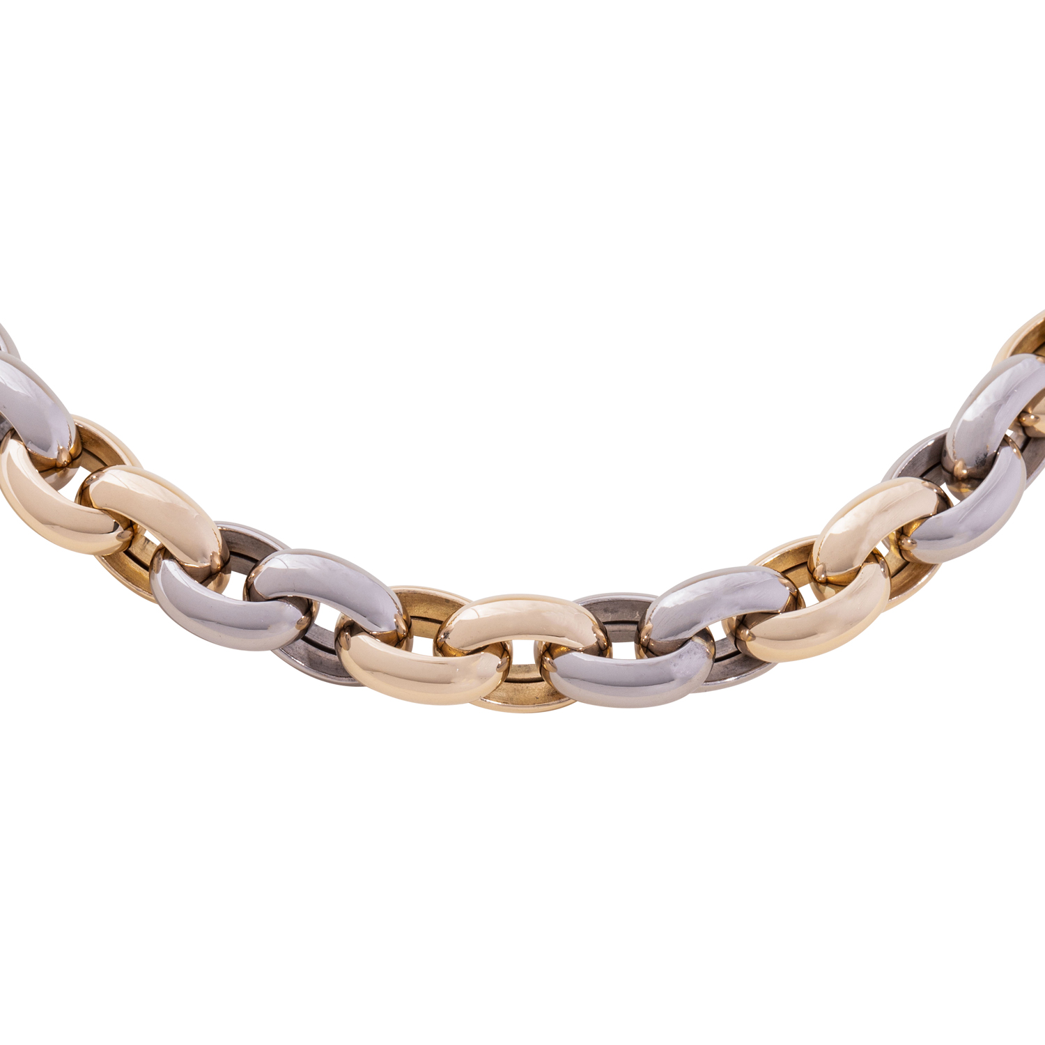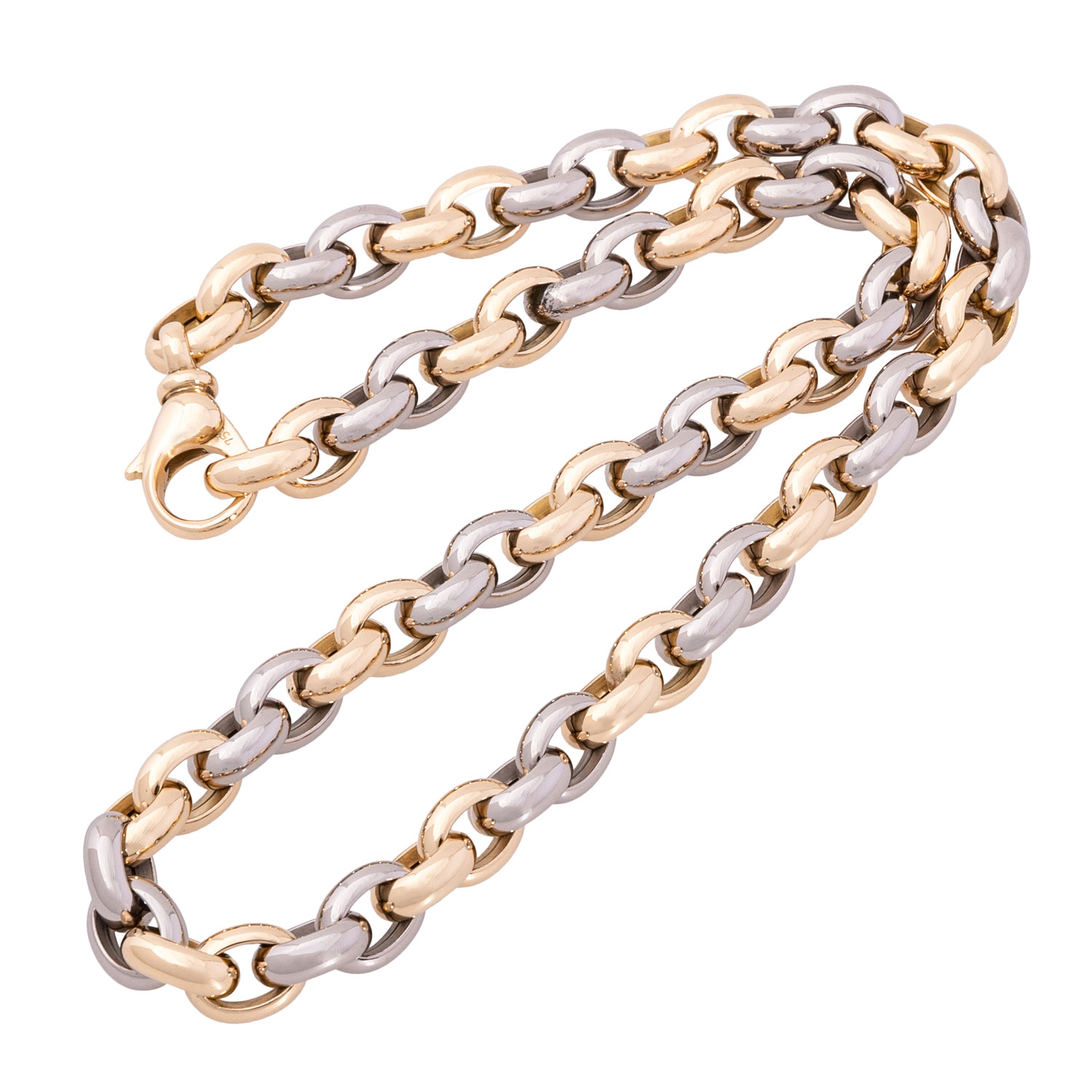 TÄNNLER Necklace, anchor chain, satin finish, yellow gold/white gold 18K, 78 g, L: ca. 45 cm, W: ca. 0,9 mm, with carabiner, 21st century, minor signs of wear, with hallmark.