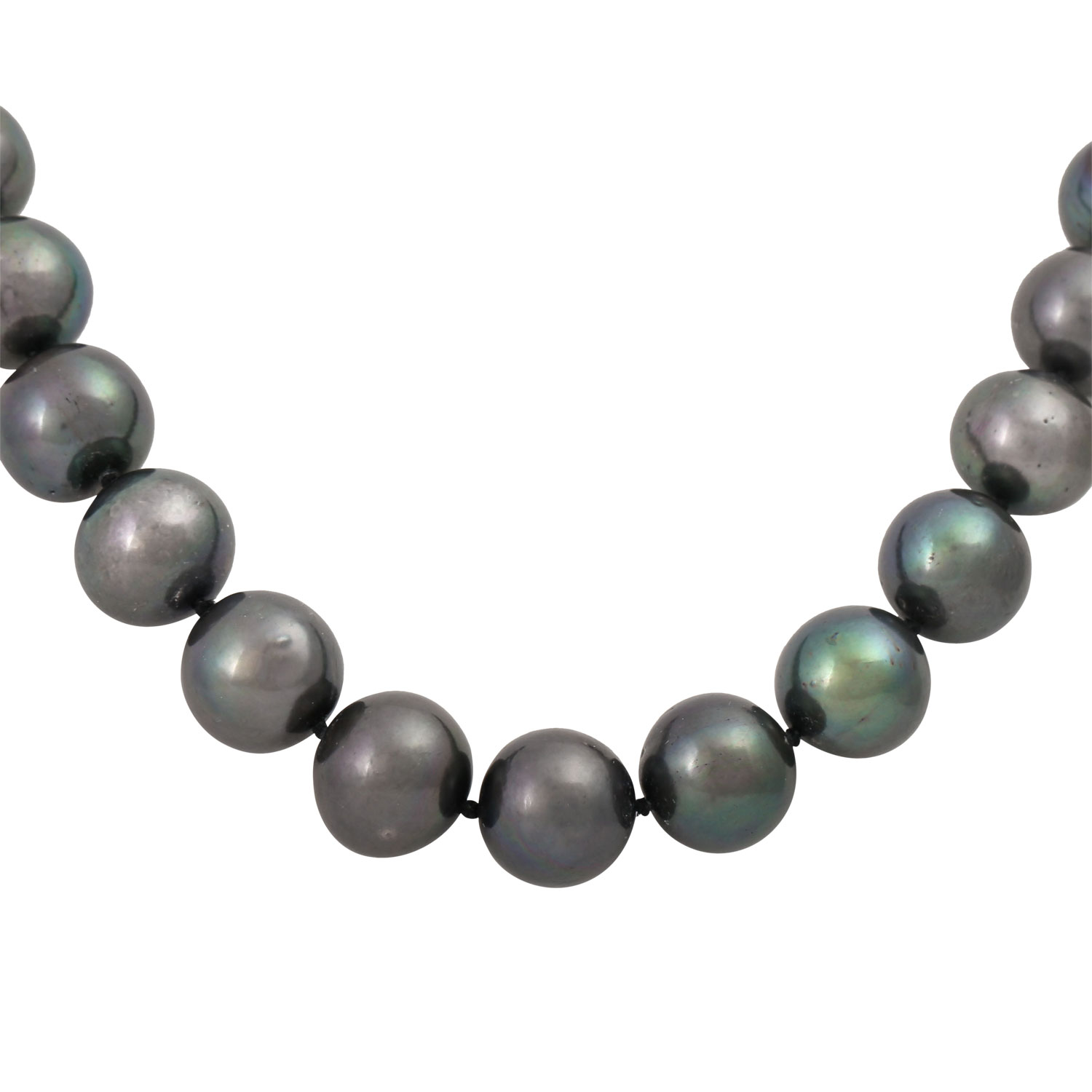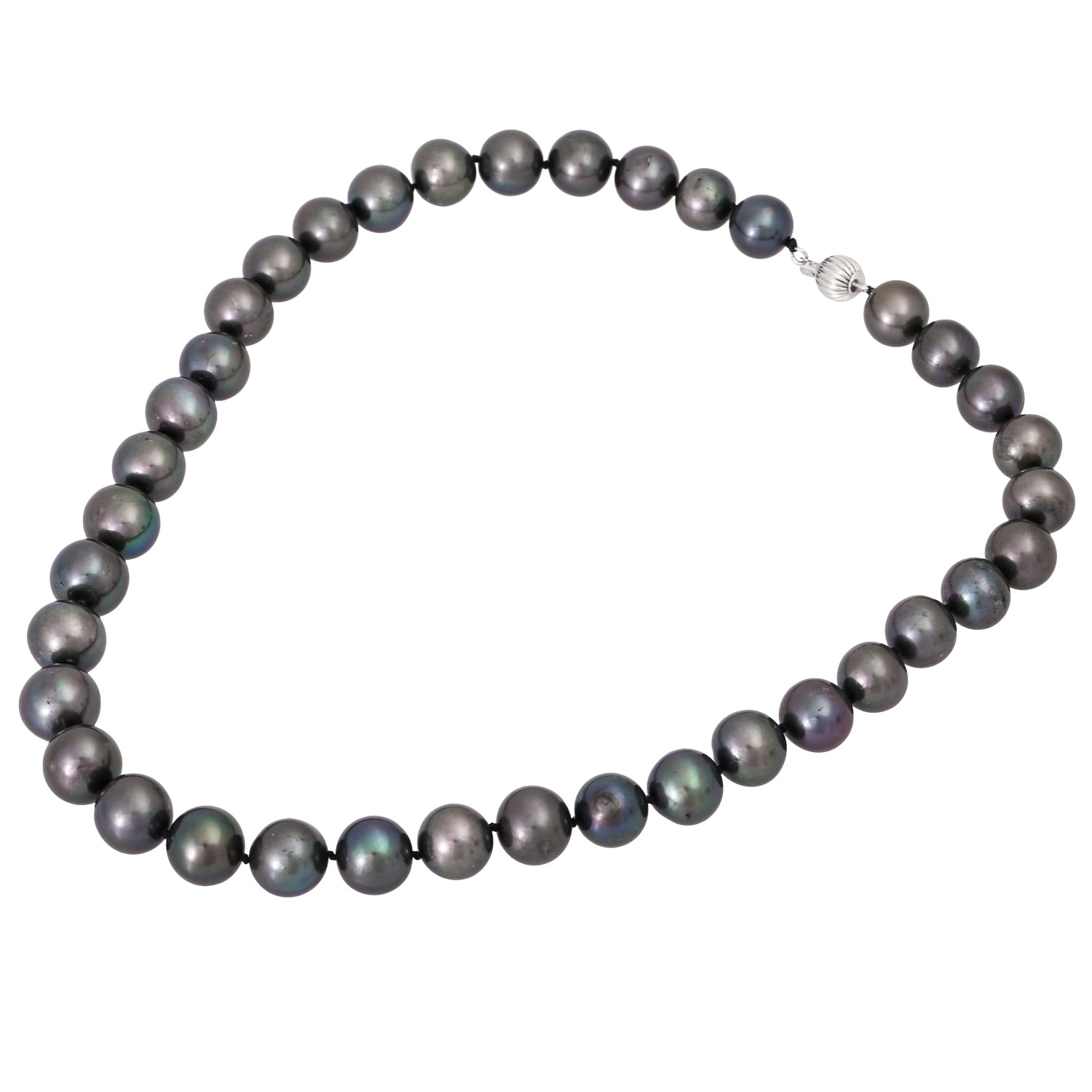Tahitian pearl necklace, with 37 cultured pearls in the size range from 11 to 13mm with natural growth features, clasp WG 14K, 88.6g, L: ca. 48cm, 21st century. good condition.