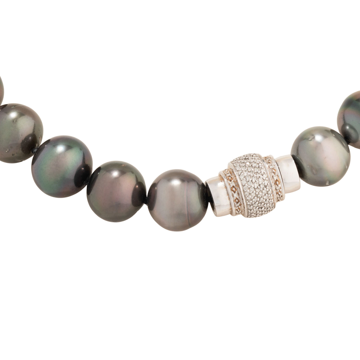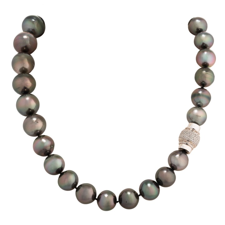 Tahitian pearl necklace with brilliant-cut diamond clasp,
