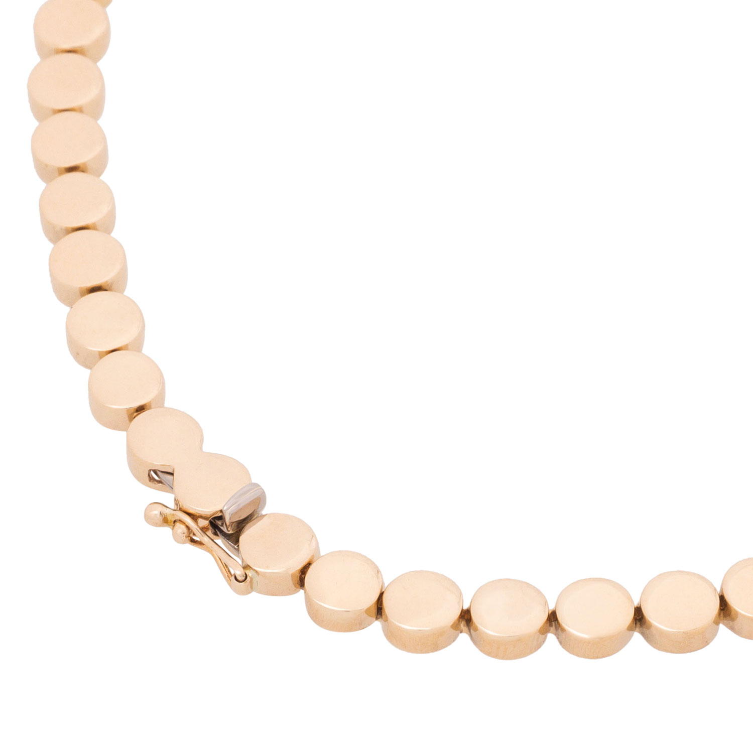 Tennis necklace with 19 brilliant-cut diamonds totall. ca. 1.1 ct, ca. STW (I-J)/VS-SI, 14K yellow gold, 39.4 g, L: ca. 45 cm, mid 20th century, minor signs of wear, box clasp with saftey catch.