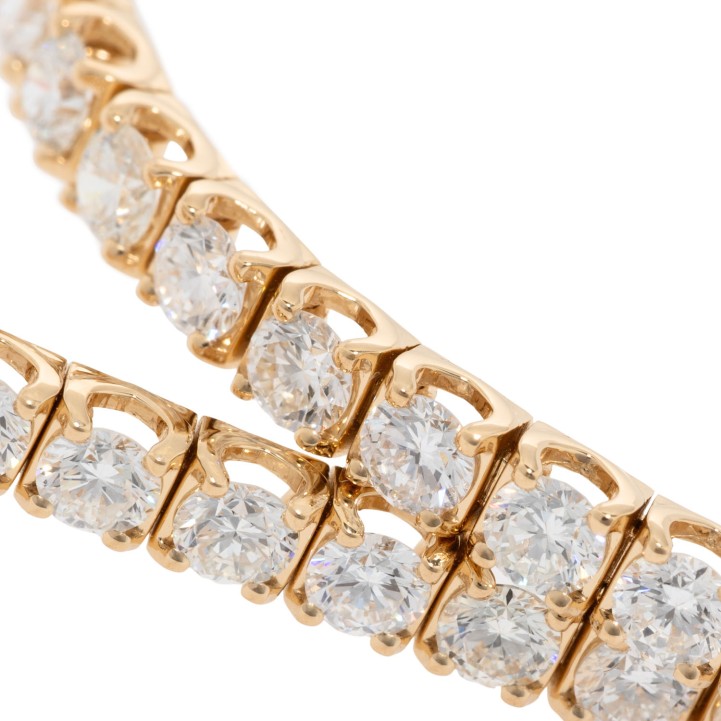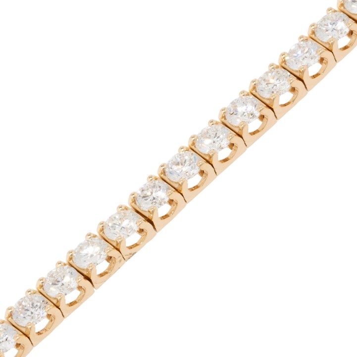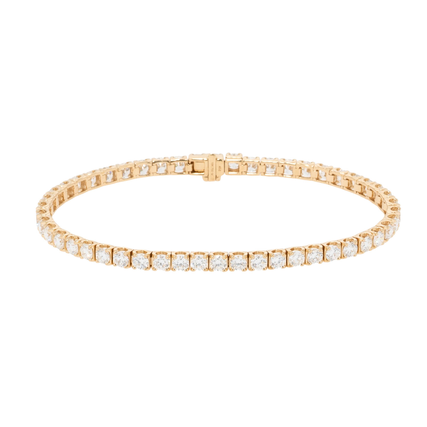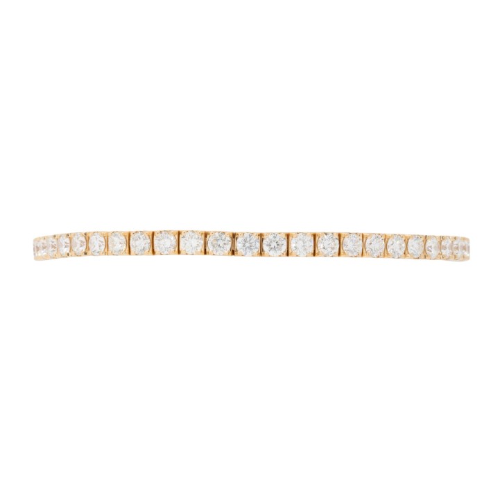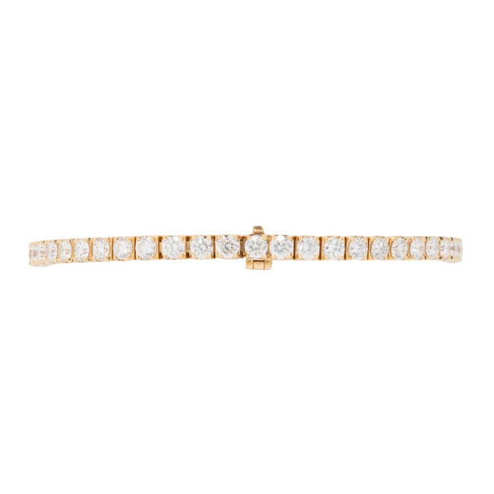 Tennis bracelet with 50 brilliant-cut diamonds totalling 5.98 ct, good colour and clarity, YG 18 K, 10.8 g, L: 18 cm, 21st century. Mint condition.