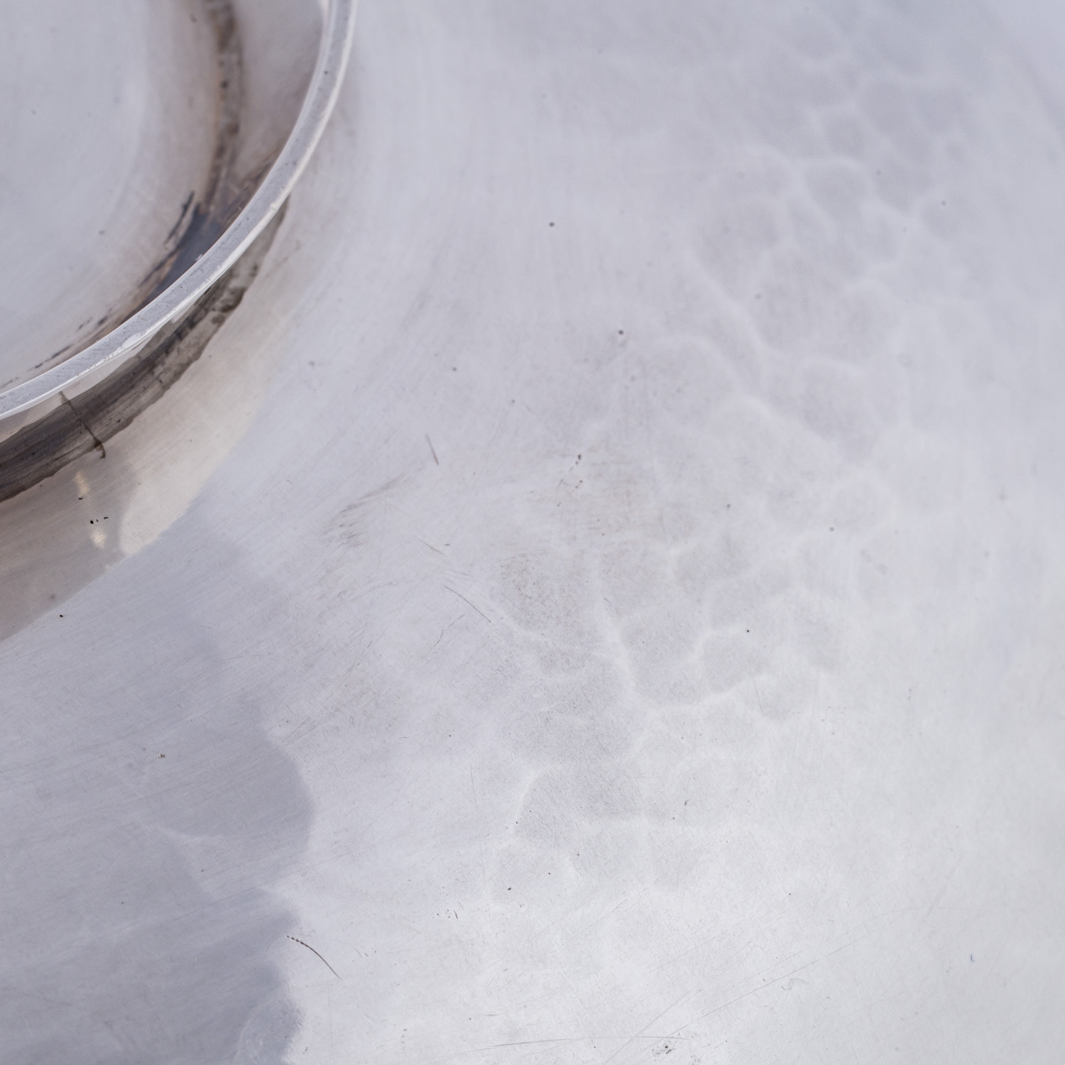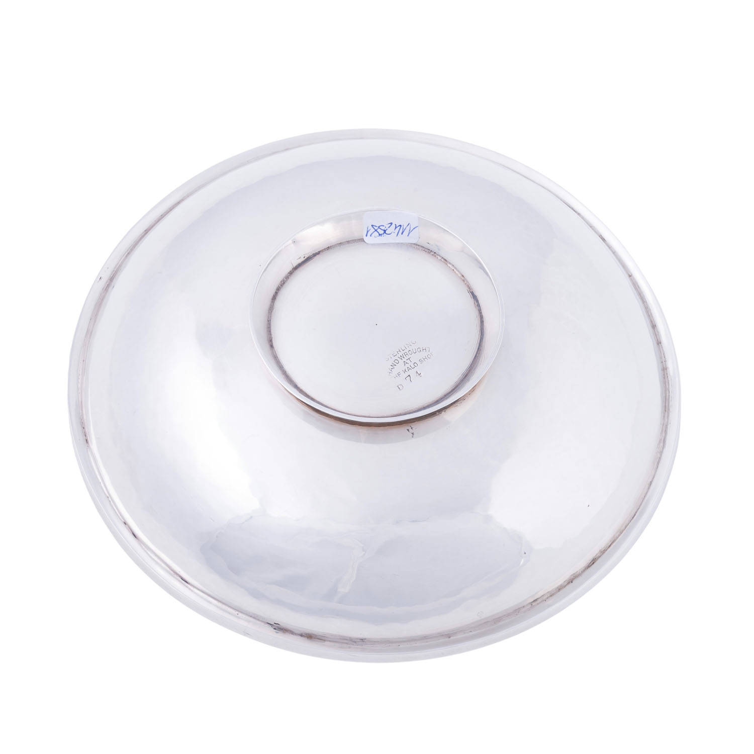 THE KALO SHOP, Chicago, 4 foot bowls, 925 silver, before 1970. Hand wrought round bowls with flared lip rim on a low standing ring, no. 74. THE KALO SHOP was founded in 1900 by Clara Pauline Barck (1868-1965). The company was the leading silver manufacturer of the Arts and Crafts movement in Chicago and existed until 1970. D. approx. 14.5 cm, total weight approx. 842 g. Signs of use and age.
