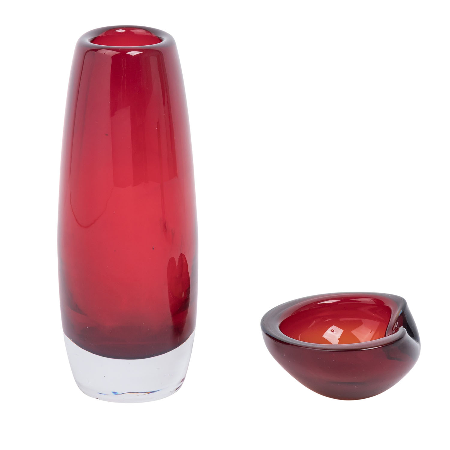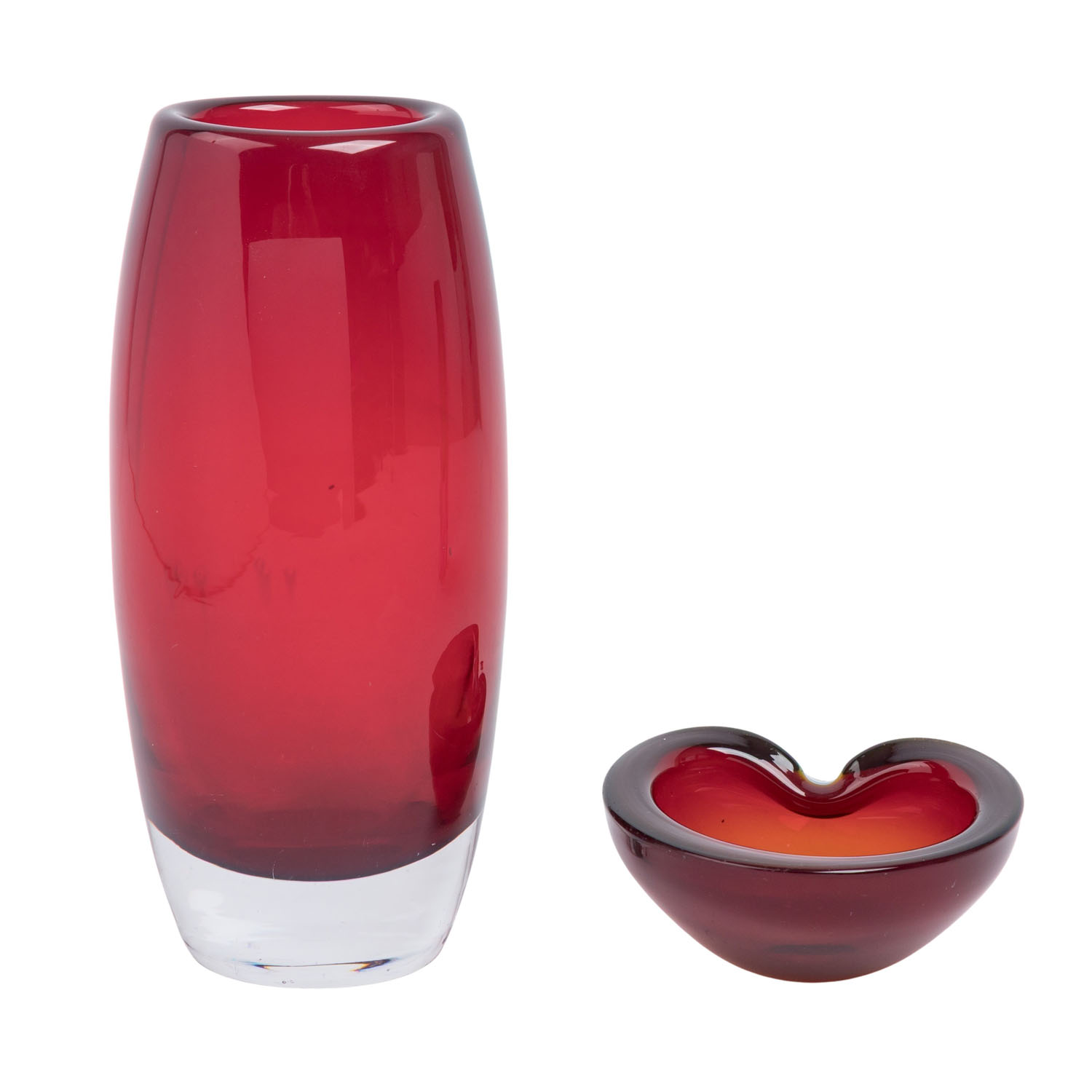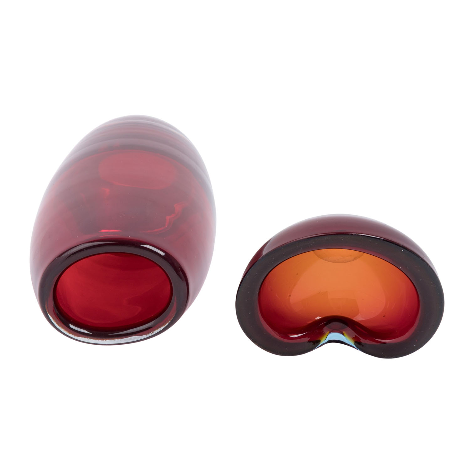 THREE GLASS OBJECTS, 3rd quarter 20th century