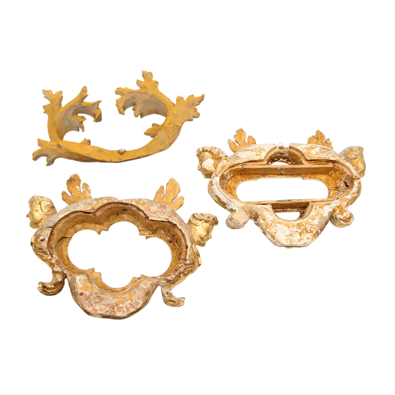 19th century, wood, openwork carved, gold painted, width approx. 45 cm. damaged