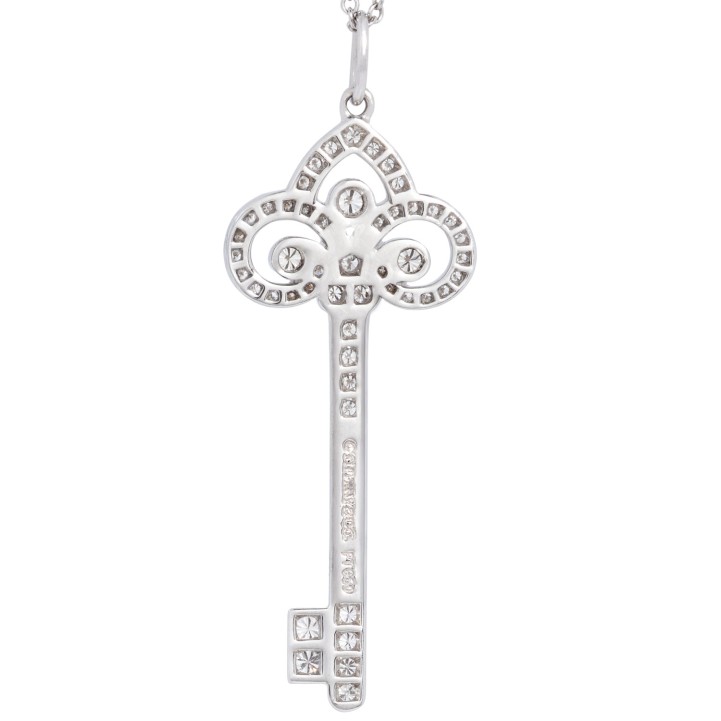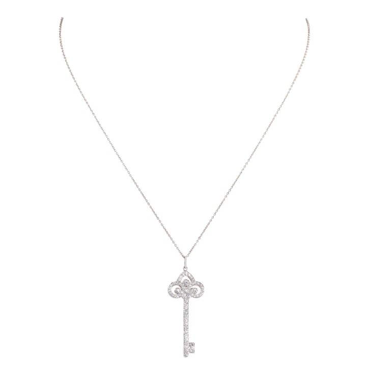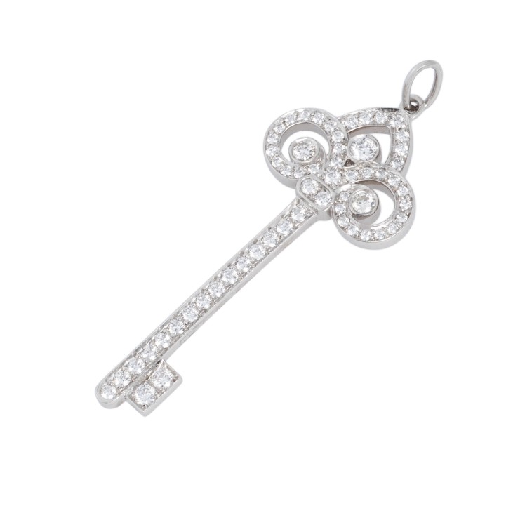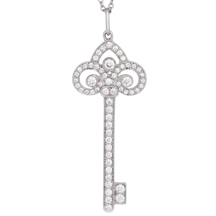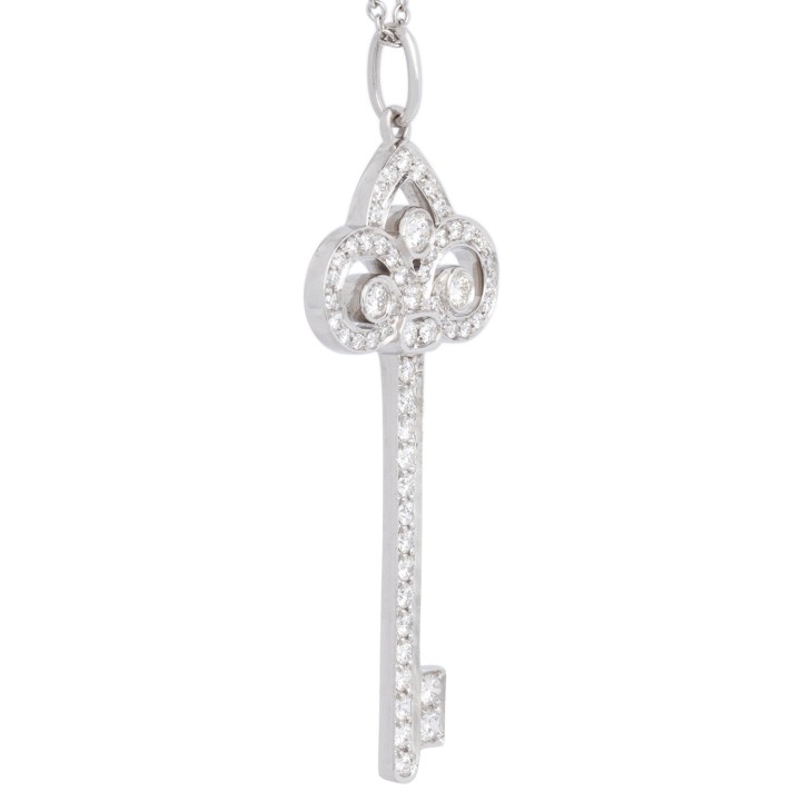 TIFFANY & CO. pendant 'Fleur de Lis', platinum with brilliant-cut diamonds, including Tiffany platinum necklace (L: ca. 46 cm), pendant L: ca. 4 cm, total weight 6 g, current NP: ca. 8,900 €, 21st century, minor signs of wear, incl. Tiffany case.