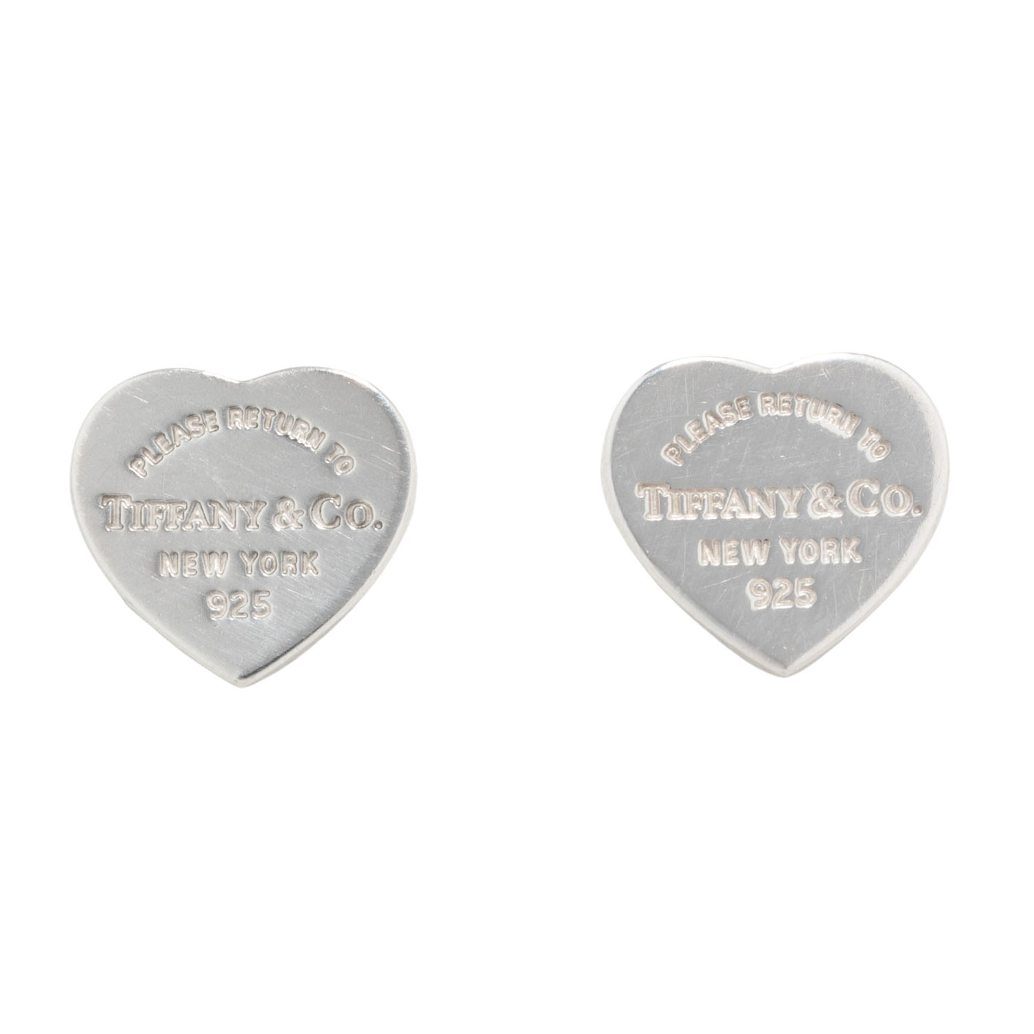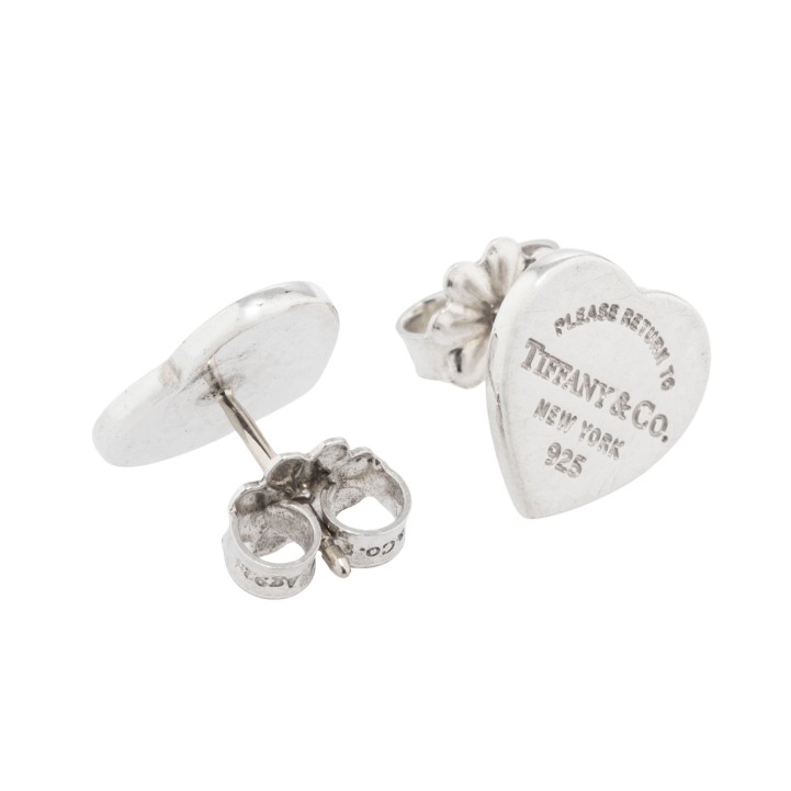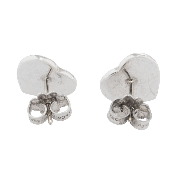 TIFFANY & CO. ‘Return to Tiffany’ Pair of heart-shaped stud earrings, sterling silver, 2.1 g, L x W 9.5 x 10 mm, original price € 950, 21st century, good condition, Tiffany velvet pouch and jewellery box included.