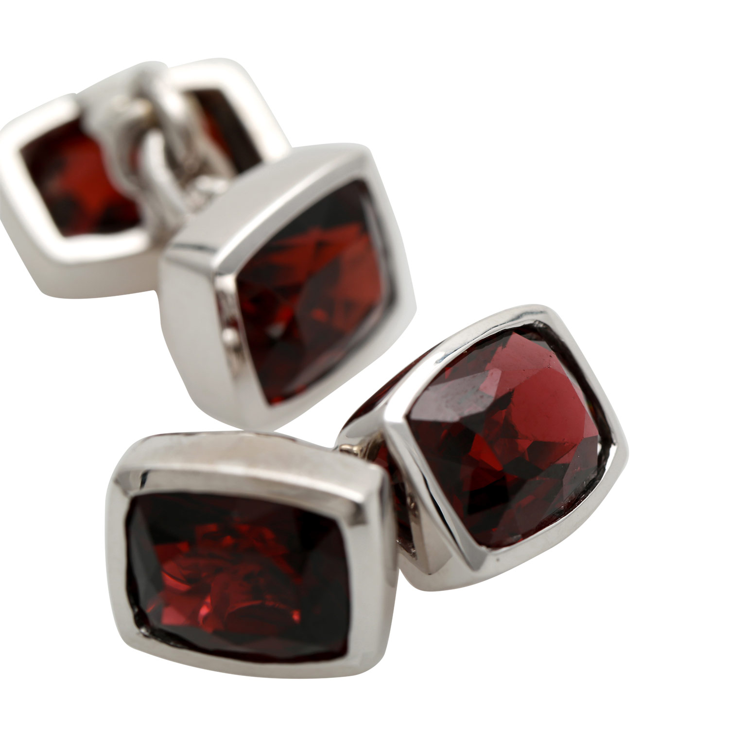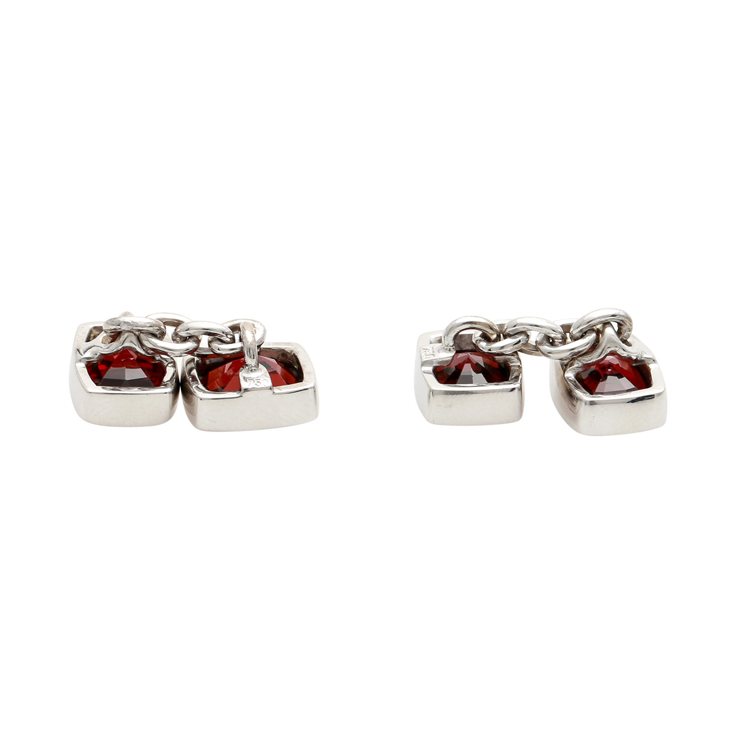 Timeless elegant cuff links set with garnets, 18K WG 14.2 g, 21th century, mint condition, high quality goldsmith´s work.