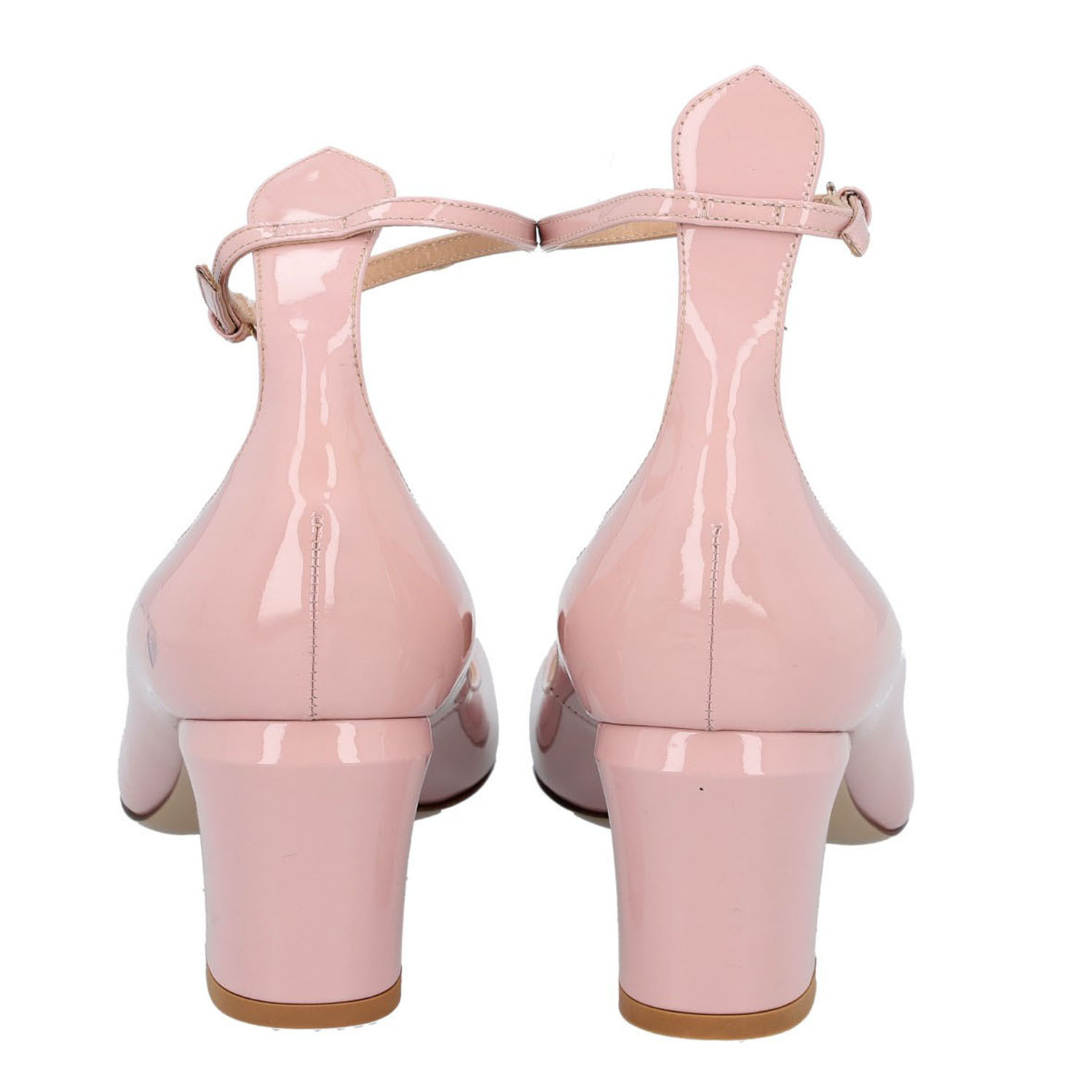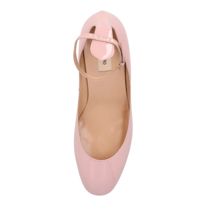 VALENTINO Pumps, size 40,5. Pink patent leather with ankle straps and 6.5 cm heel. Signs of wear present.