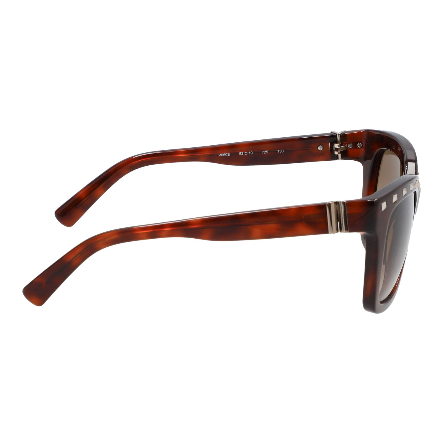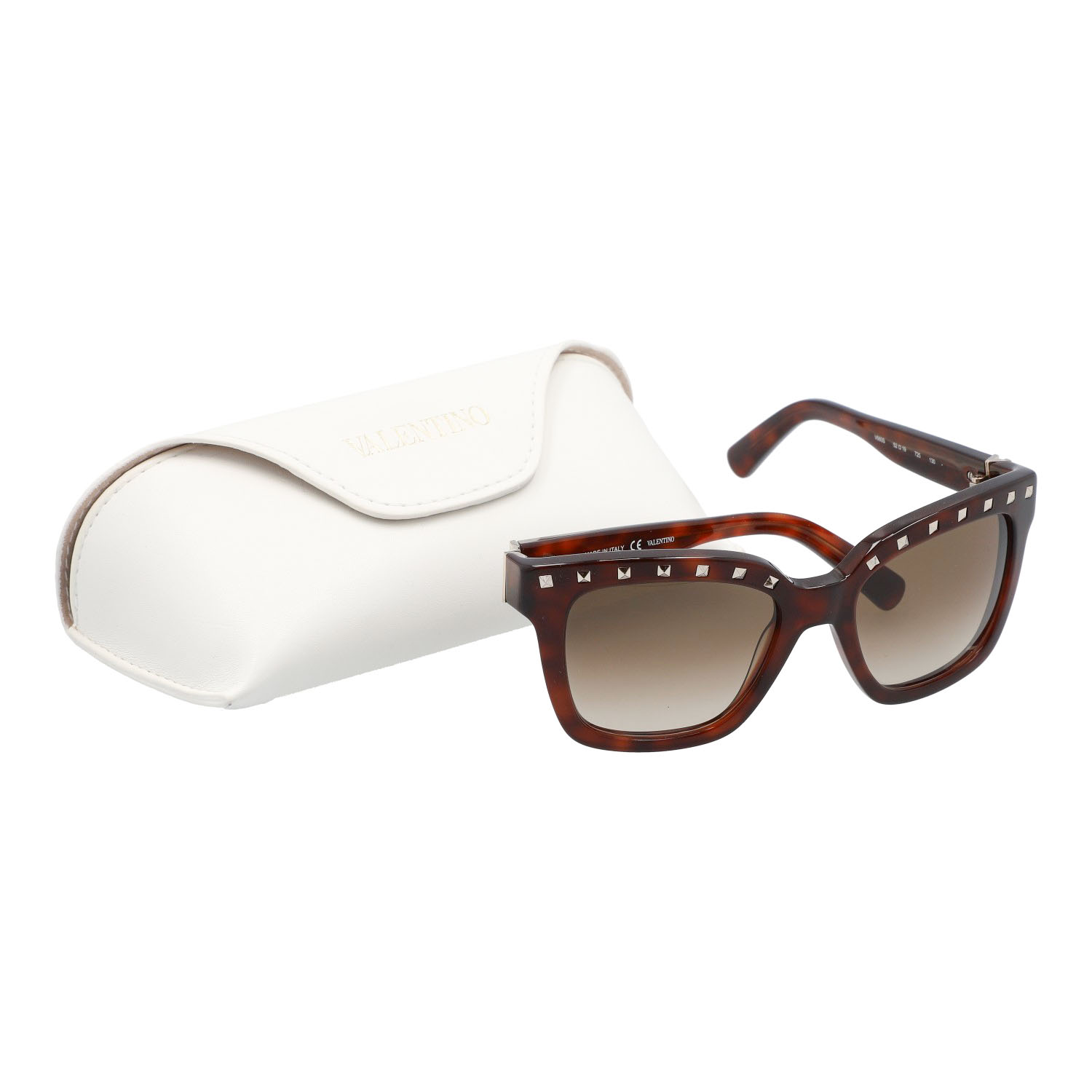 VALENTINO sunglasses 'V660S'. Marbled frame in brown with gold accents, tinted lenses and Rockstud decoration. Case included. Signs of wear present.