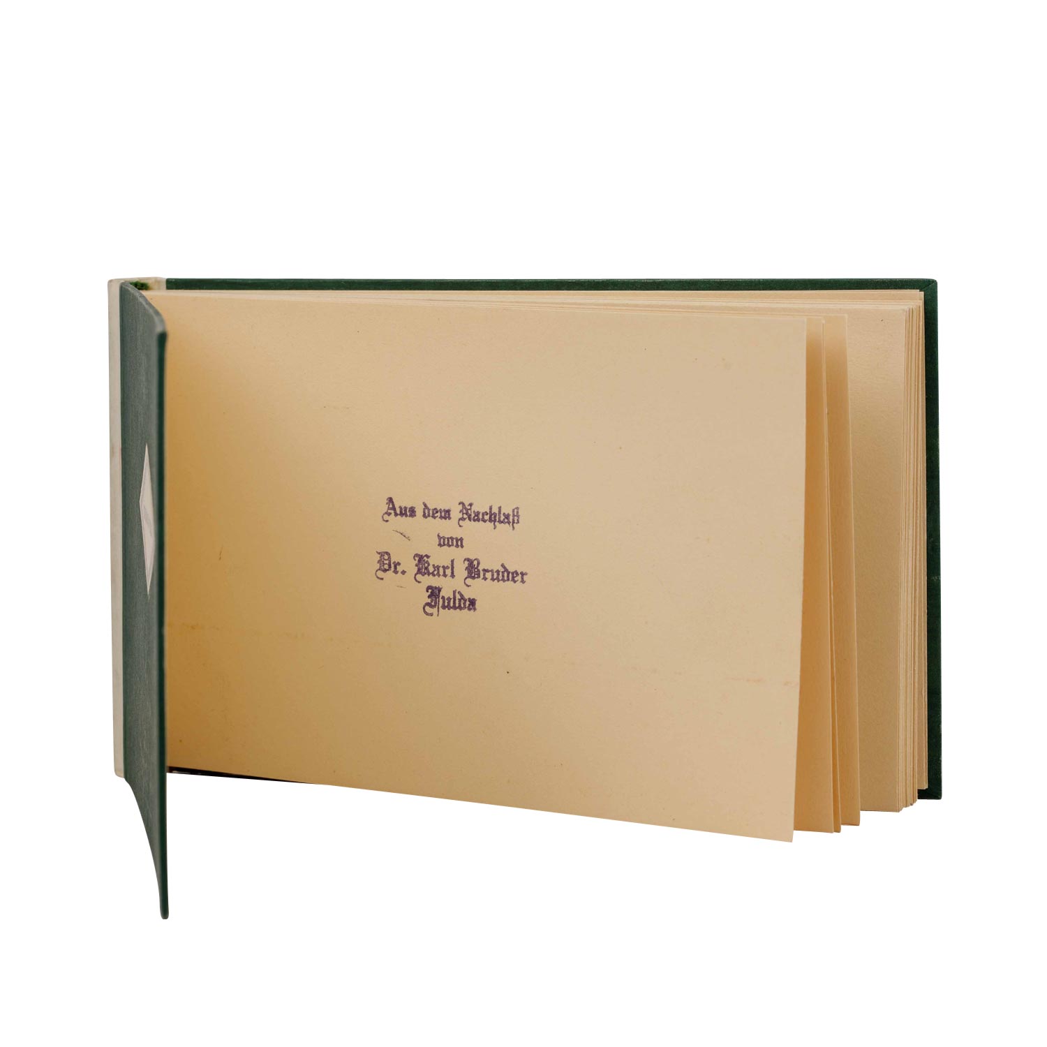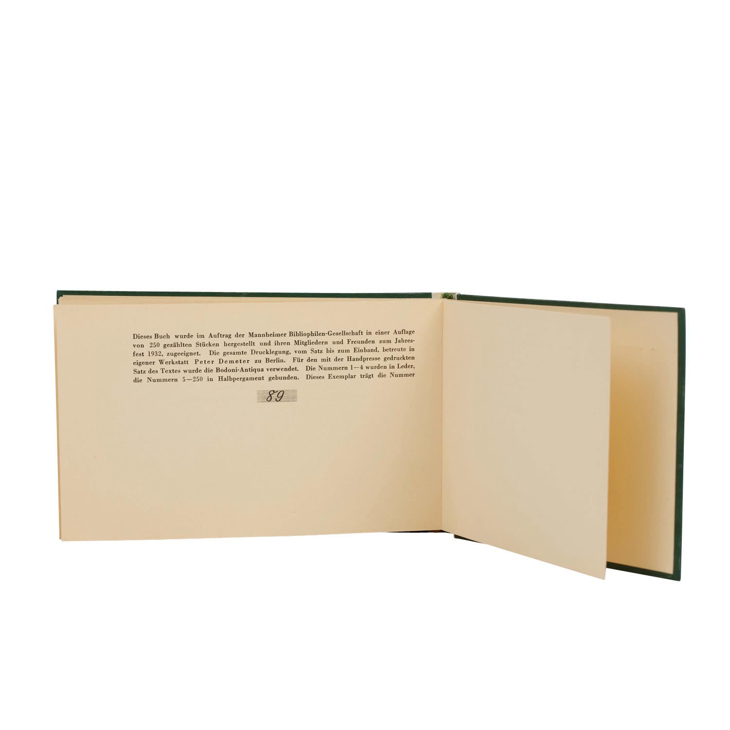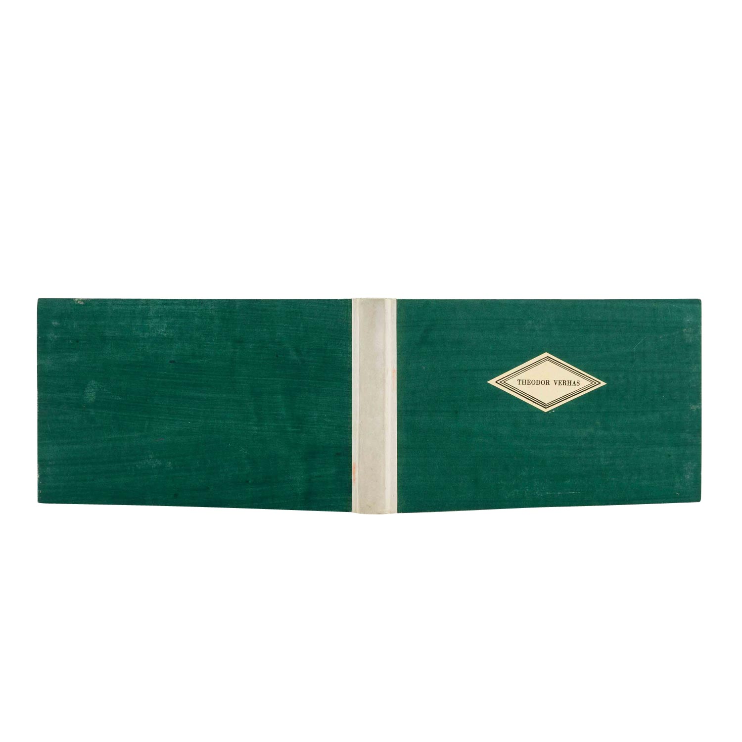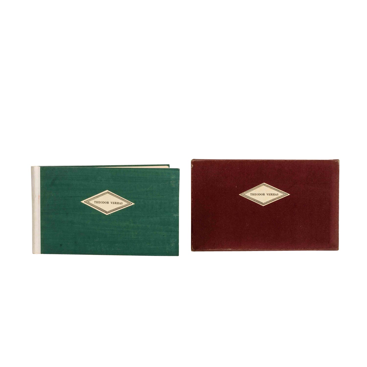 VERHAS, THEODOR, Thirty hand drawings from a travel sketchbook by the painter, Mannheimer Bibliophilen-Gesellschaft 1932, 30 pages ill., num. 89/250, hardcover bound in half parchment in a slipcase. Signs of age, book block inside part. slightly damaged.
