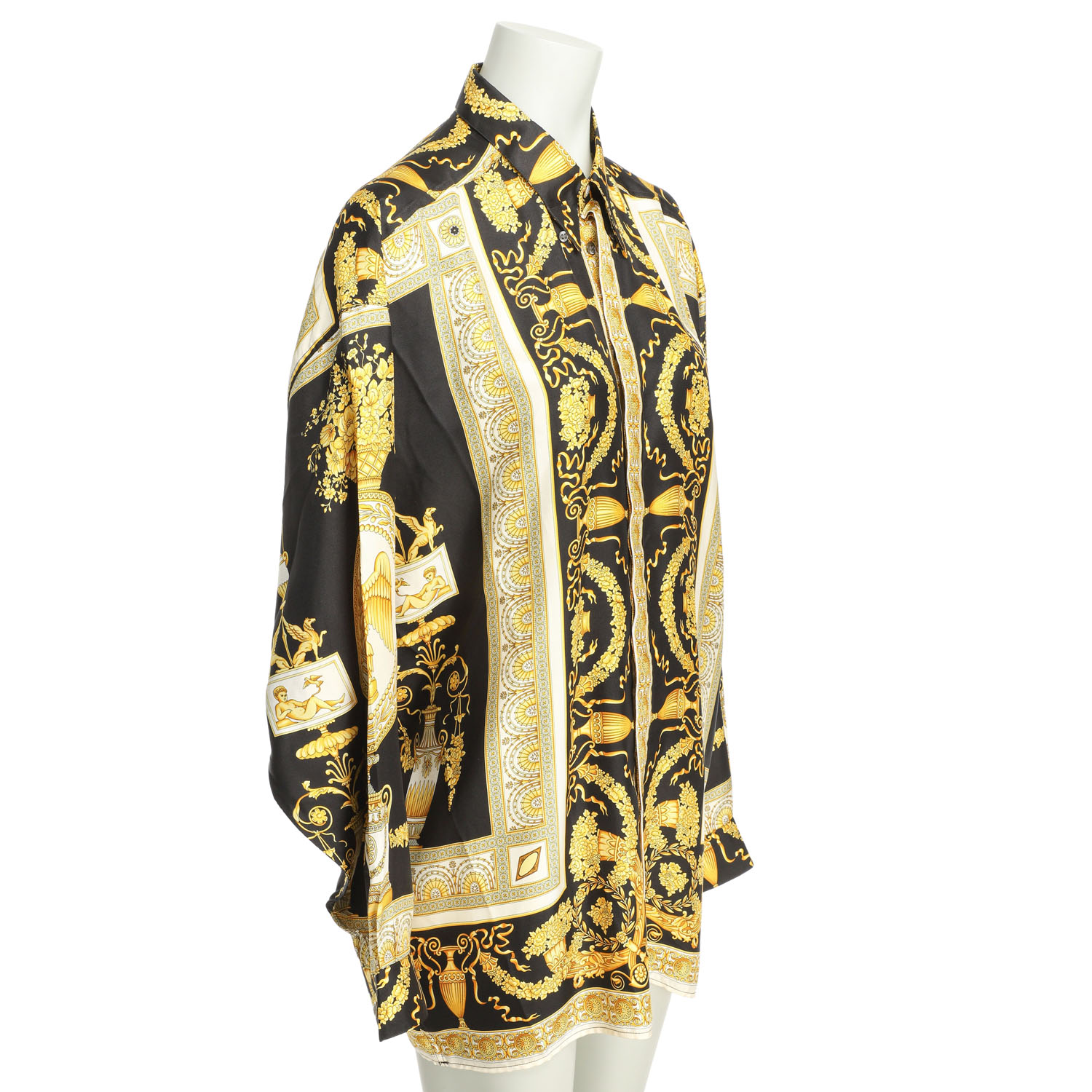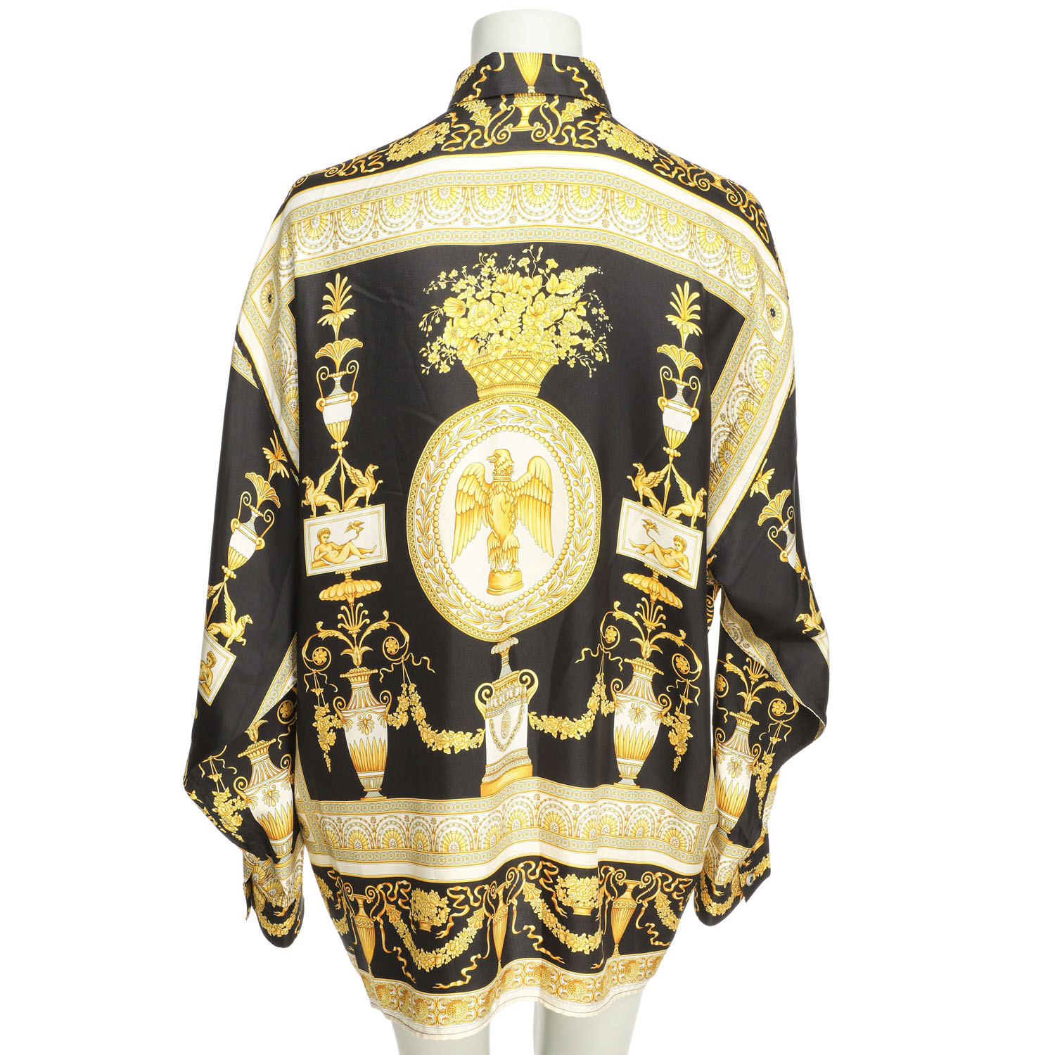 VERSACE CLASSIC V2 shirt, size L. Collector's item. Made of 100% silk in black/gold colours with Wild Signature print and eagle detail on the back. In very good condition.