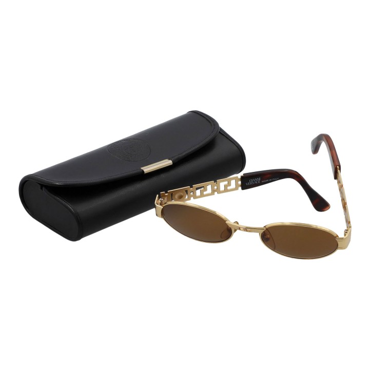 GIANNI VERSACE VINTAGE sunglasses 'MOD.S43'. Gold-coloured frame with label-typical decoration and tinted lenses. Case included. Signs of wear present.
