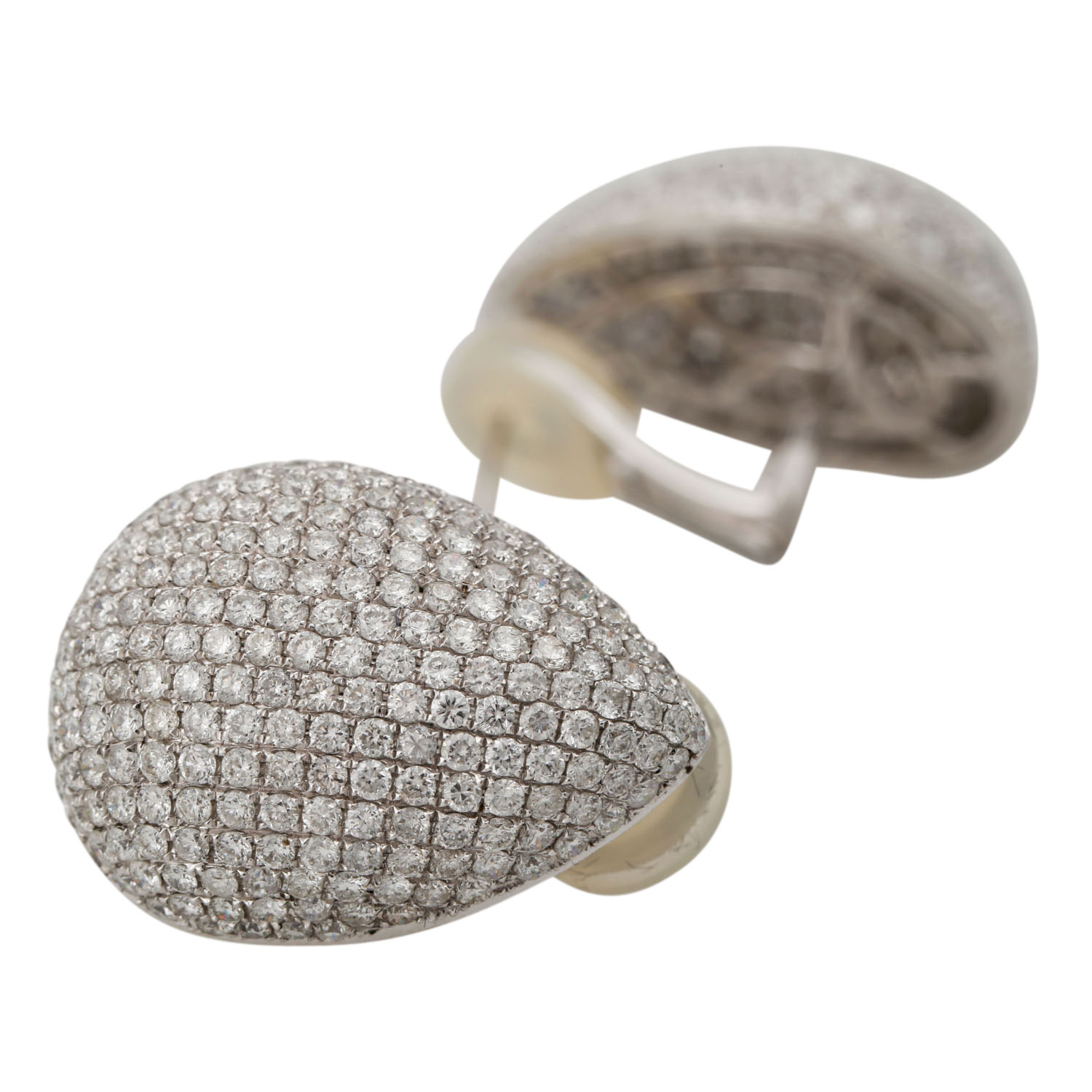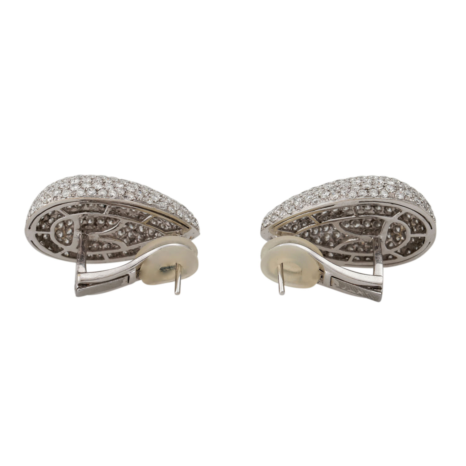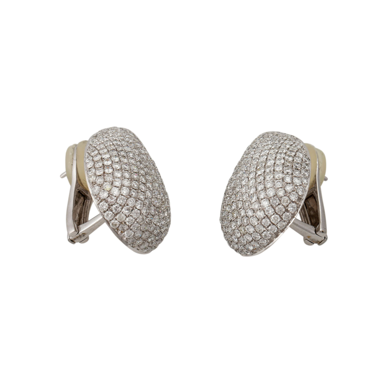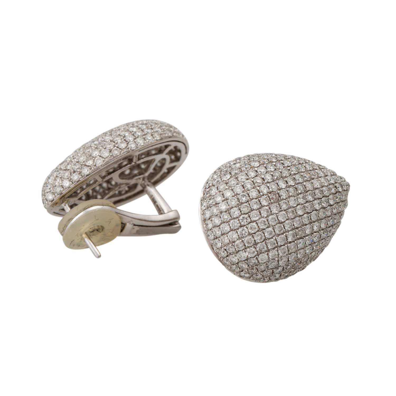 Very fine ear jewelry. Set with 452 brilliant-cut diam. totaling ca. 4.87 cts. TW-W/VSI-SI.