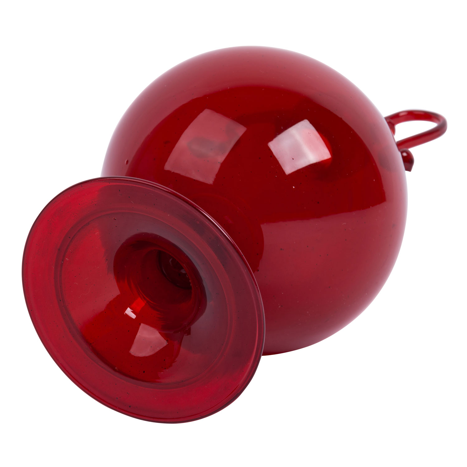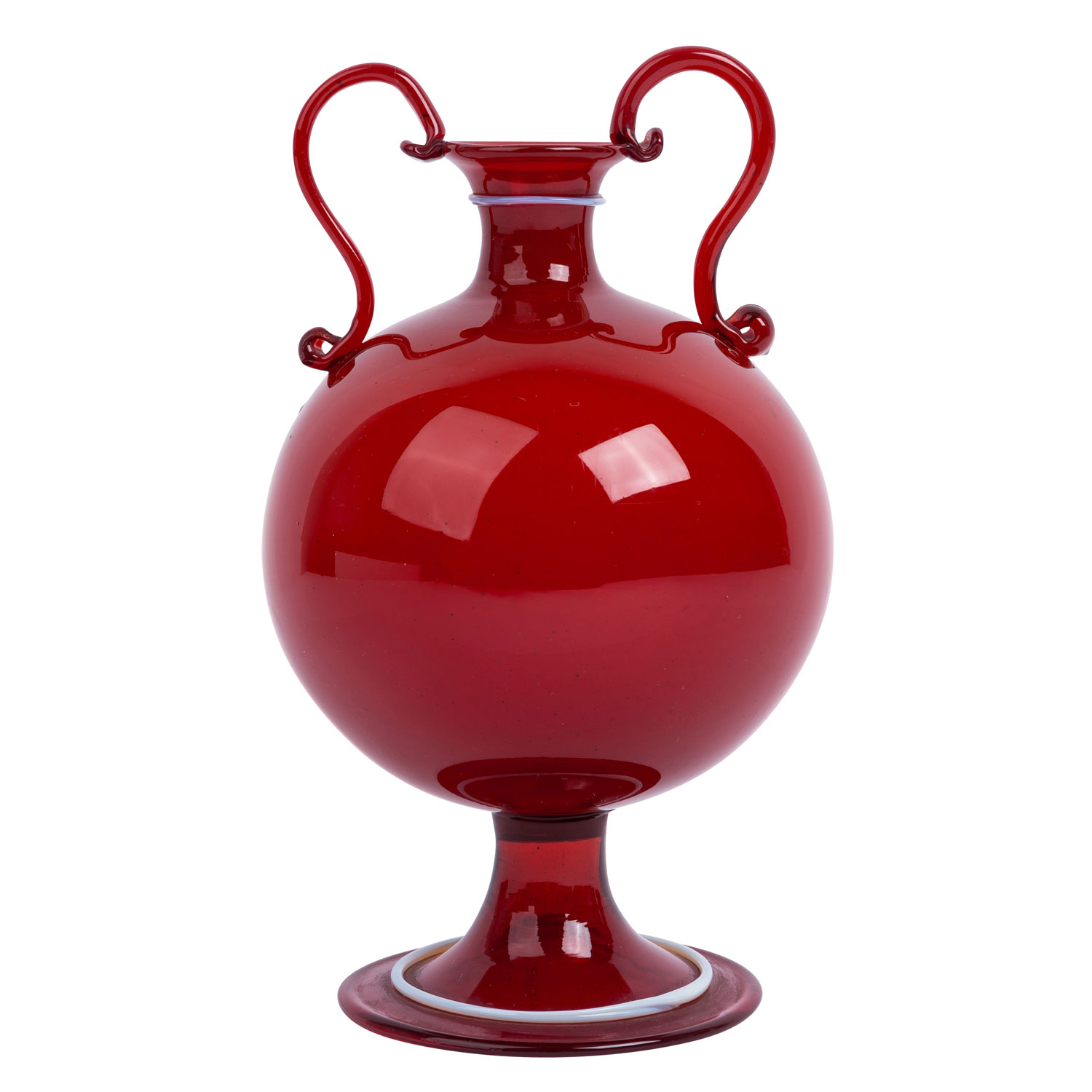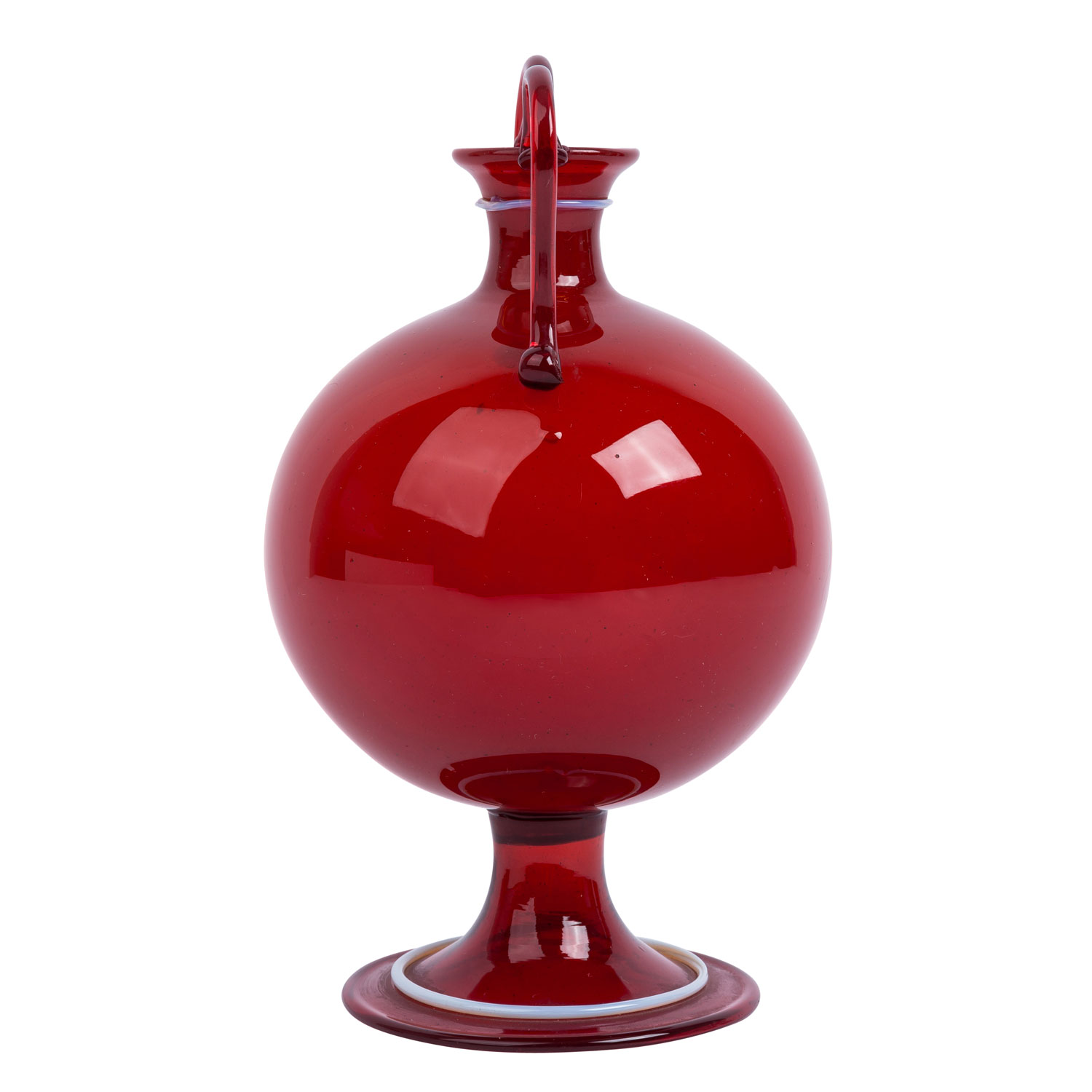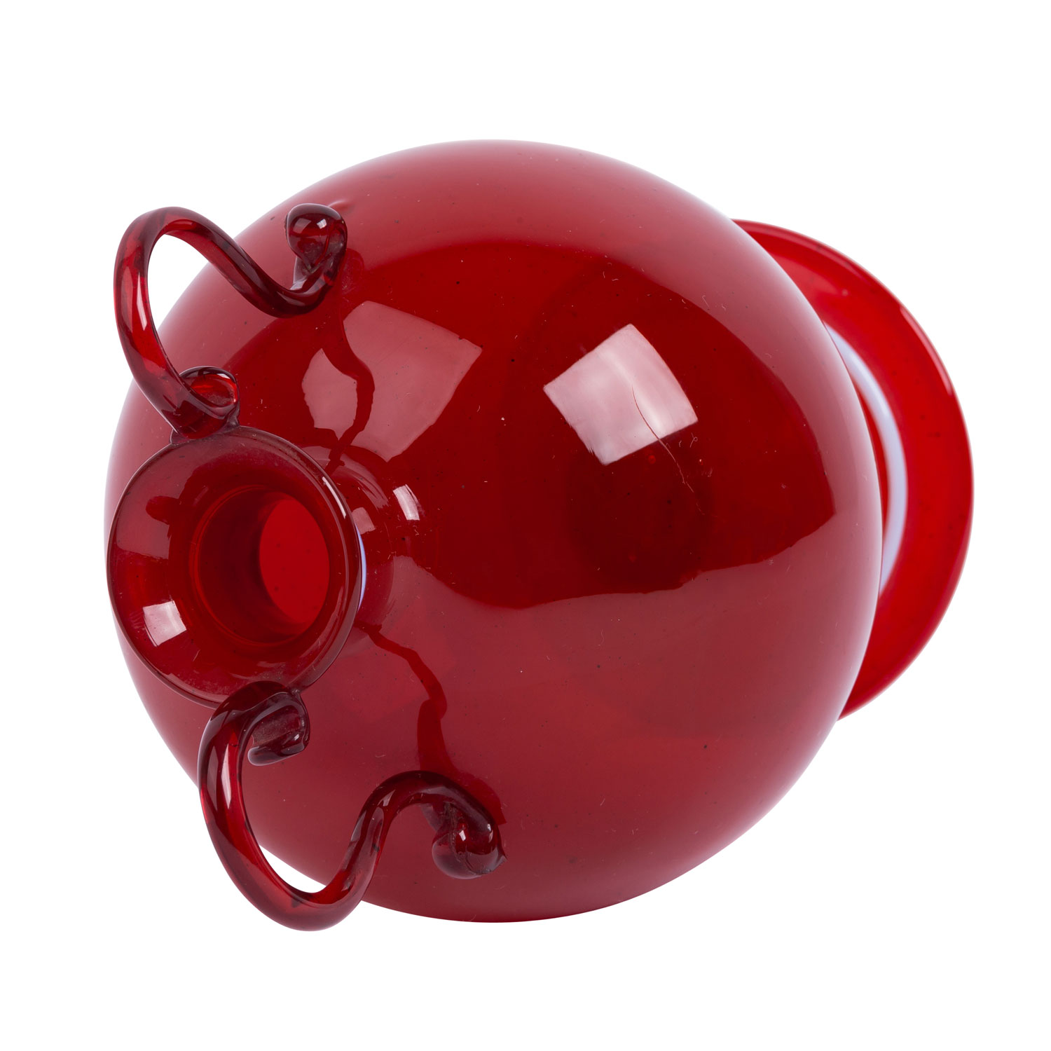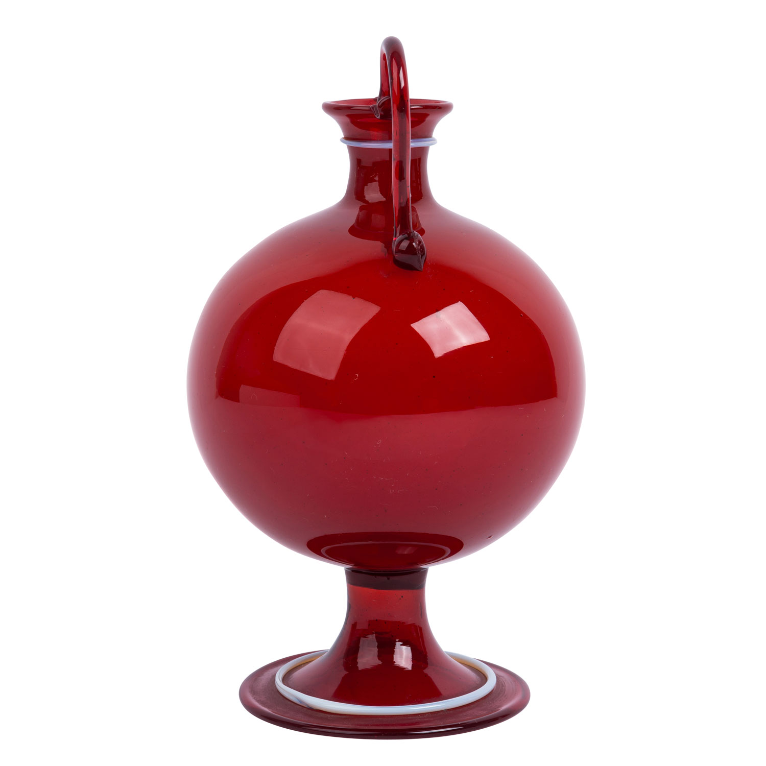 1920s, Murano glass, transparent red glass, decorated with thread, h: 20 cm. Unmarked.