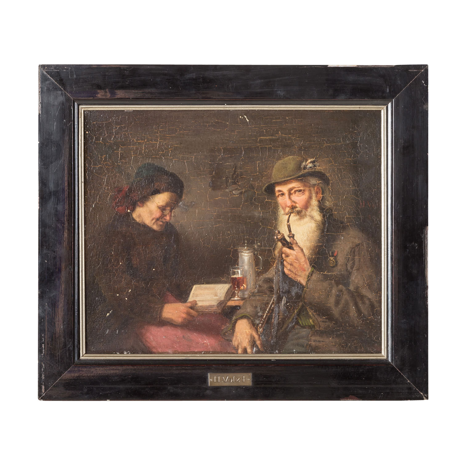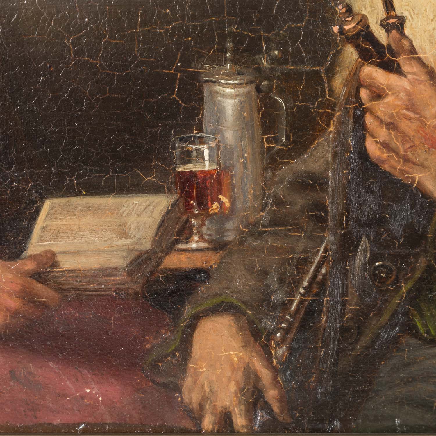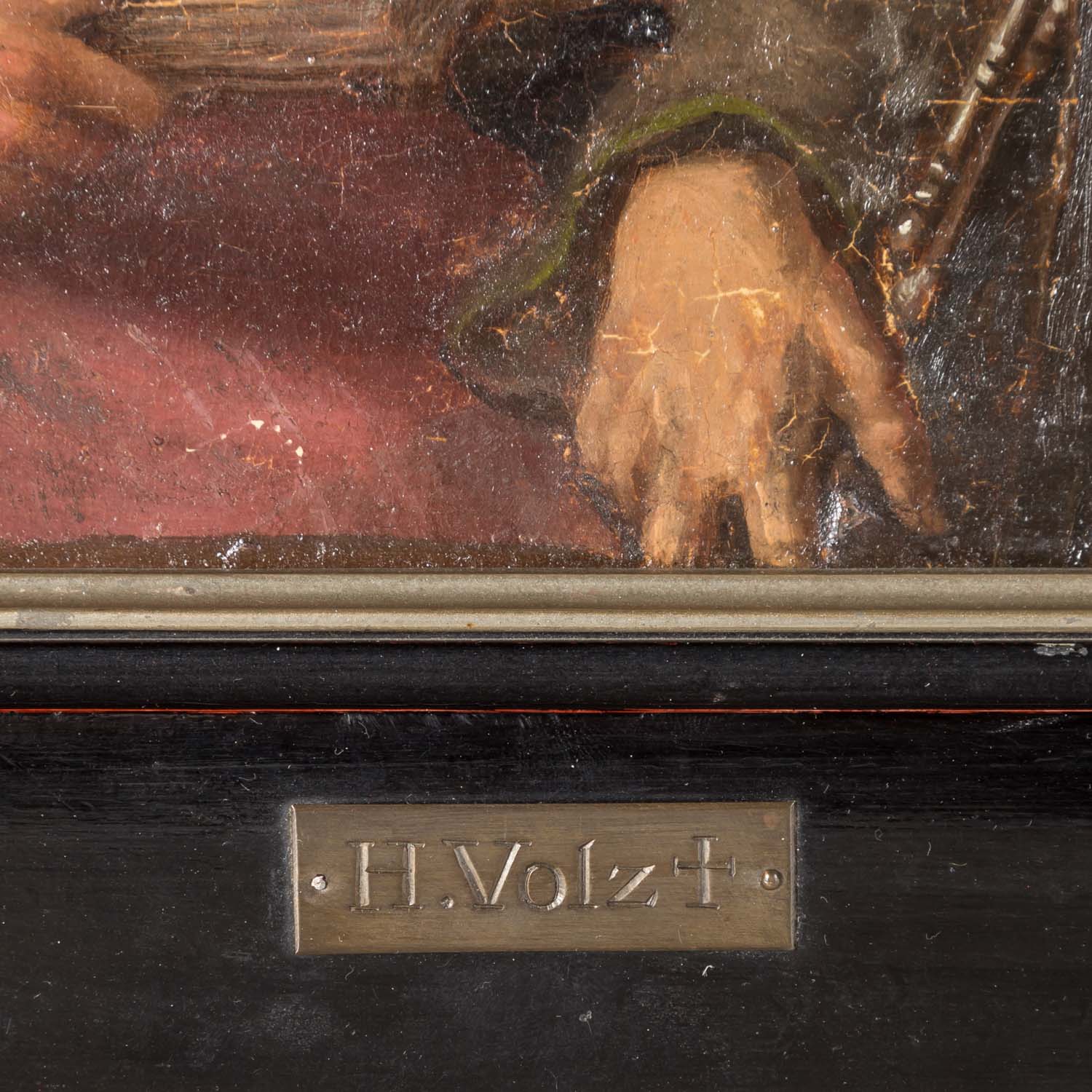 VOLZ, HERMANN (1814-1894) 'Parlour Scene'.Oil on cardboard, signed, HxW: 28/33 cm. Signs of age, crazed. Frame, HxW: 34/40 cm.