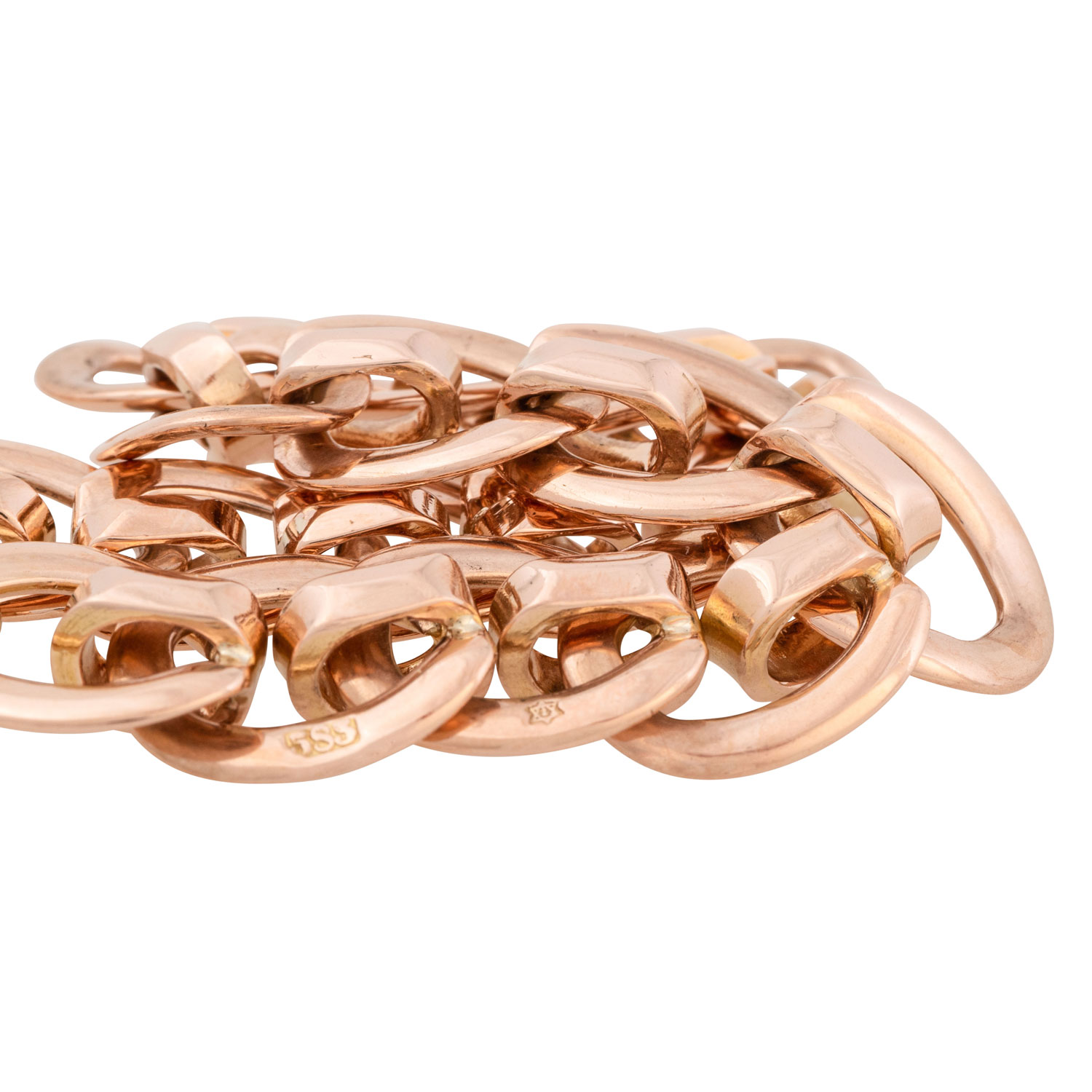 Watch chain, fantasy chain, 14K red gold, 42.7 g, L: ca. 27 cm, carabiner D: ca. 5.4 mm, spring ring D: ca. 16.7 mm, 20./21. century, minor signs of wear, with hallmark.