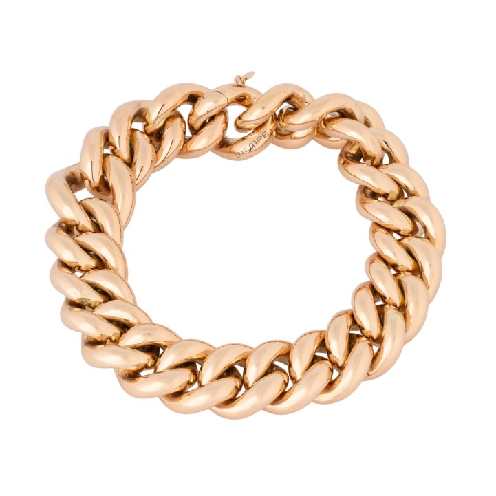 WEMPE curb link bracelet, 18K rosé gold, 82,9 g, L: ca. 21 cm, W: ca. 1.5 cm, late 20th century, minor signs of wear.