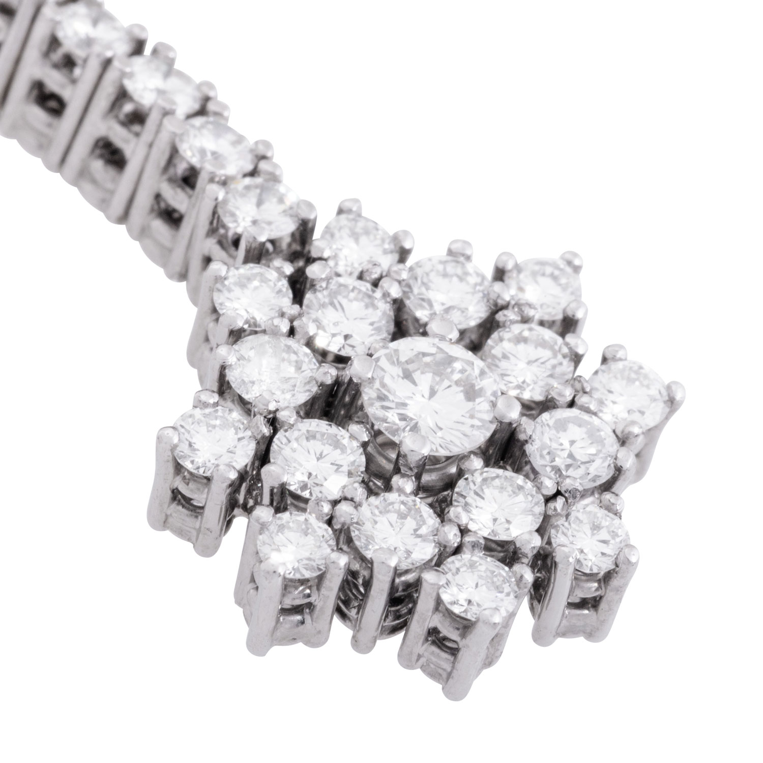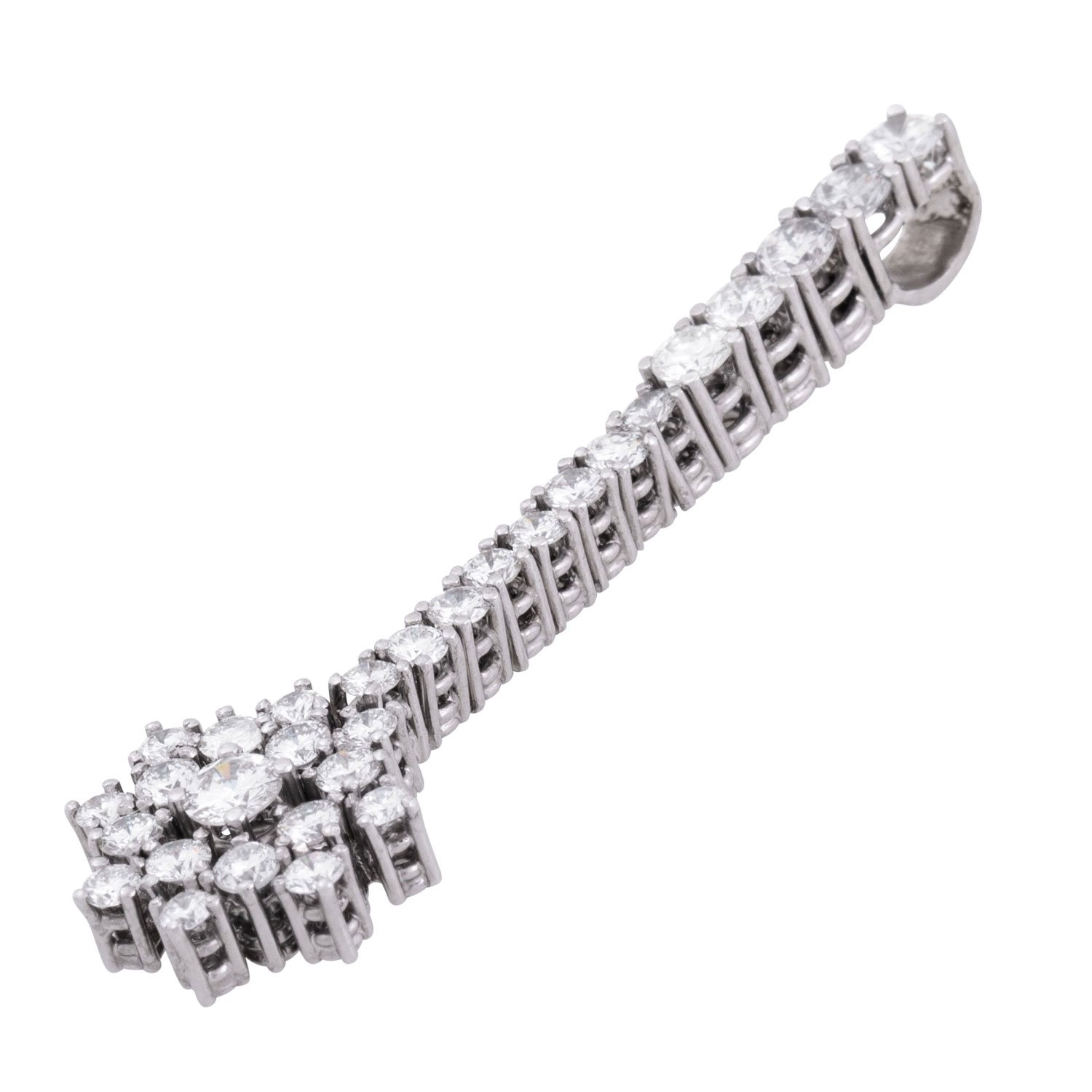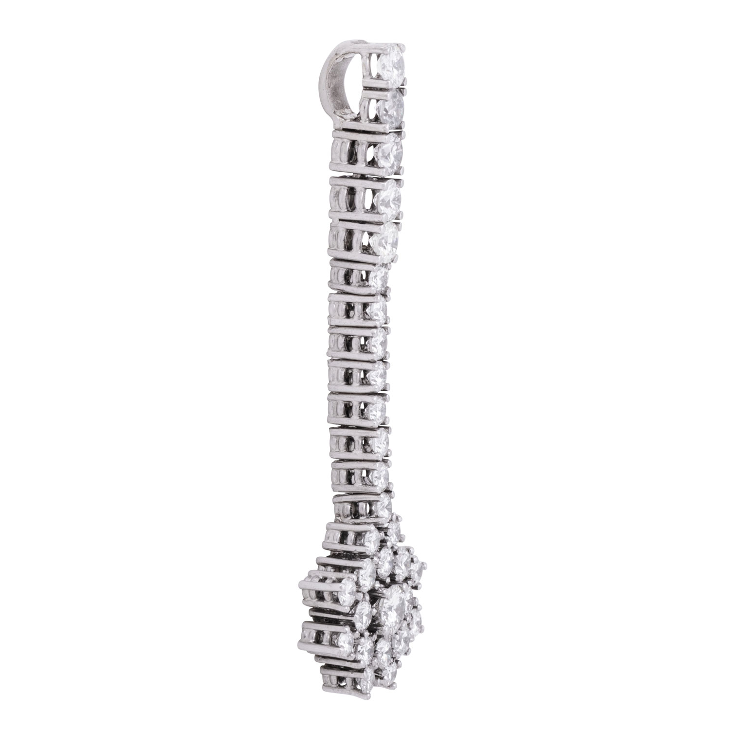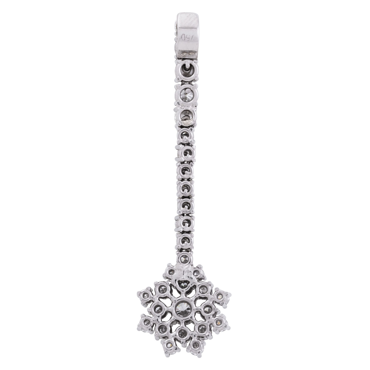 ATELIER WEMPE pendant with brilliant-cut diamonds totalling ca. 1.56 ct, 18K WG, 4.3 gr, L: ca. 4.5 cm, 2000s, signs of wear, 1 diamond heavily chipped under 1 prong, repairs visible. Cost of production: 4,095 €. Incl. copy of Wempe invoice, copy of Wempe certificate and copy of Wempe insurance valuation.